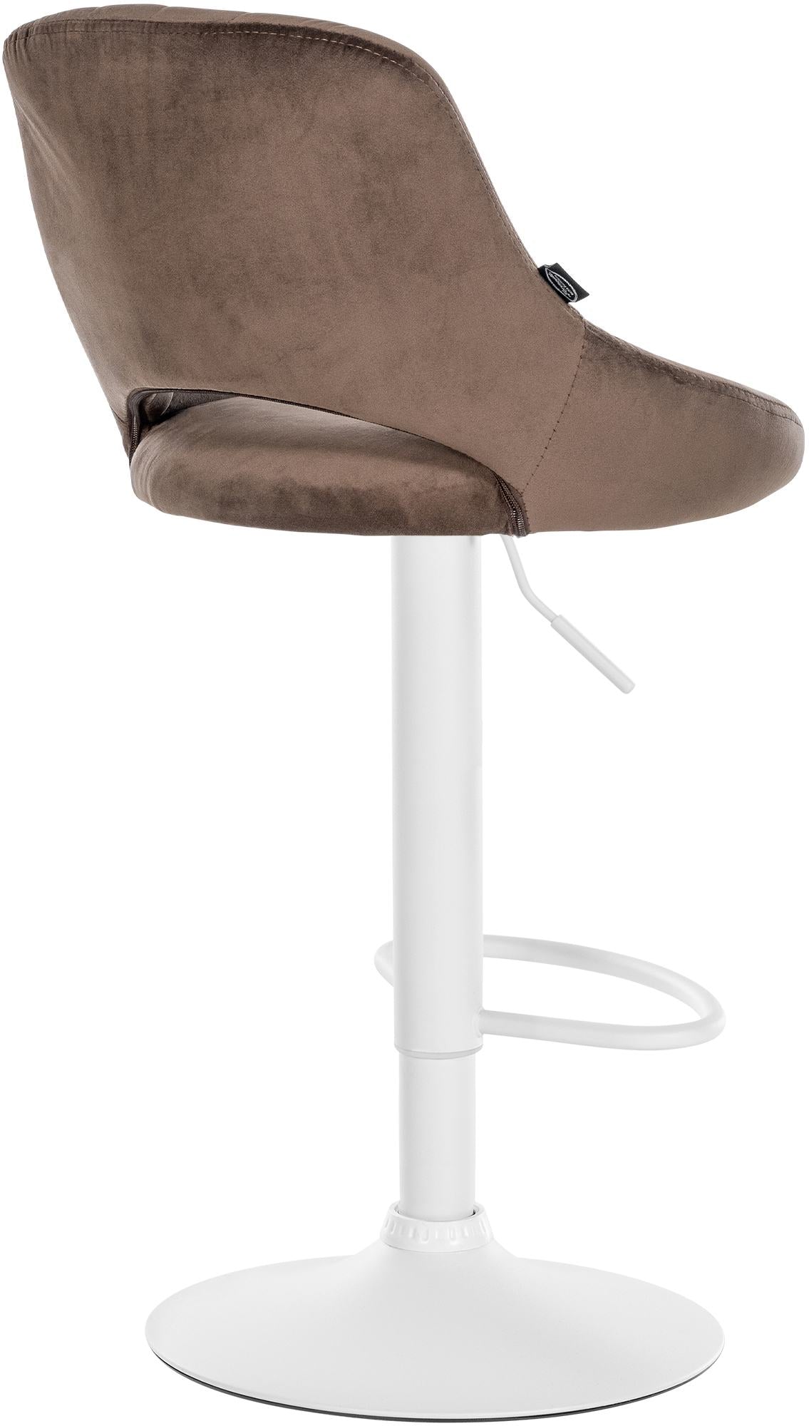 Tabouret de bar x1 réglable en hauteur en velours marron dossier ajouré et pied métal blanc 10_0005730