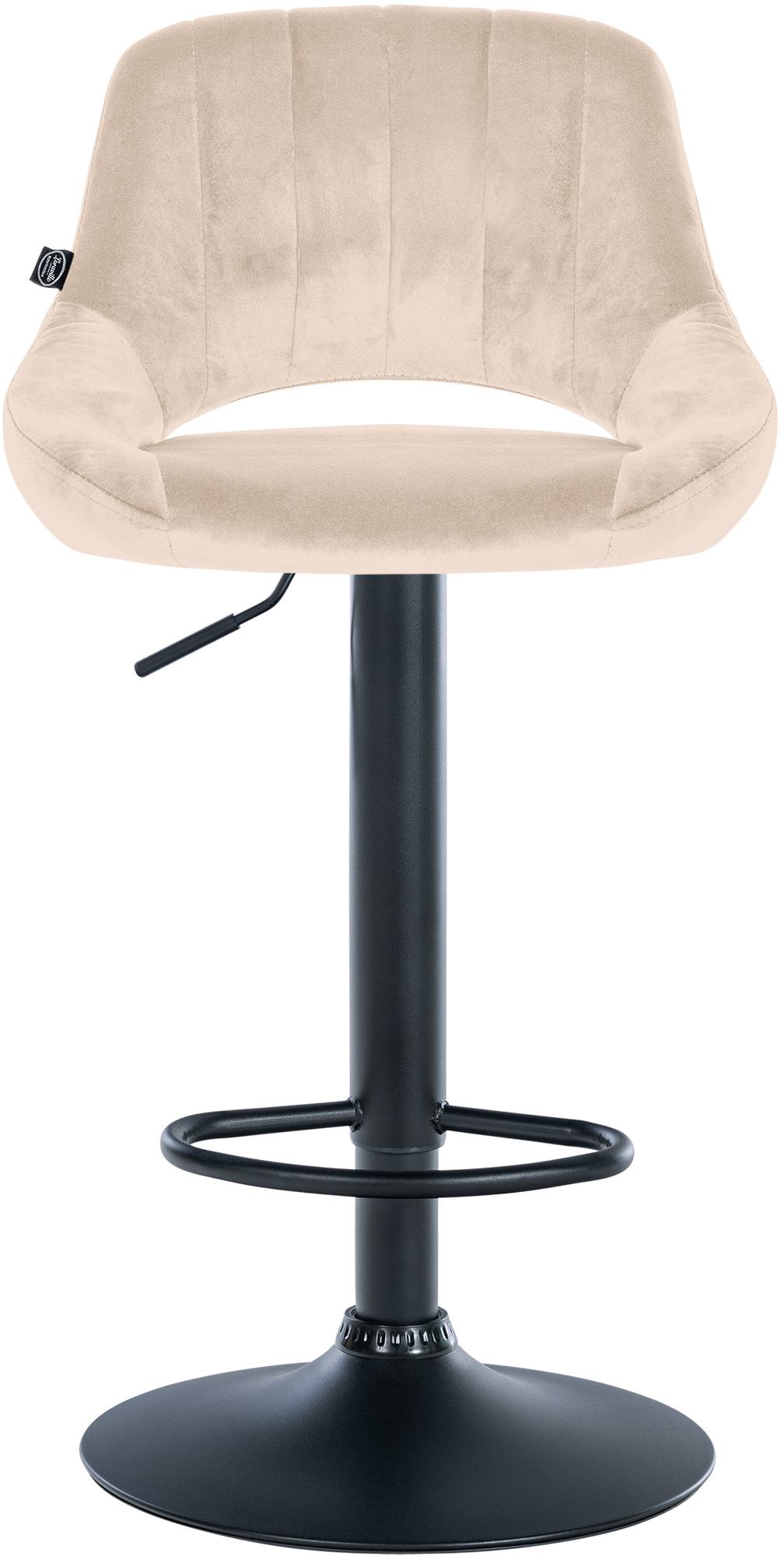 Tabouret de bar x1 réglable en hauteur en velours crème dossier ajouré et pied métal noir 10_0005736
