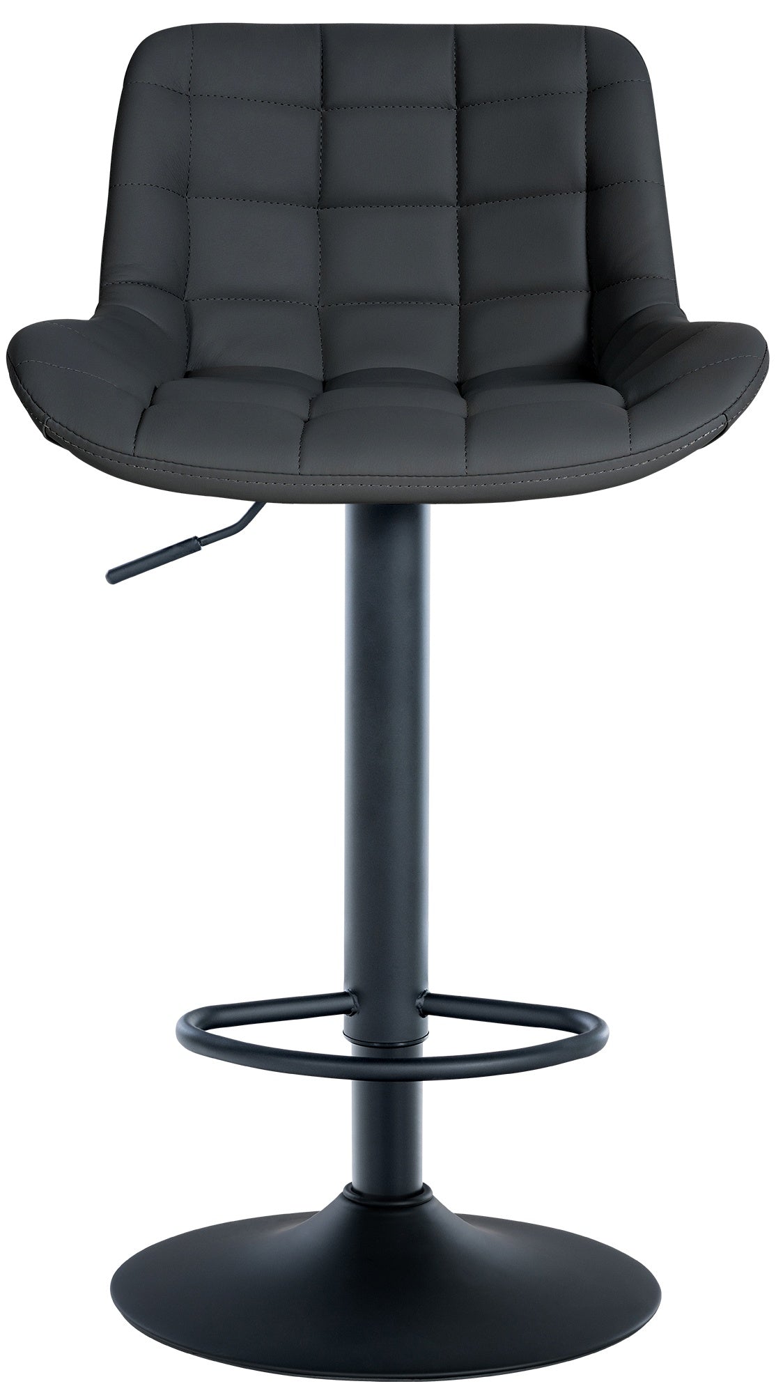 Tabouret de bar x1 en PVC noir avec surpiqûres décoratives carrées cadre métal noir avec repose-pieds 10_0005866