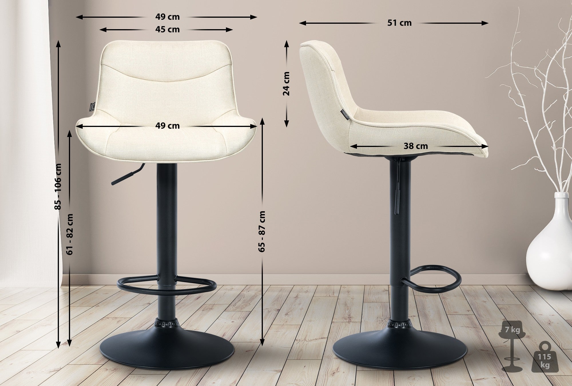 Tabouret de bar x1 pivotant forme ergonomique surpiqûres décoratives en tissu crème cadre en métal noir 10_0005766