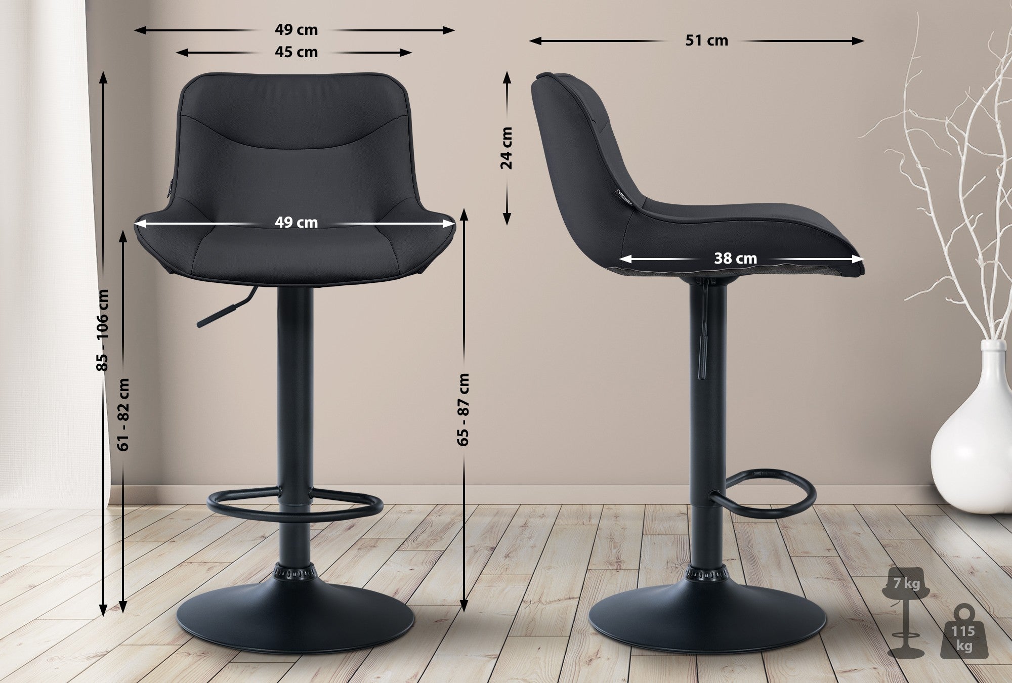 Le tabouret de bar en similicuir allie fonctionnalité et design moderne. Réglable en hauteur, il offre une assise rembourrée et une forme ergonomique pour un confort optimal. Pivotant à 360° et réglable en hauteur en continu, il offre des positions d'assise flexibles.