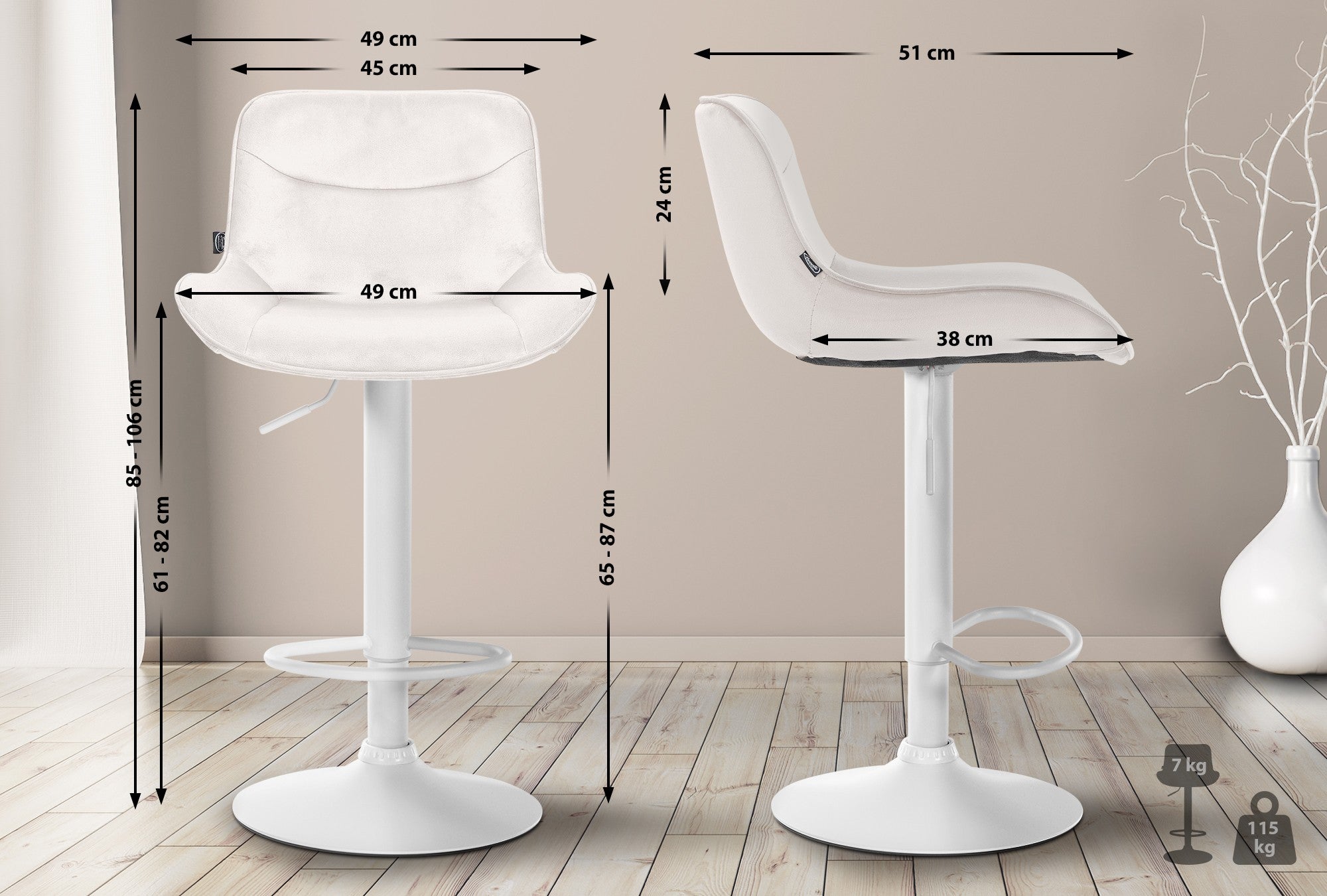 Tabouret de bar x1 pivotant forme ergonomique surpiqûres décoratives en velours crème cadre en métal blanc 10_0005772