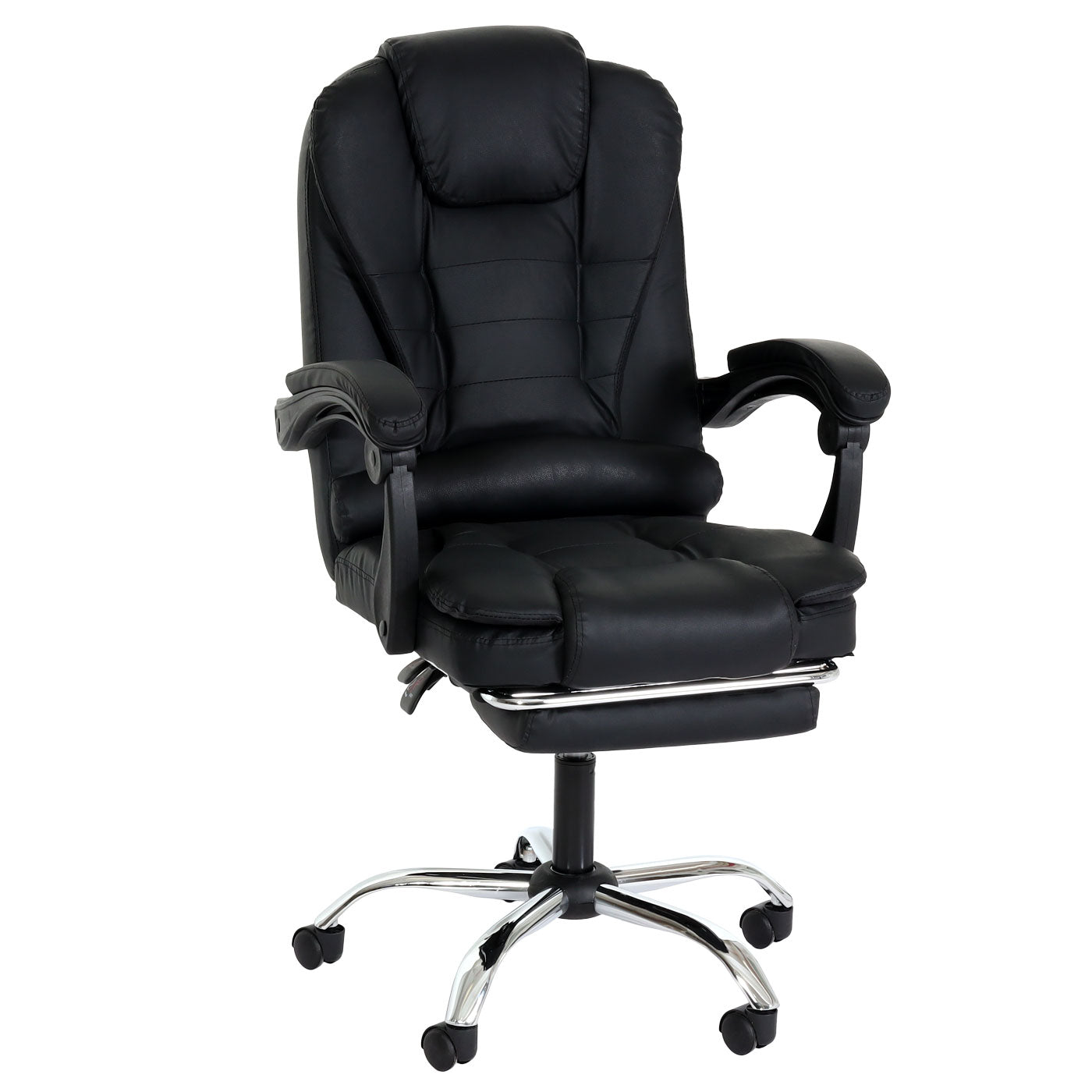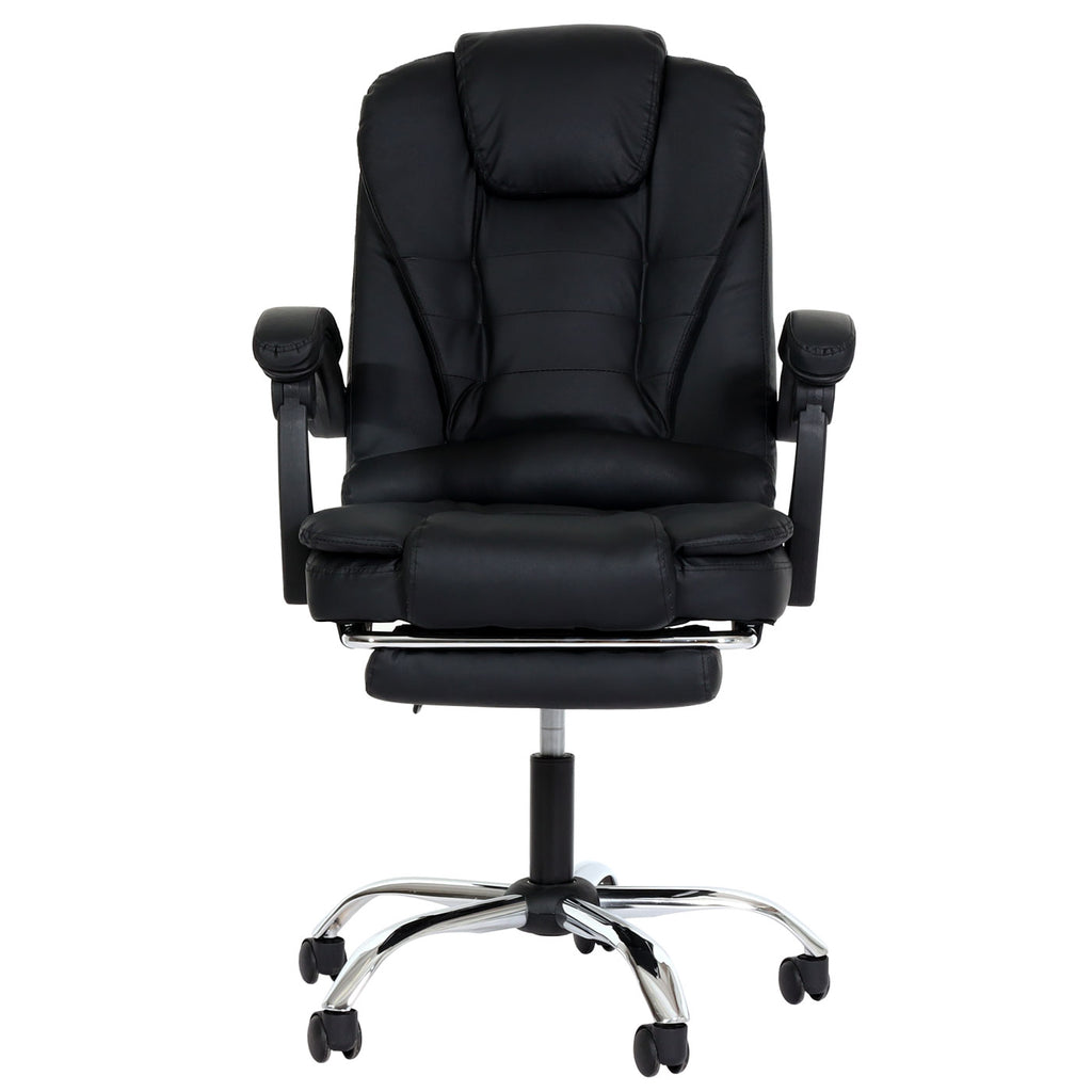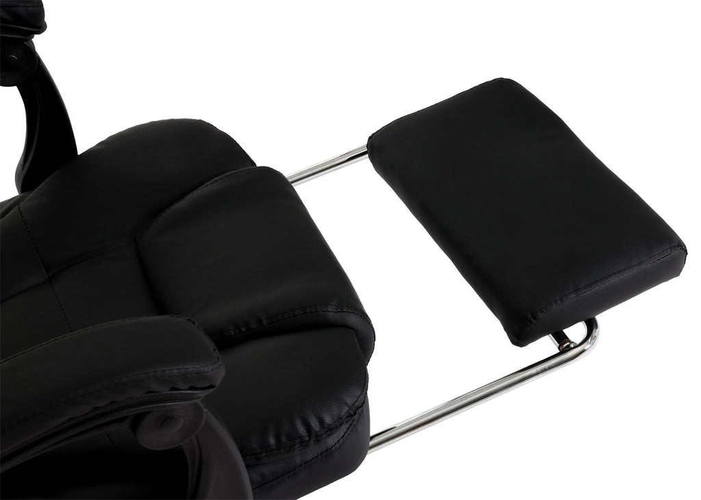 Fauteuil de bureau sur roulettes pivotant avec repose-pieds extensible en PVC noir 04_0006232