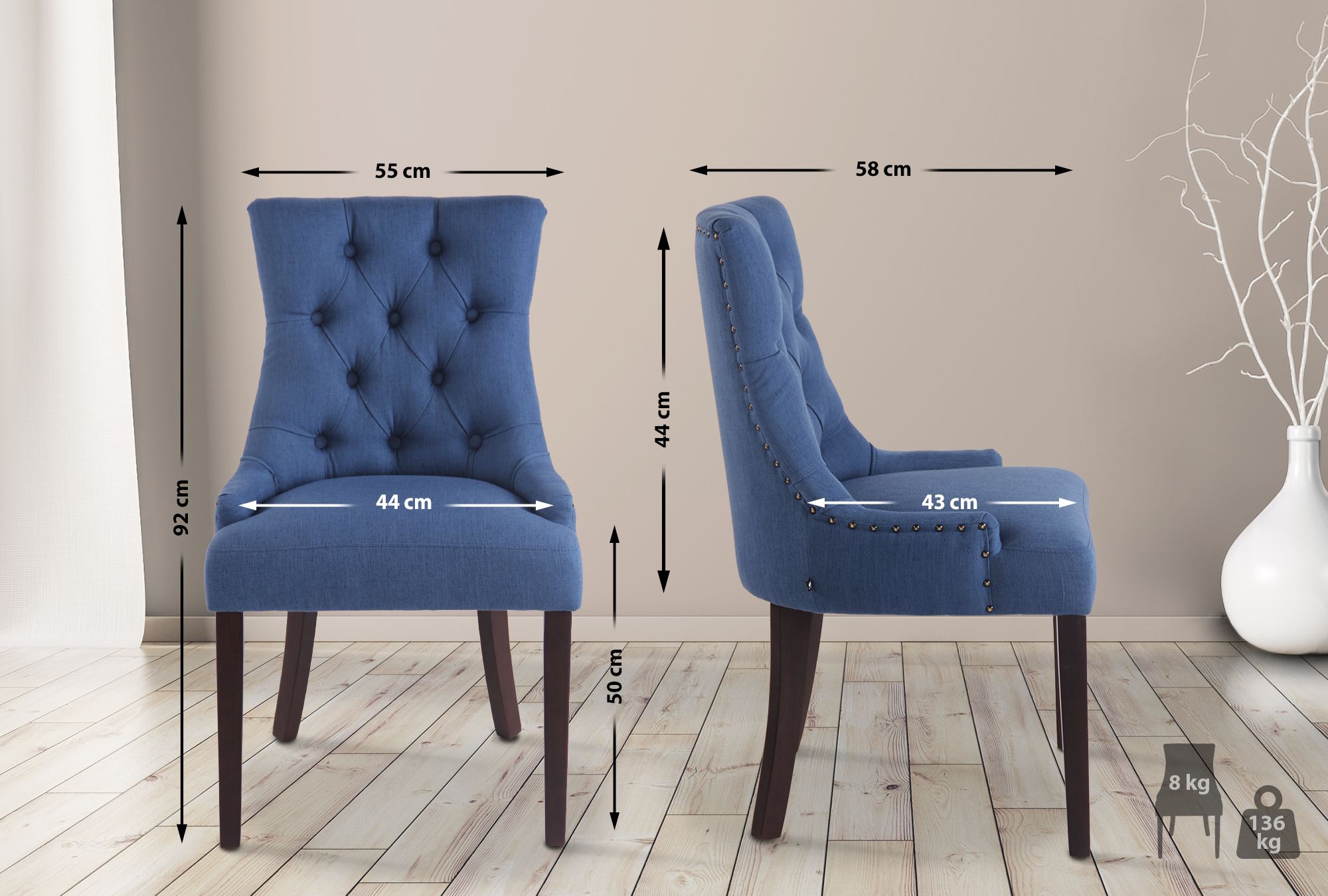 Chaise de salle à manger x1 design antique capitonné en tissu bleu avec 4 pieds en bois marron 10_0001948