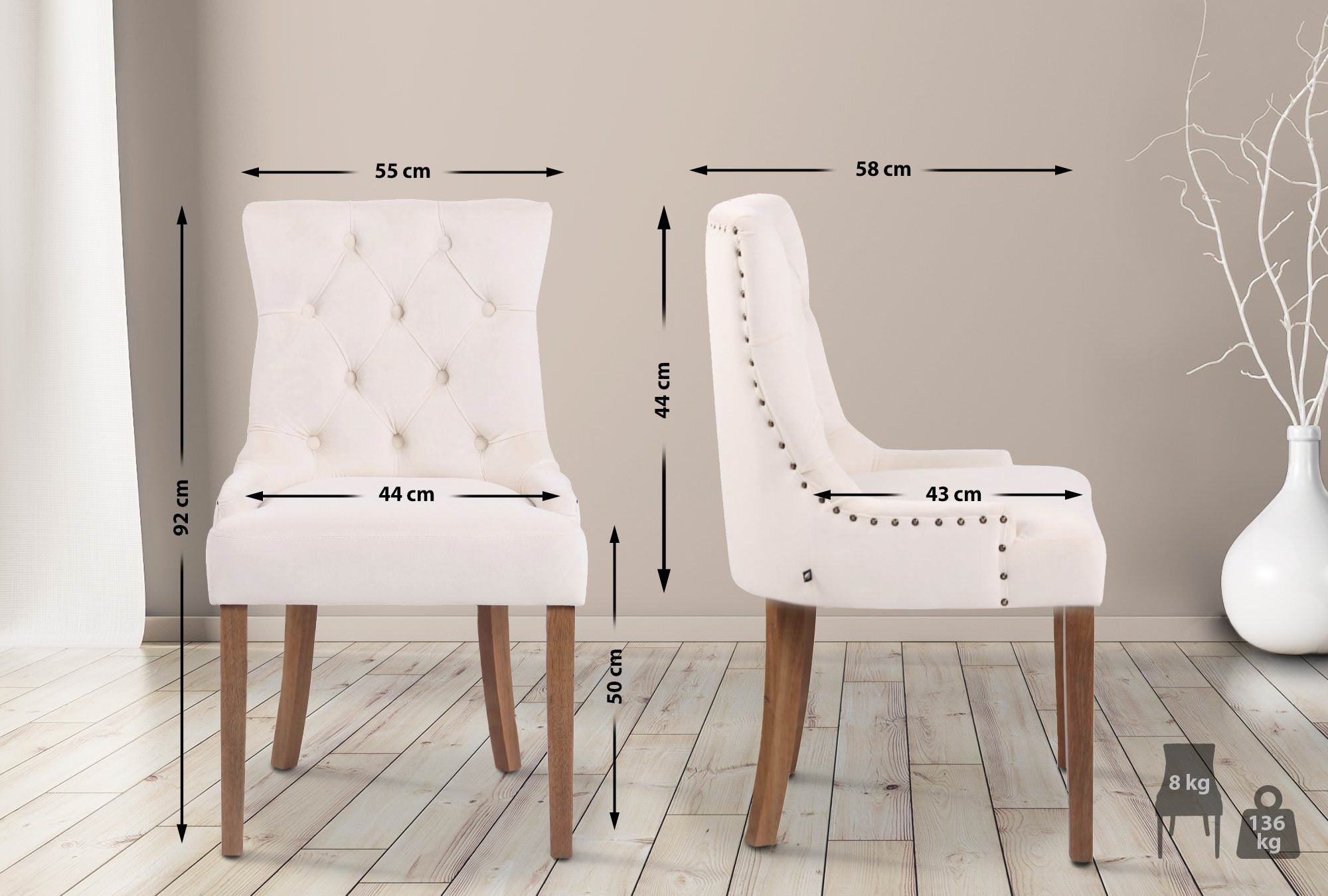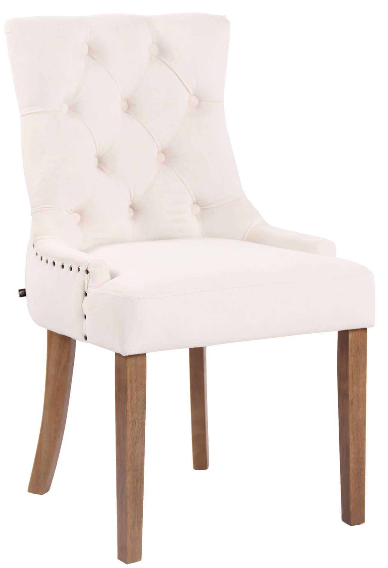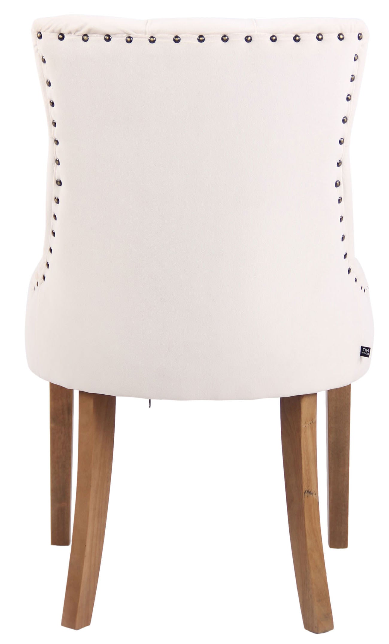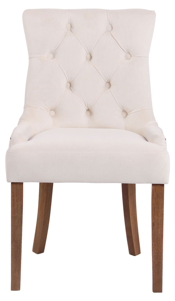 Chaise de salle à manger x1 design antique capitonné en velours crème avec 4 pieds en bois clair 10_0001943