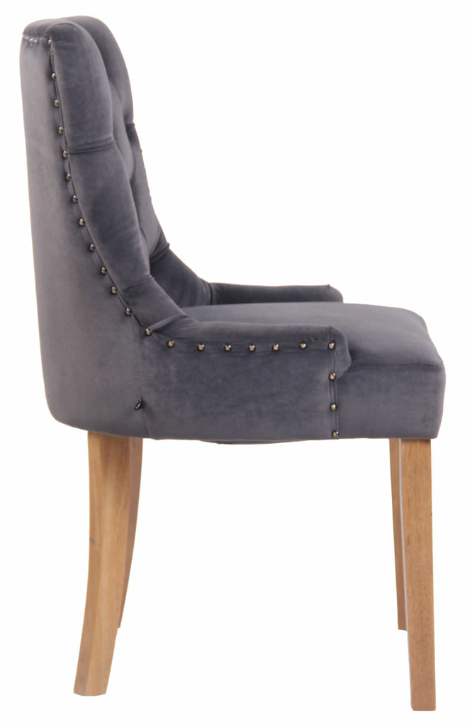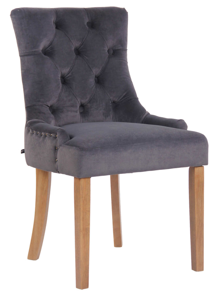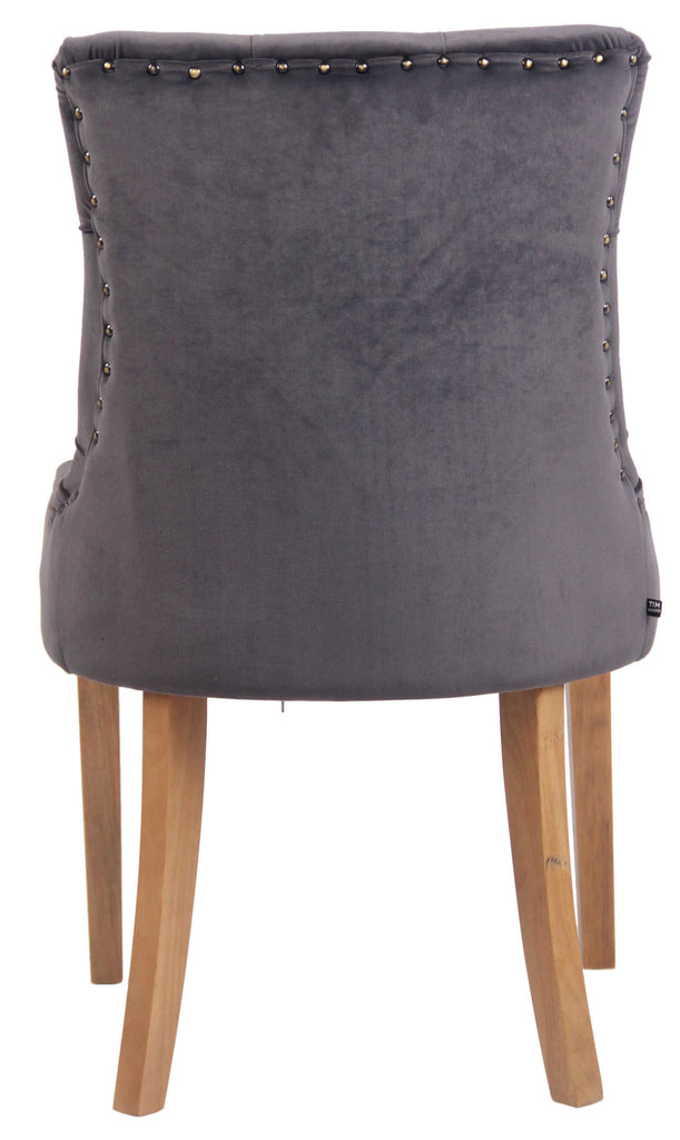 Chaise de salle à manger x1 design antique capitonné en velours gris foncé avec 4 pieds en bois clair 10_0001942