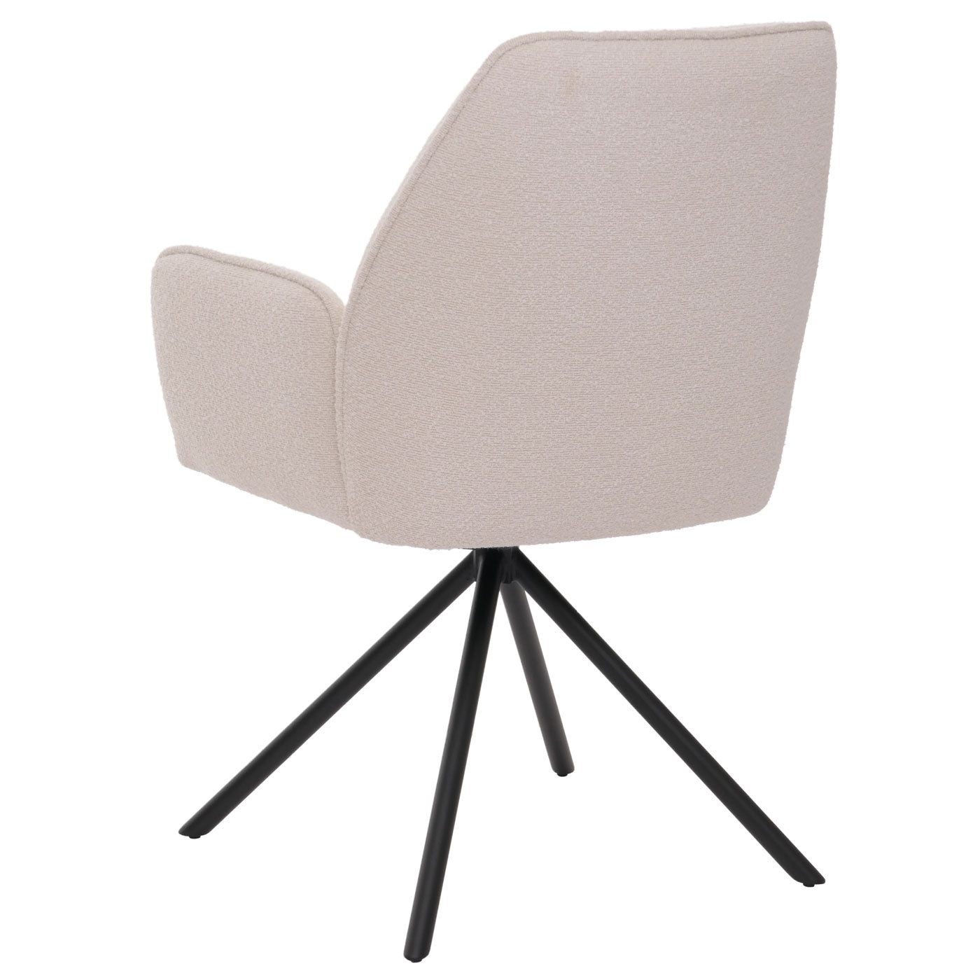 Chaise de salle à manger avec accoudoir siège rotatif en tissu bouclé crème cadre trépied 04_0006272