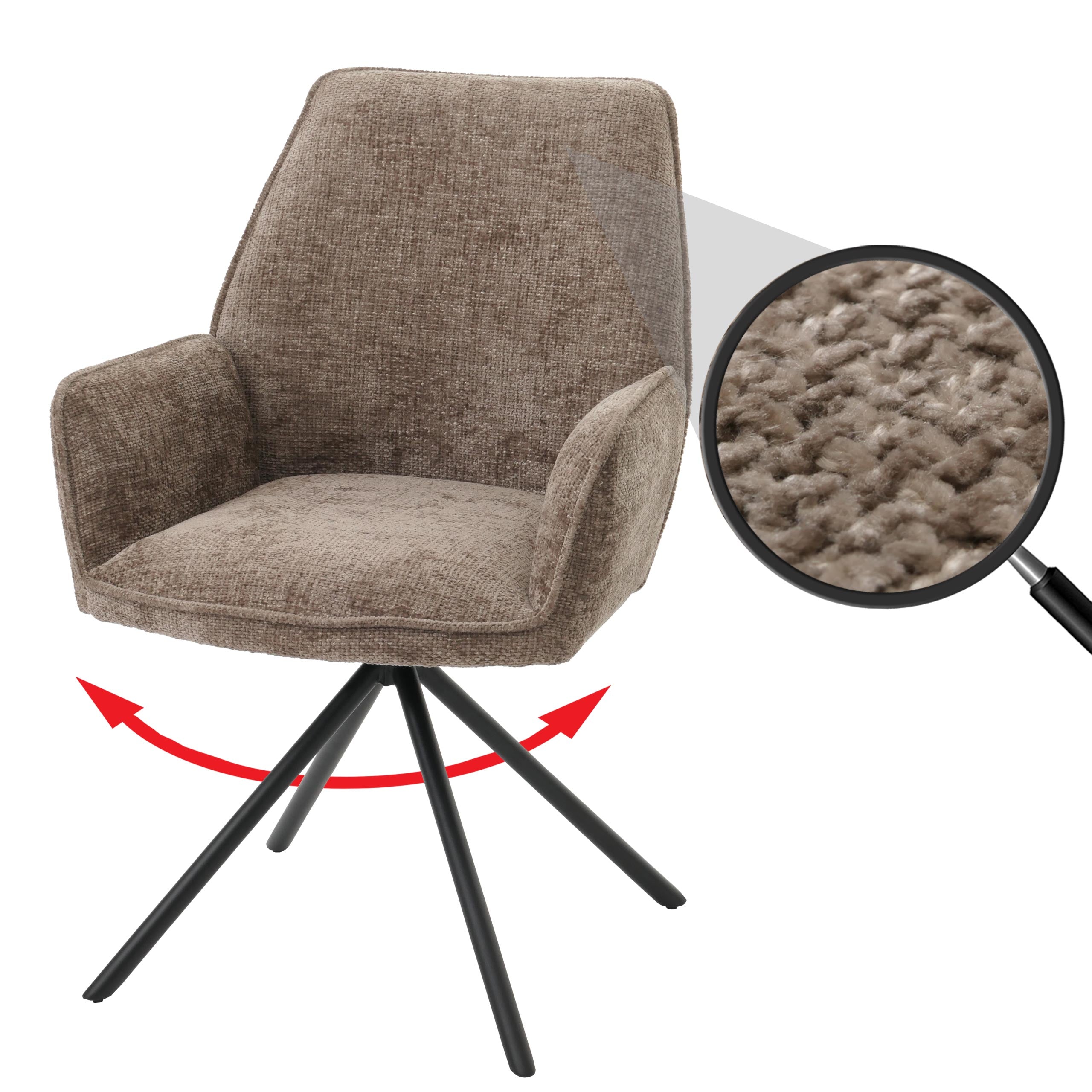 Chaise de salle à manger avec accoudoir siège rotatif en tissu bouclé marron cadre trépied 04_0006275