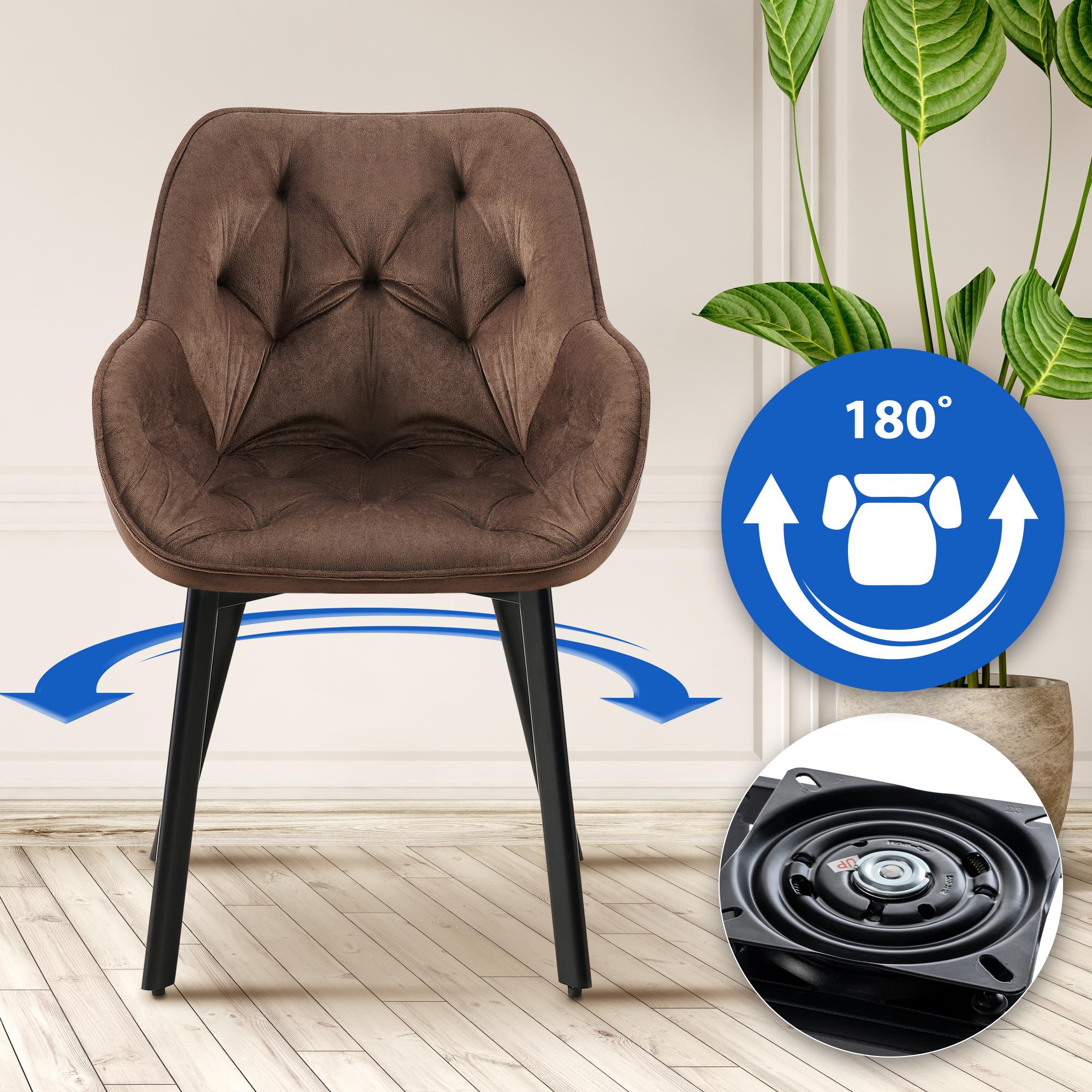 Chaise de salle à manger x1 assise pivotante en velours marron motif matelassé cadre métal 10_0007183