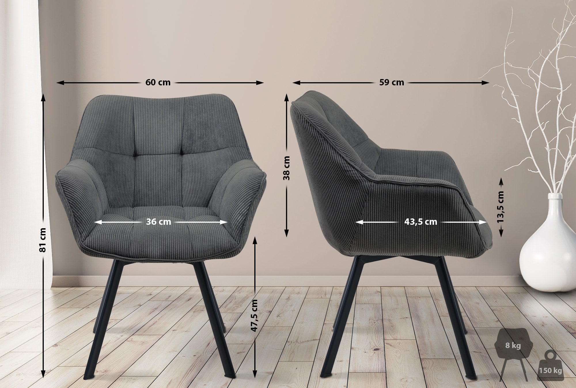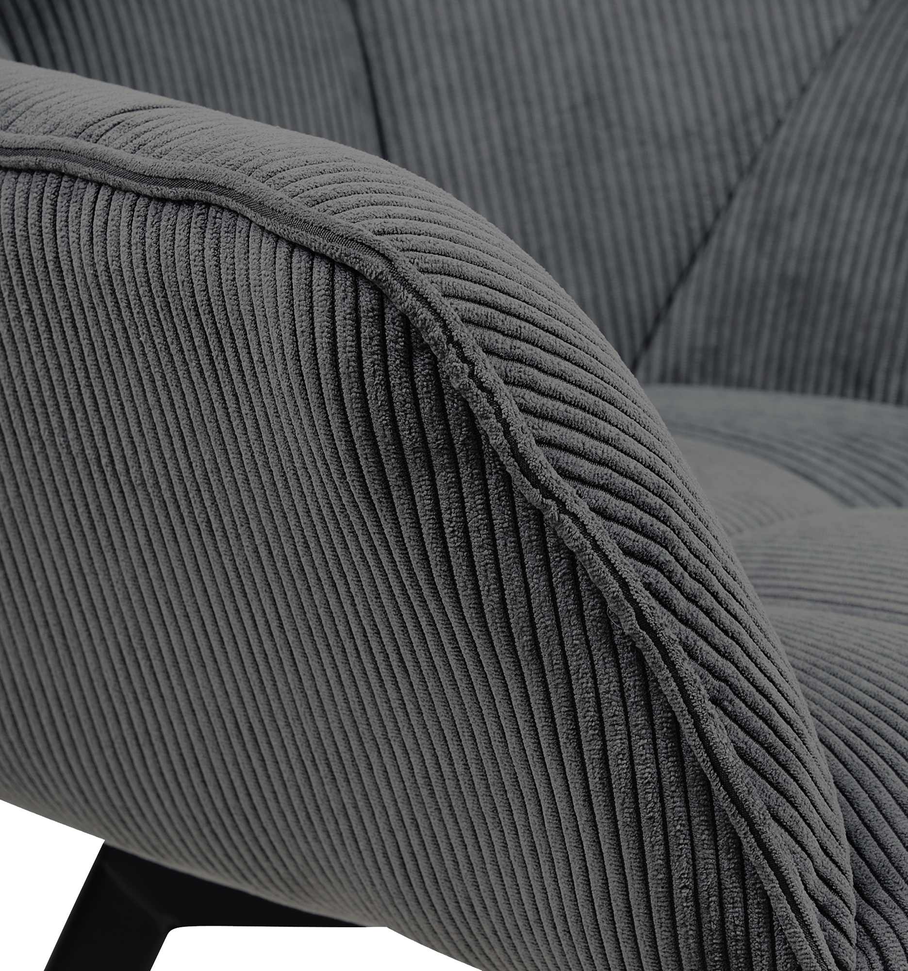 Le rembourrage agréable de l'assise, du dossier et des accoudoirs est déterminant pour une assise confortable. La coque d'assise est recouverte d'un tissu en velours côtelé robuste et facile à entretenir.