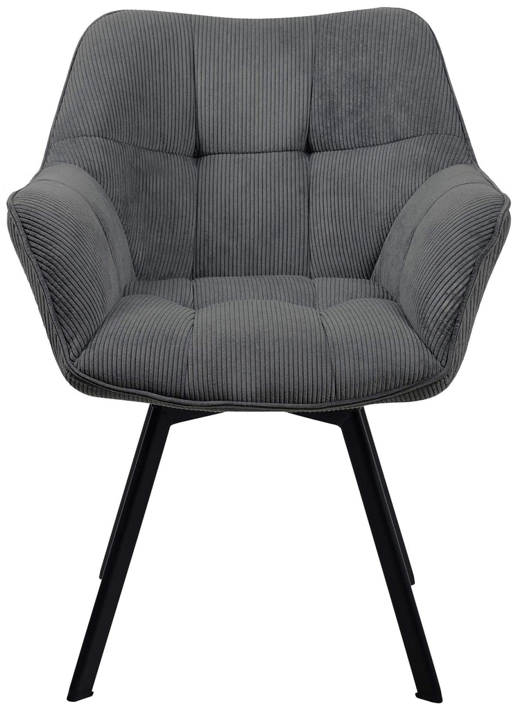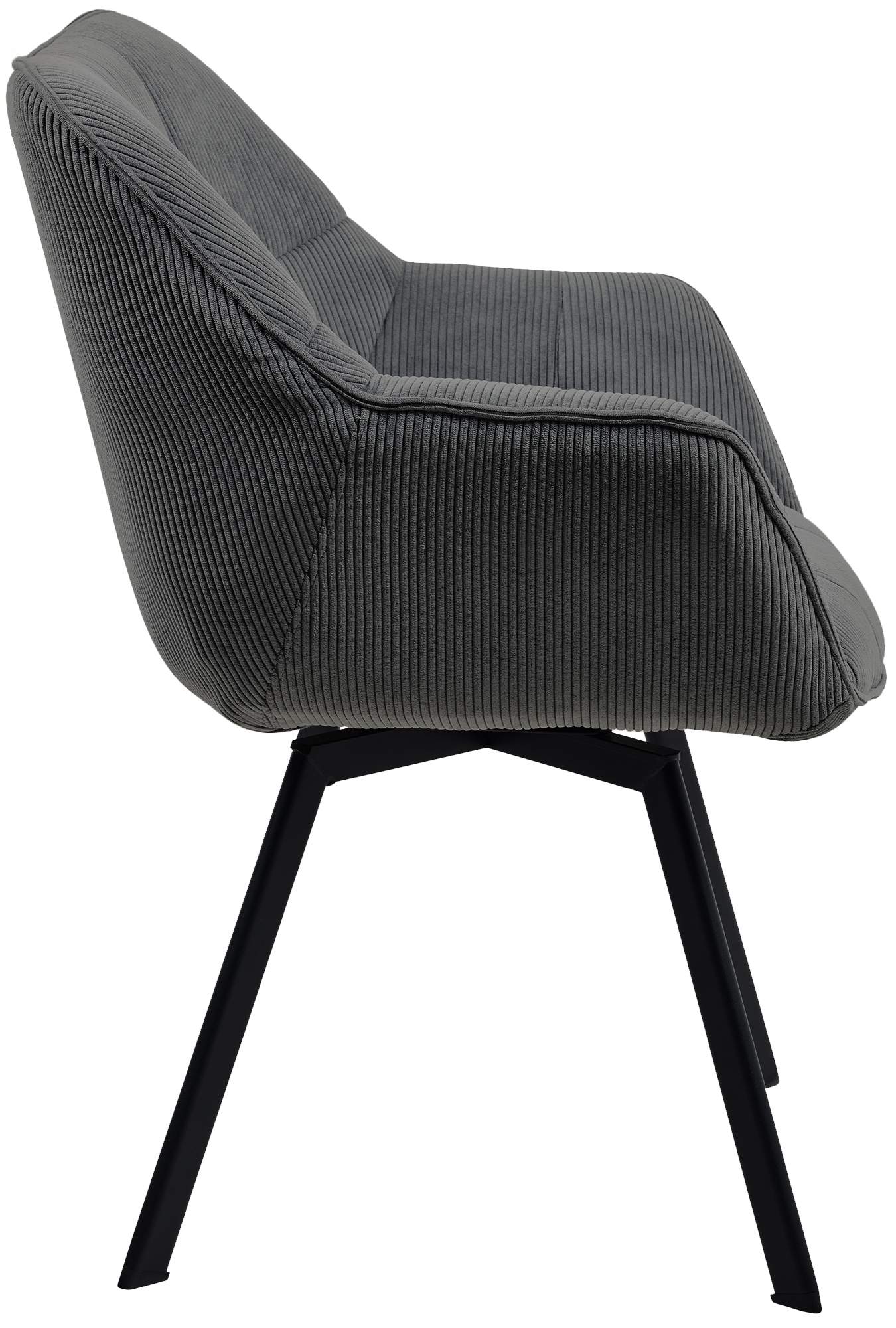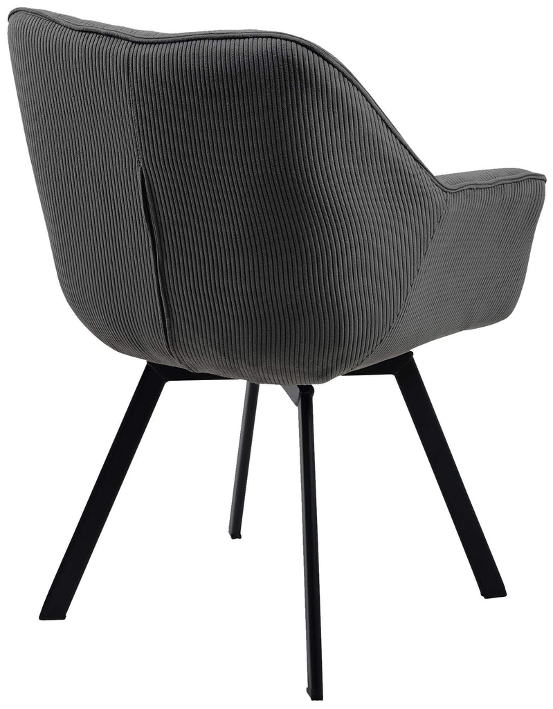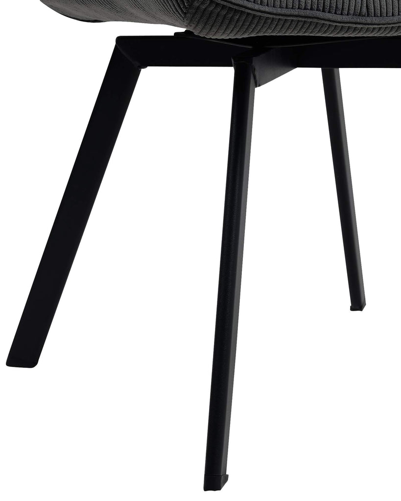 Chaise de salle à manger assise pivotante confortable en velours côtelé gris foncé et métal noir 10_0002039