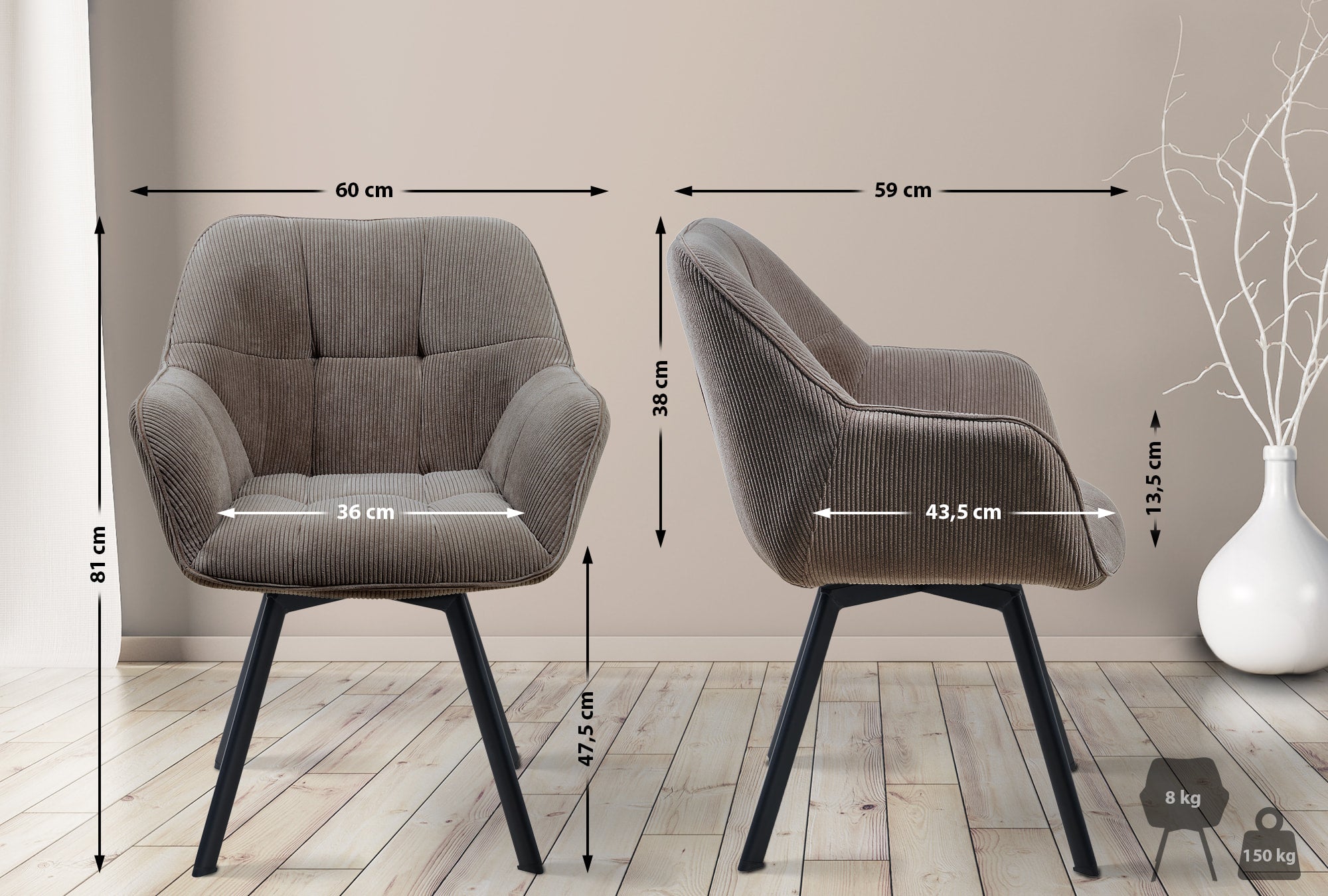 Chaise de salle à manger assise pivotante confortable en velours côtelé marron et métal noir 10_0002034