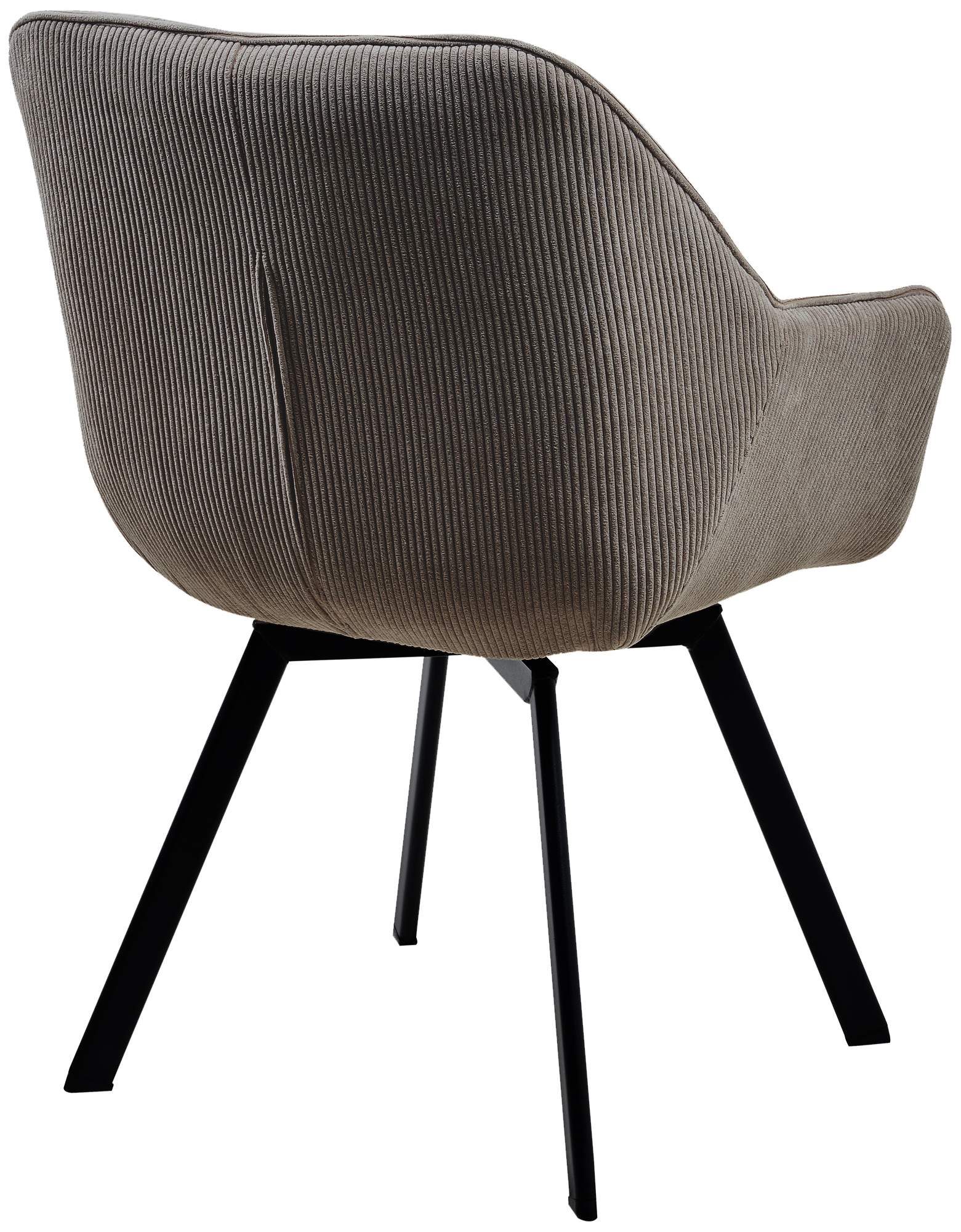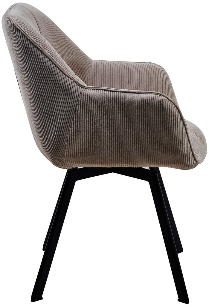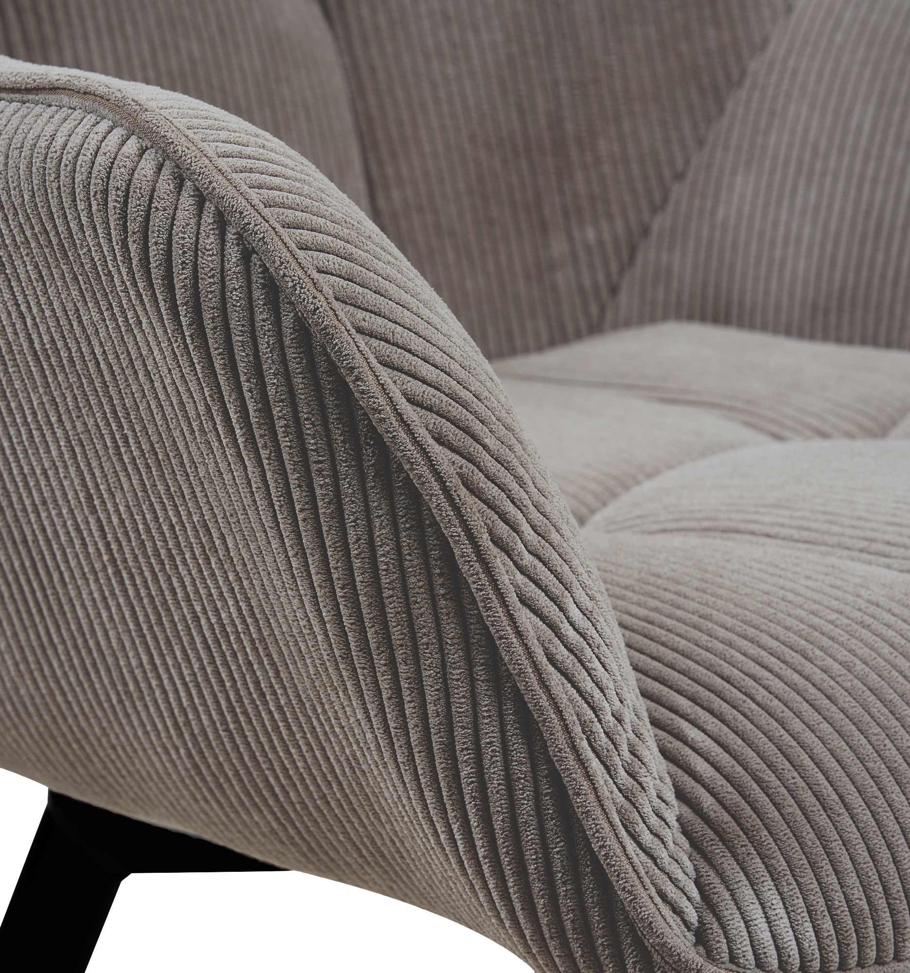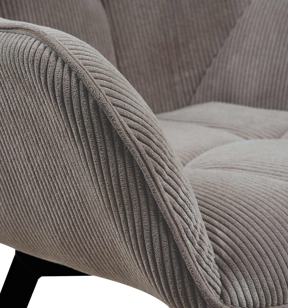 Le rembourrage agréable de l'assise, du dossier et des accoudoirs est déterminant pour une assise confortable. La coque d'assise est recouverte d'un tissu en velours côtelé robuste et facile à entretenir.