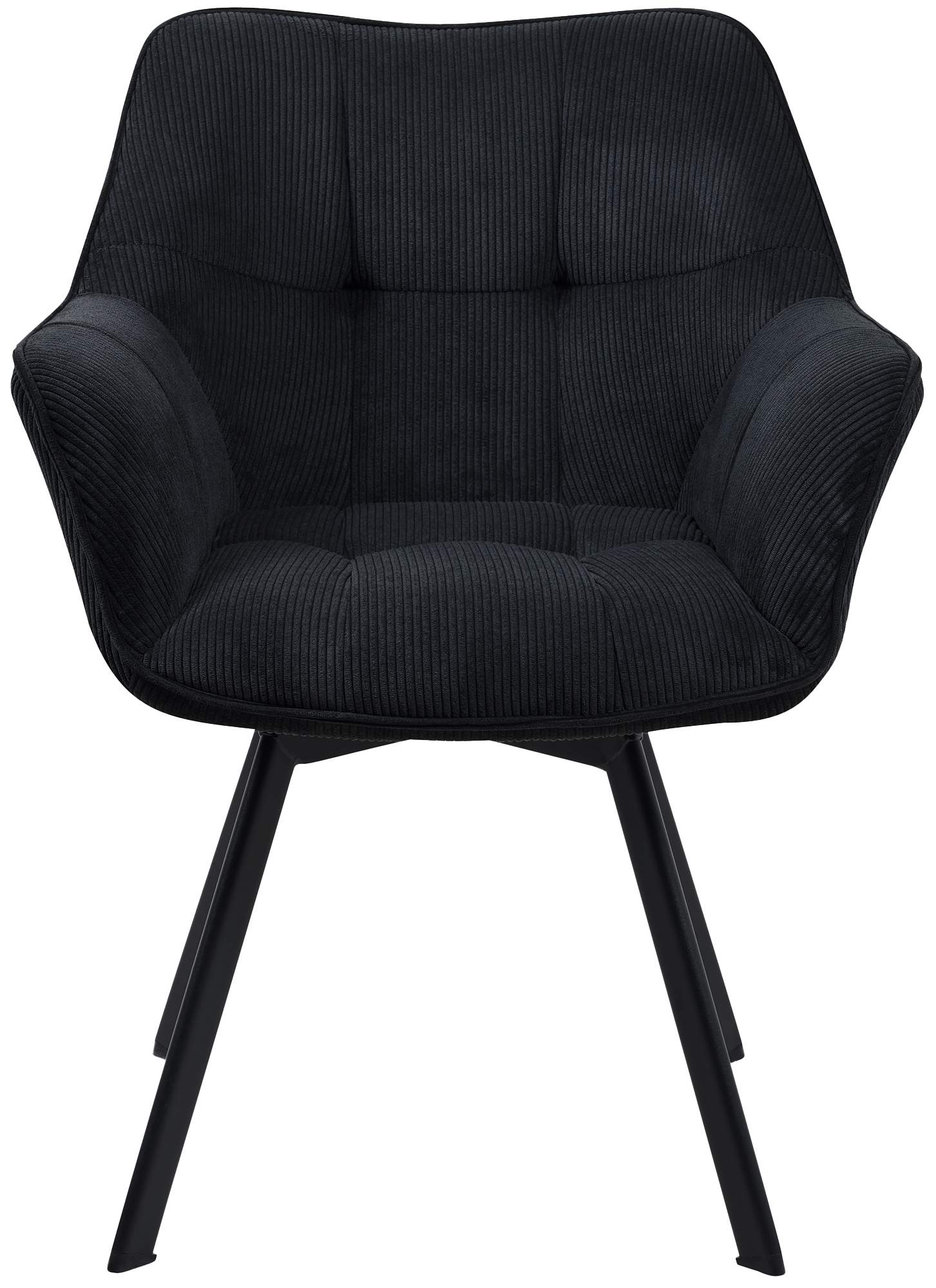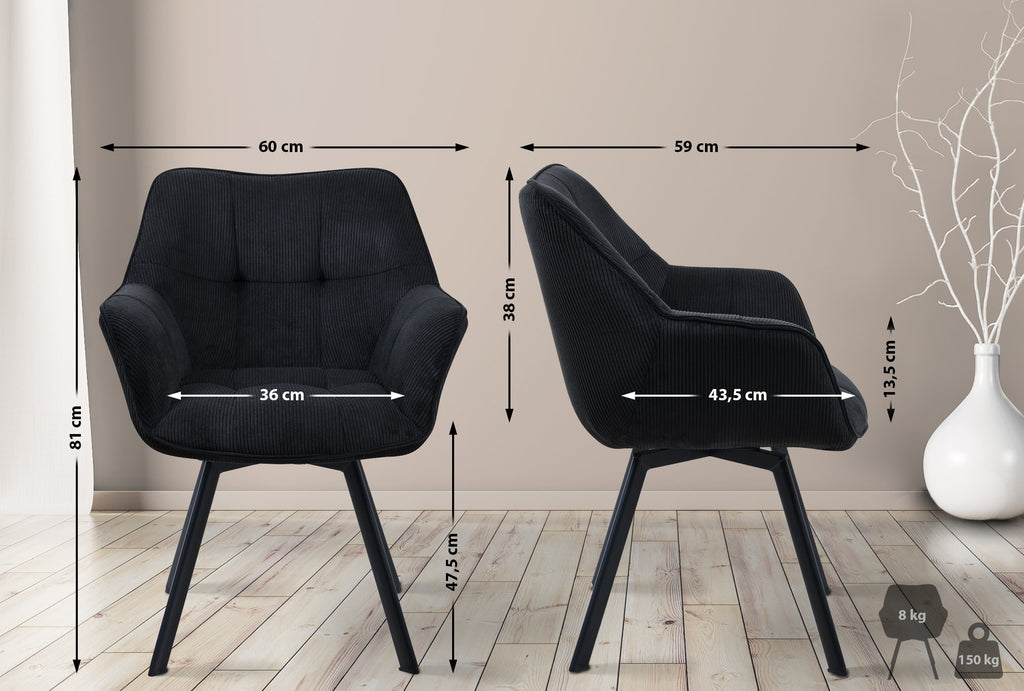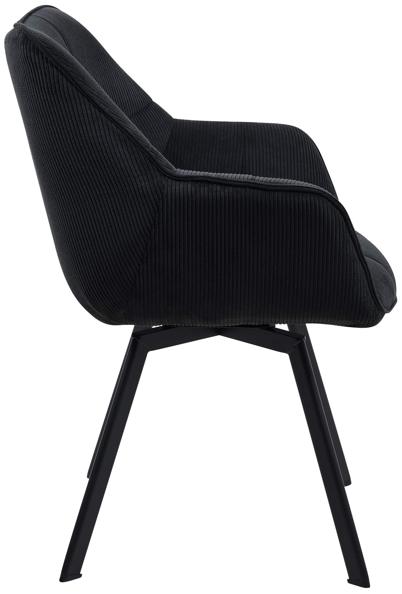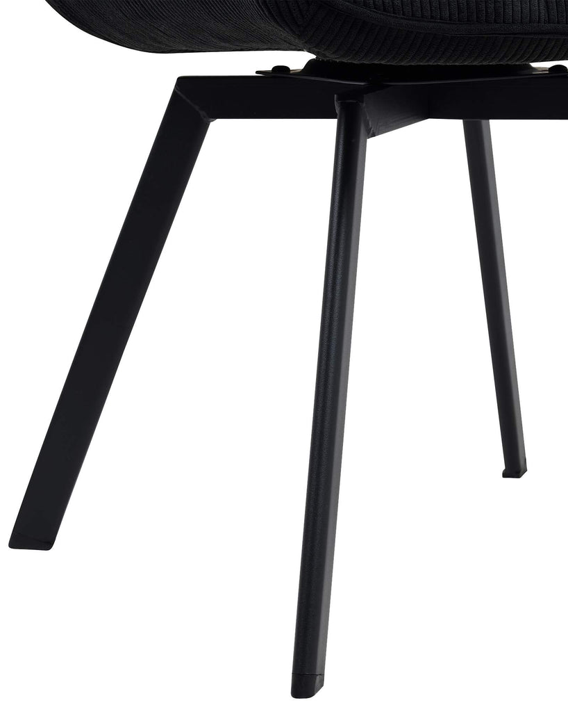 Chaise de salle à manger assise pivotante confortable en velours côtelé noir et métal noir 10_0002038