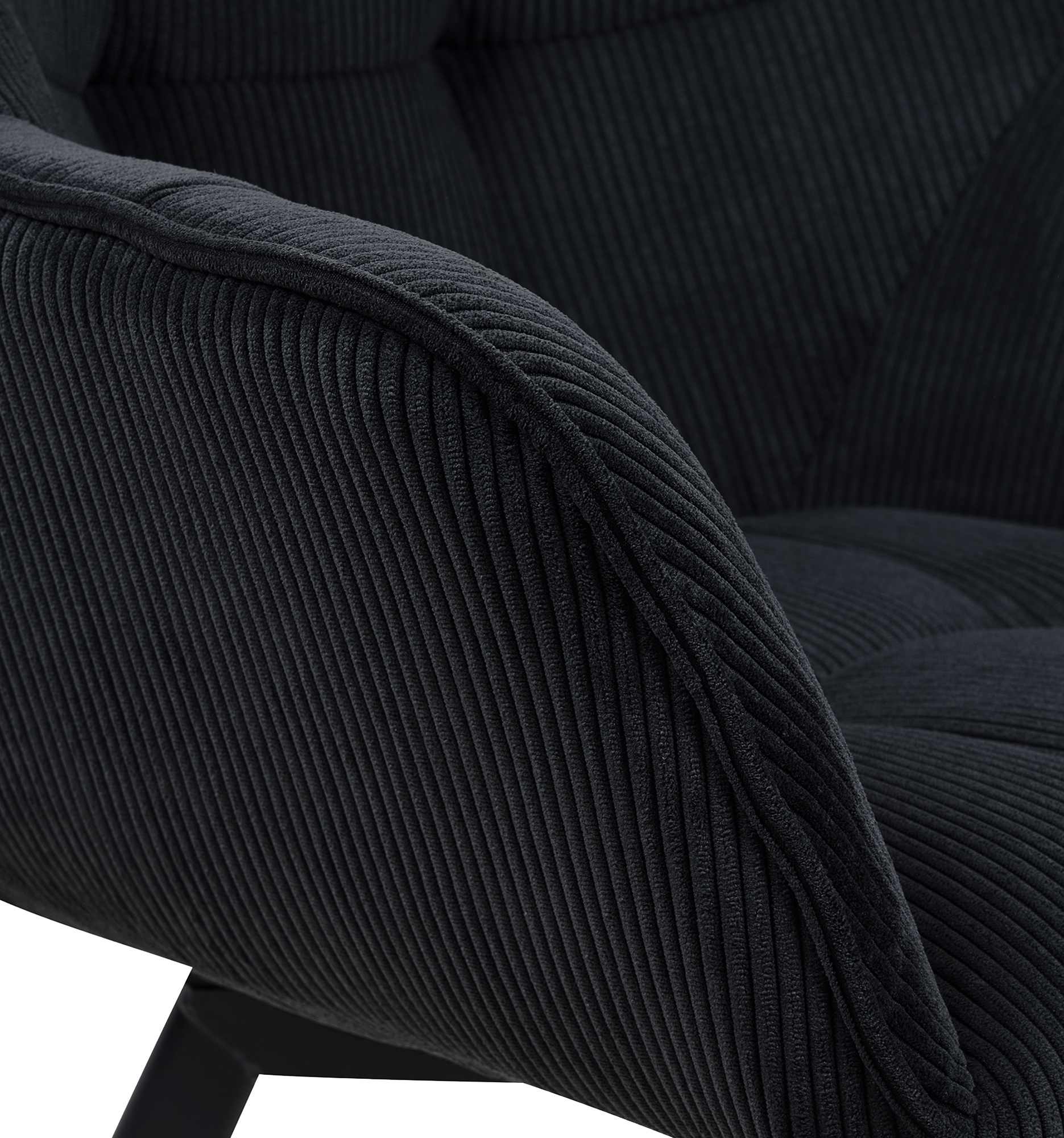 Le rembourrage agréable de l'assise, du dossier et des accoudoirs est déterminant pour une assise confortable. La coque d'assise est recouverte d'un tissu en velours côtelé robuste et facile à entretenir.