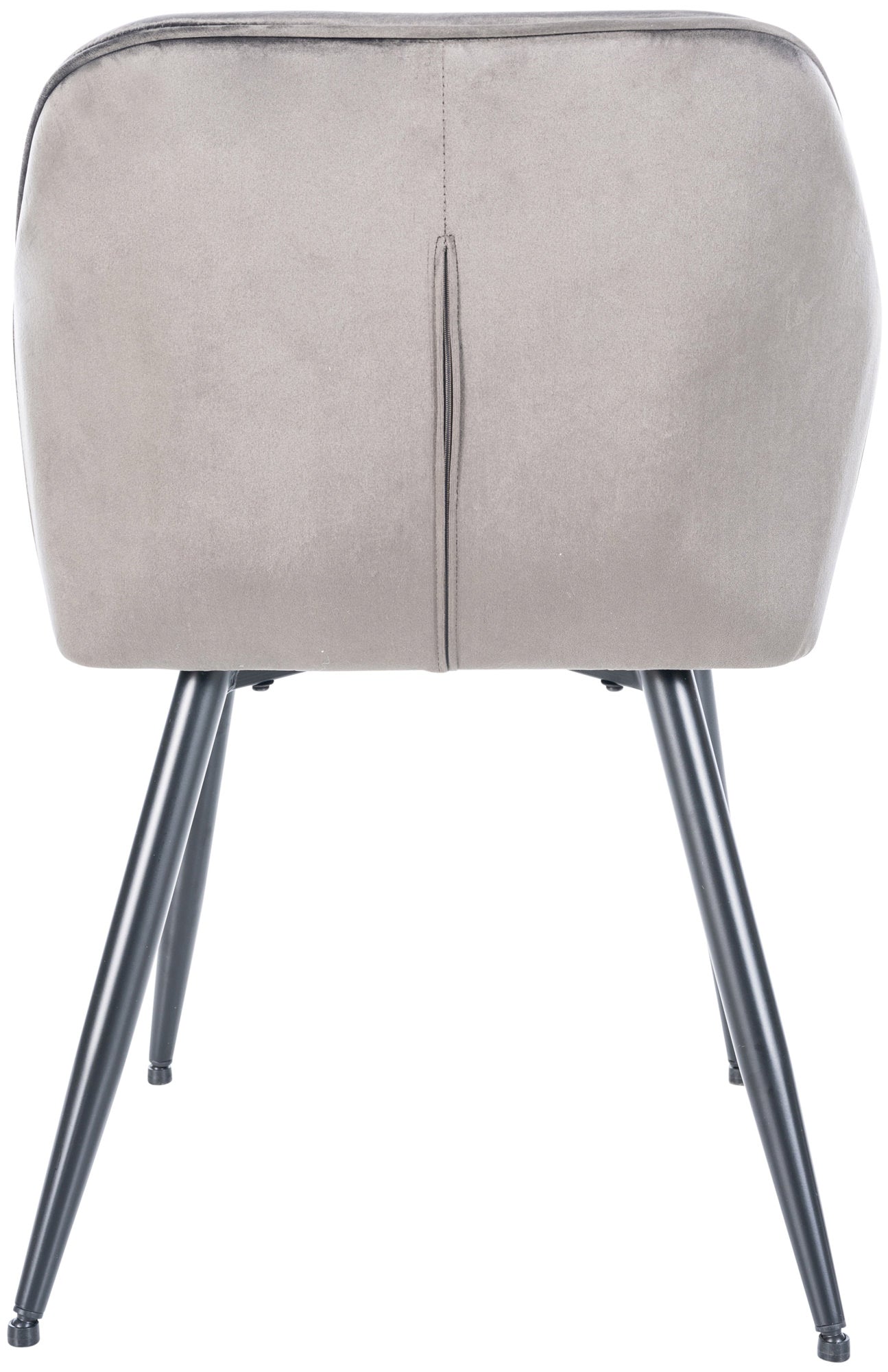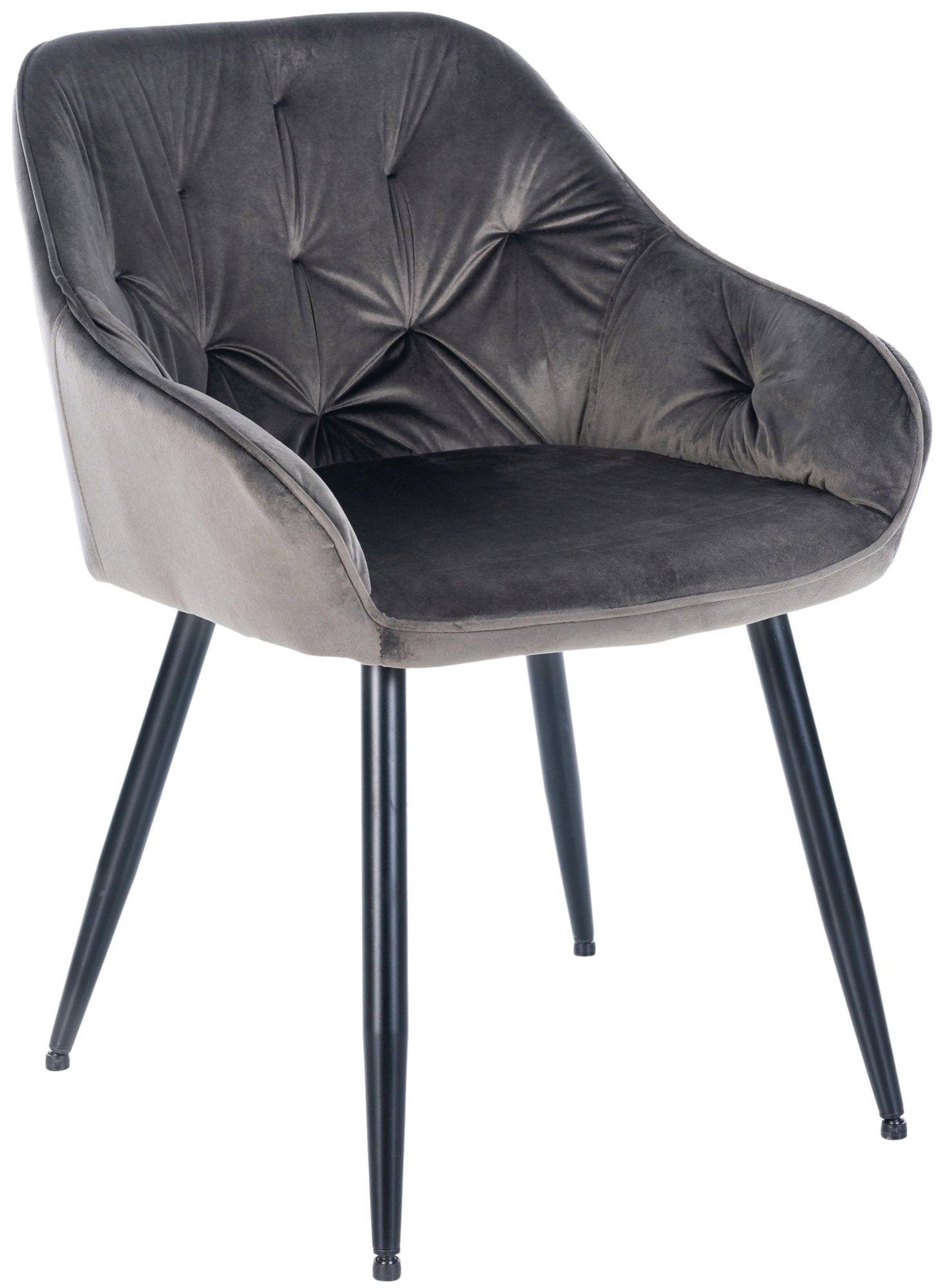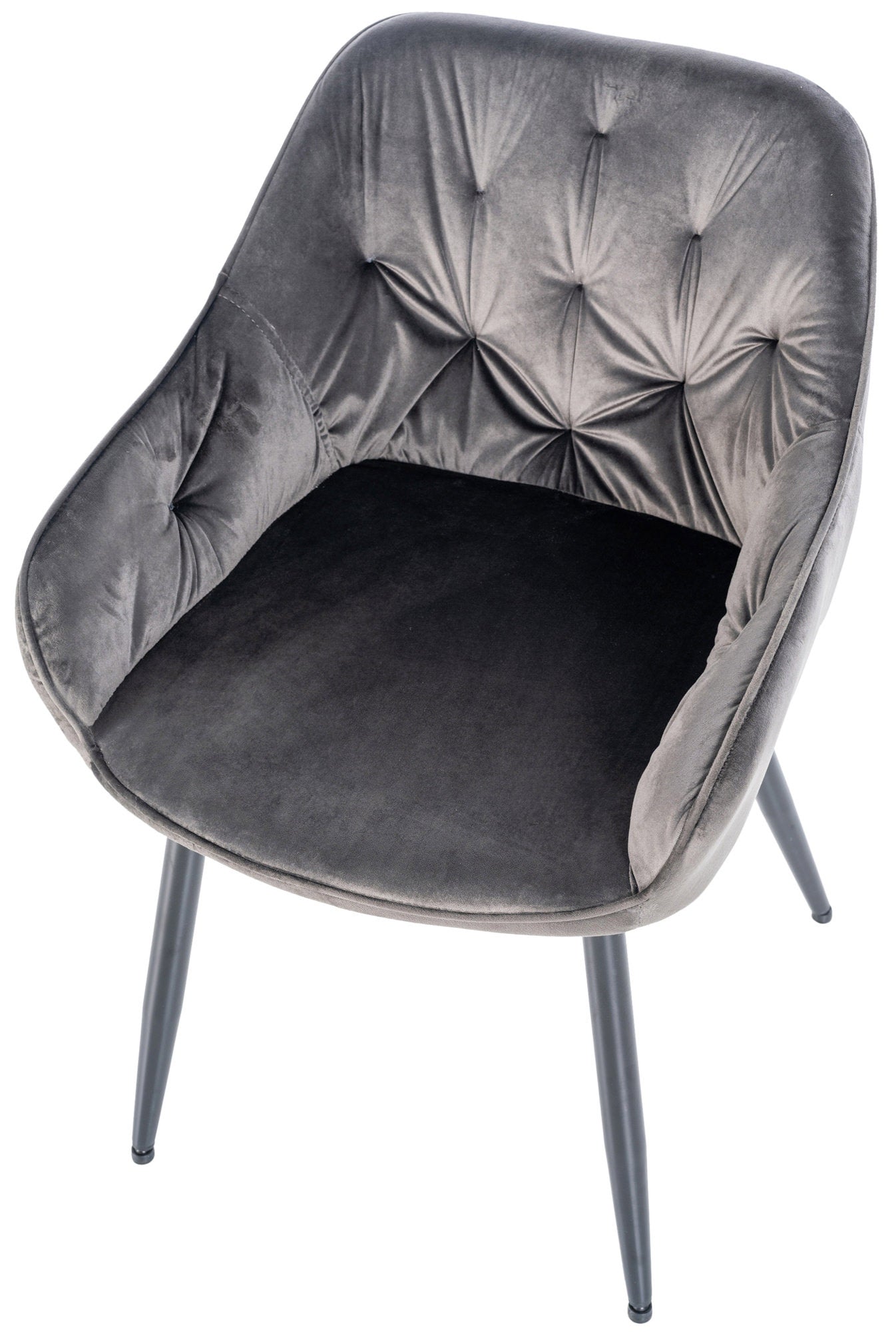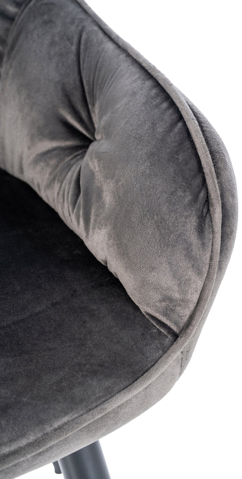 Chaise de salle à manger retro assise capitonnné en velours gris foncé et pieds en métal noir 10_0005488