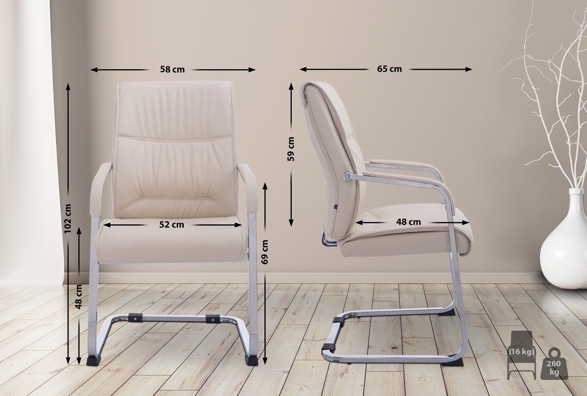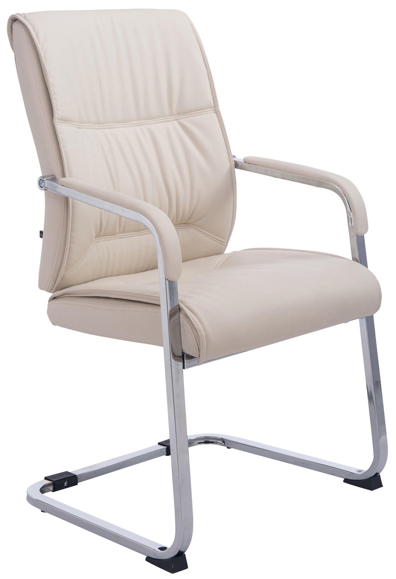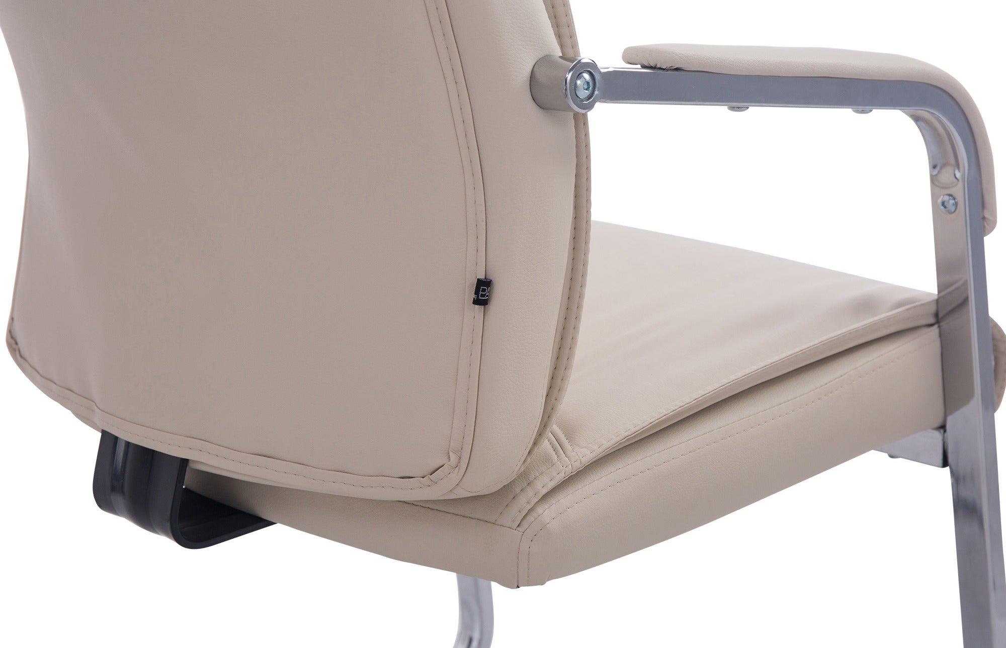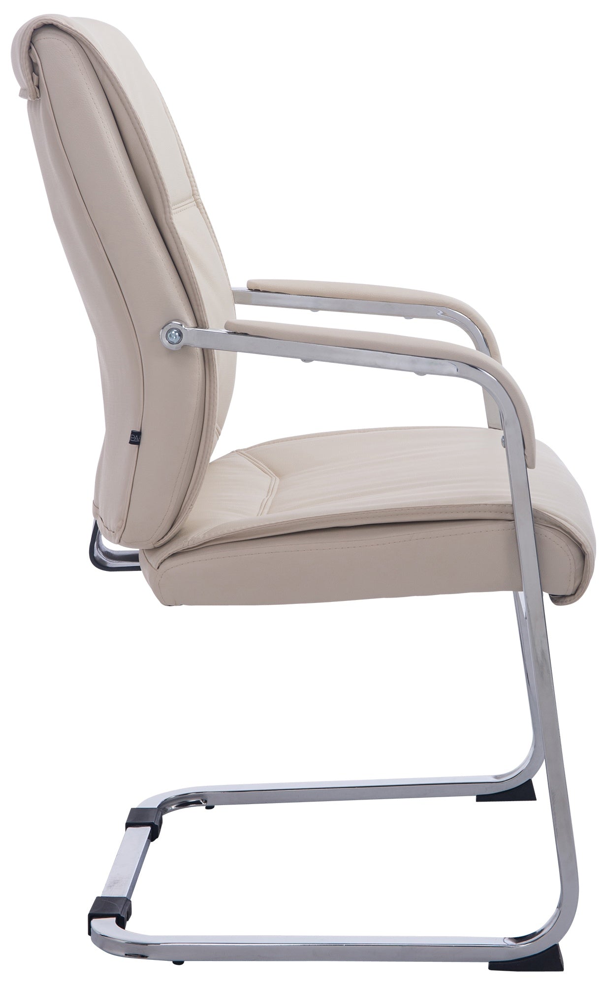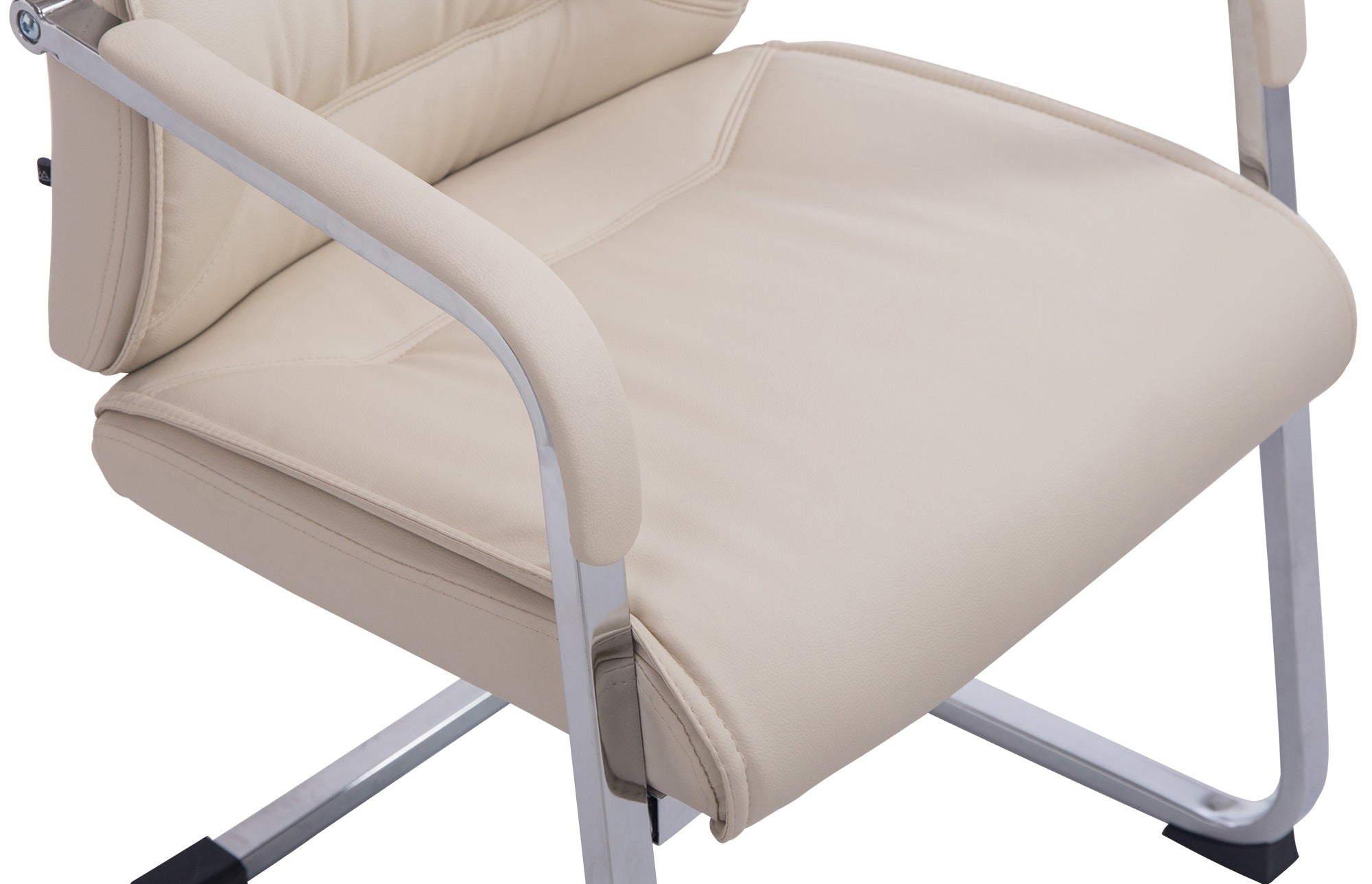 Fauteuil de bureau sans roulettes chaise visiteur sans roulettes jusqu'à 260kg en PVC crème 10_0006953
