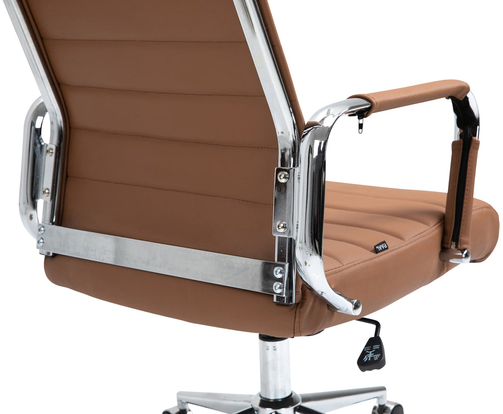 Fauteuil de bureau avec accoudoirs siège pivotant mécanisme à bascule en cuir véritable marron clair 10_0002518