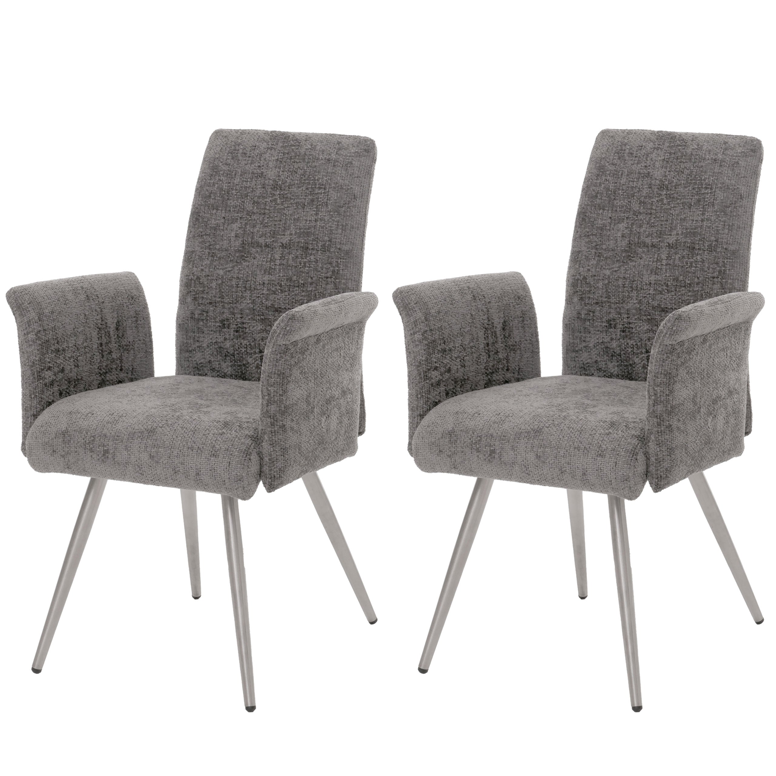 Lot de 2 chaises de salle à manger avec accoudoirs inox brossé et tissu chenille gris foncé 04_0007312