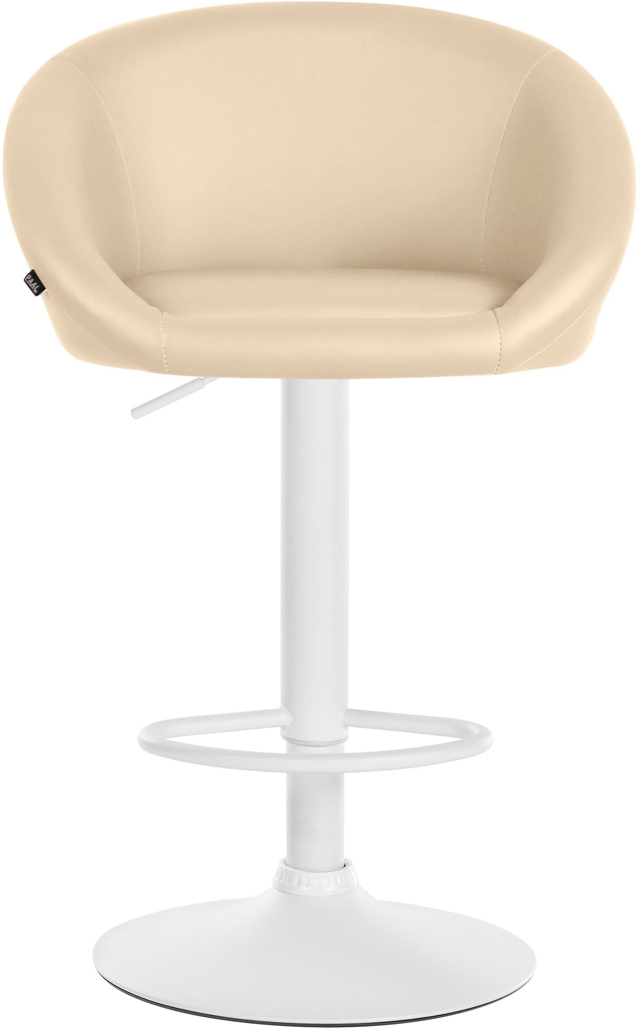 Tabouret de bar assise pivotante à 360° hauteur réglable en PVC crème piètement en métal blanc 10_0004769