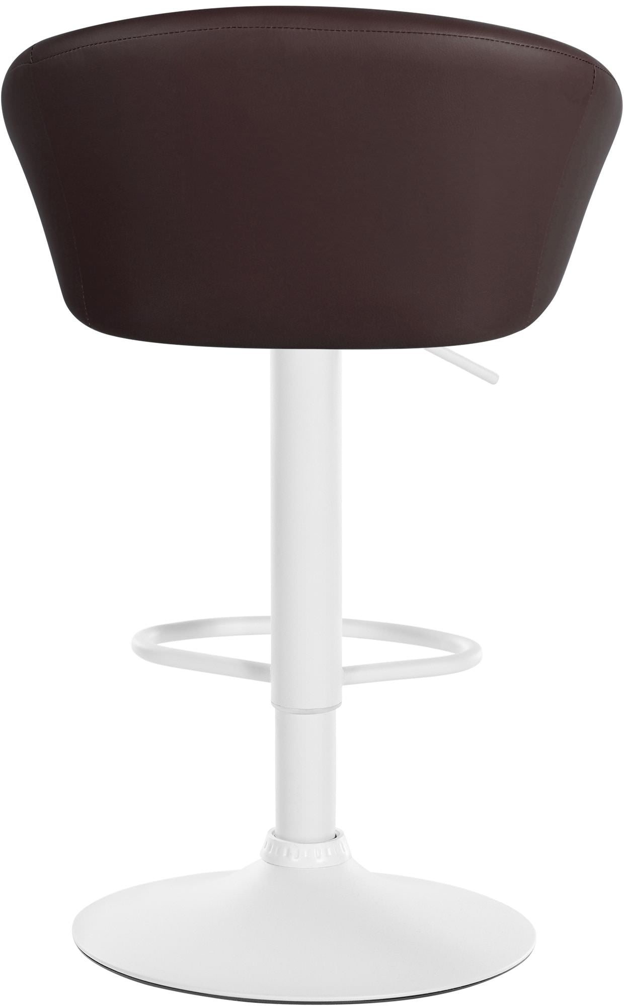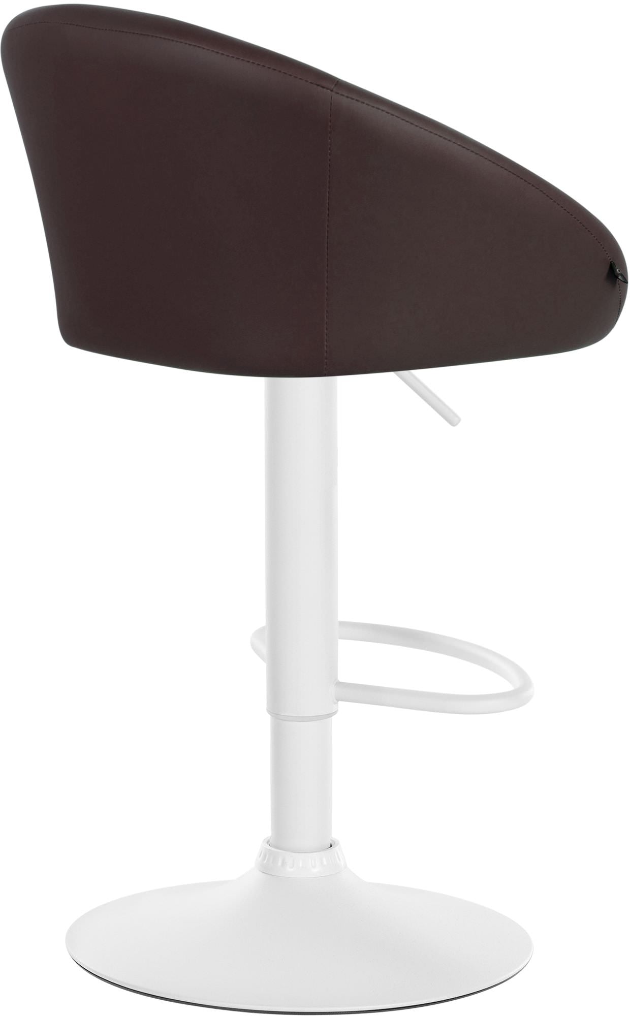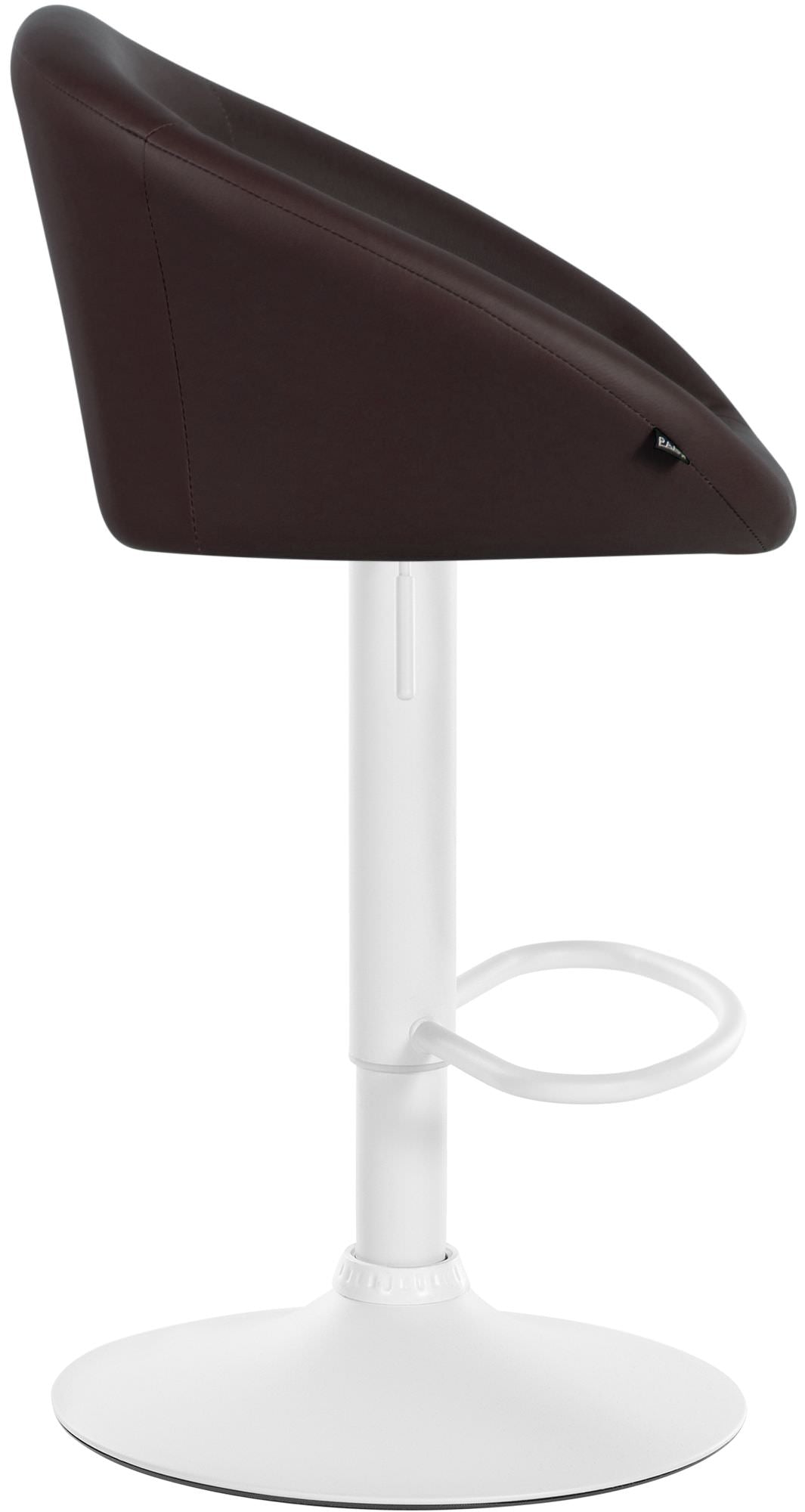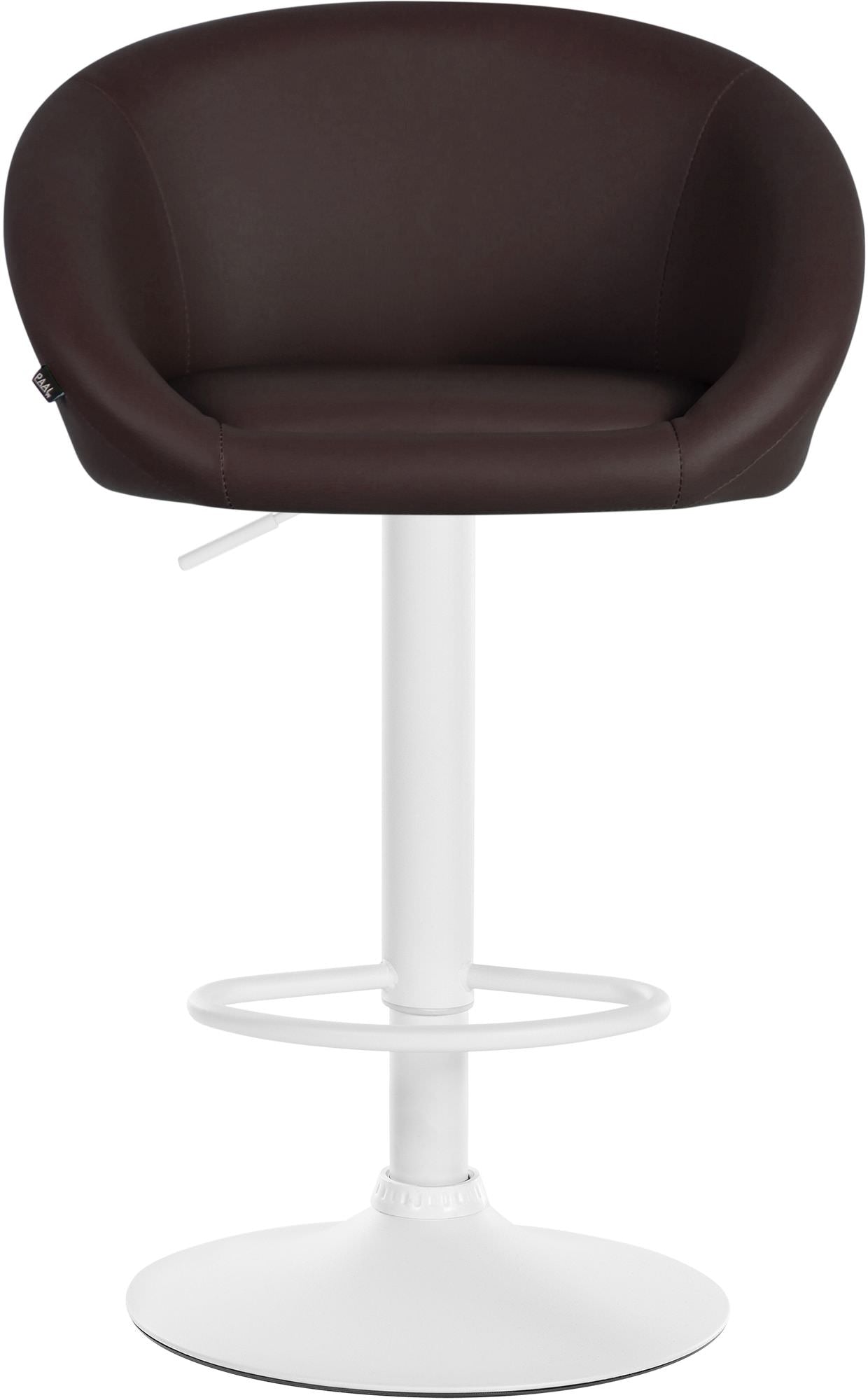 Tabouret de bar assise pivotante à 360° hauteur réglable en PVC marron piètement en métal blanc 10_0004770