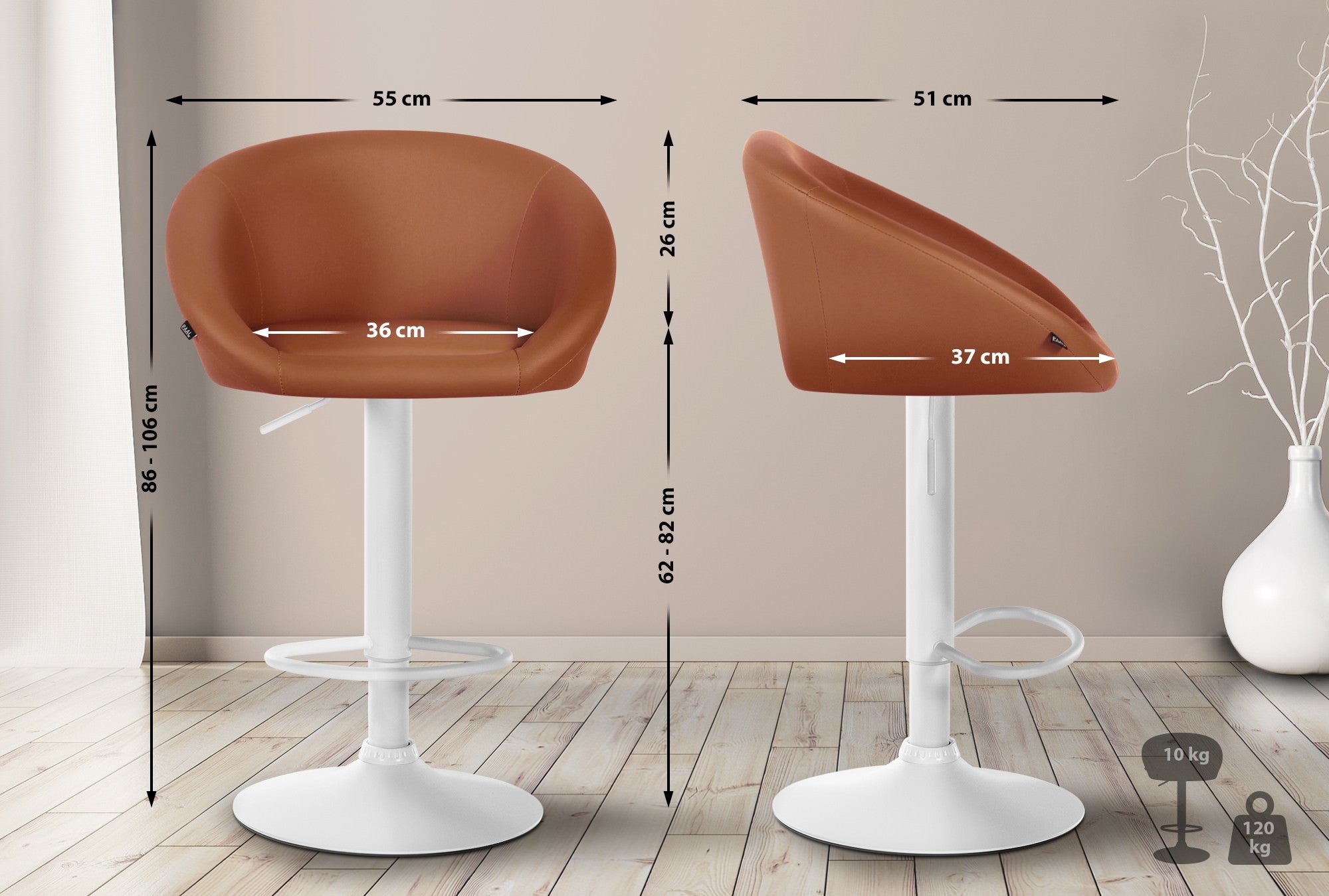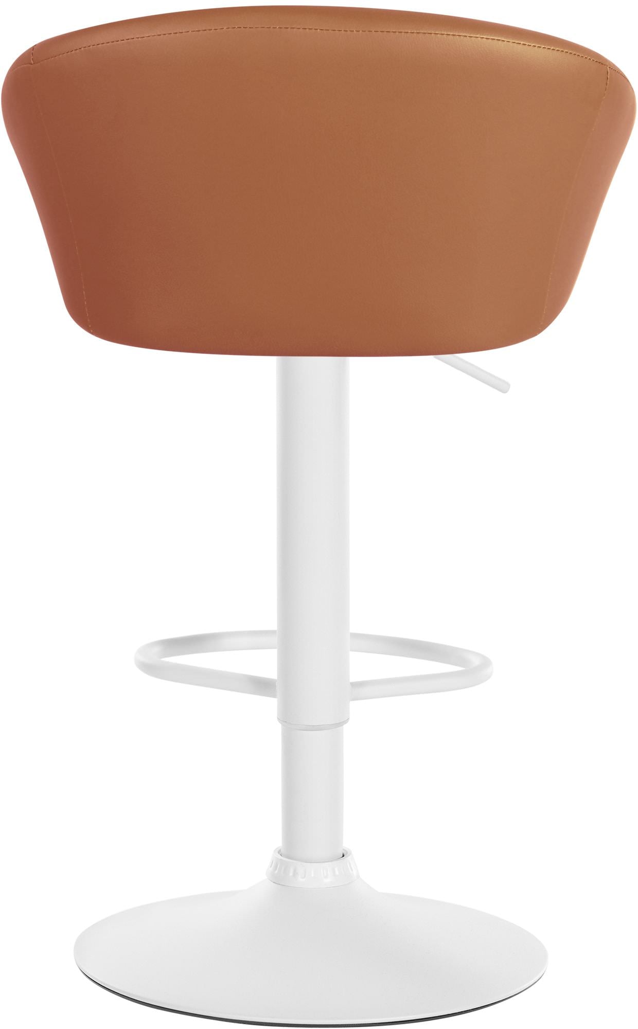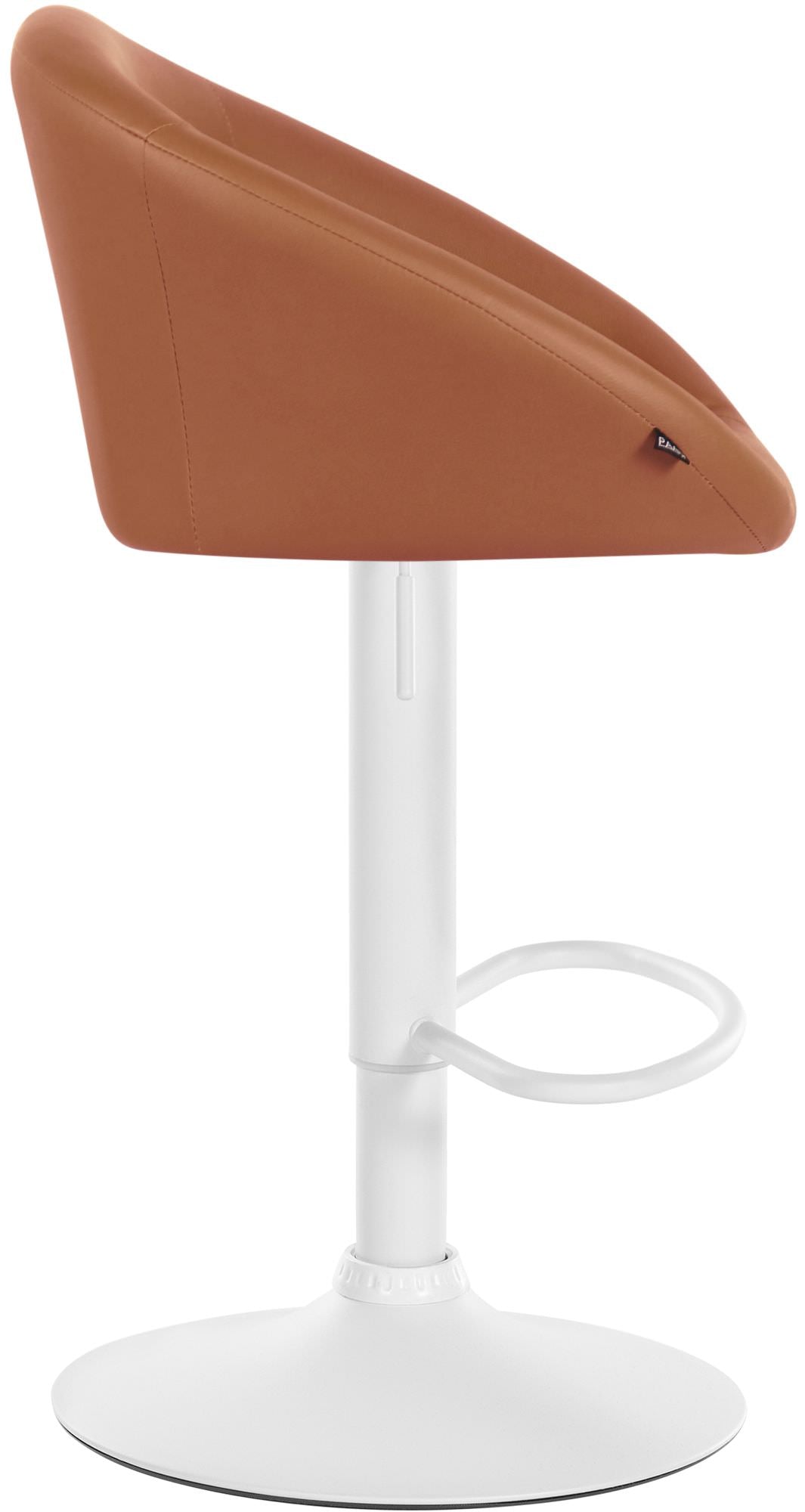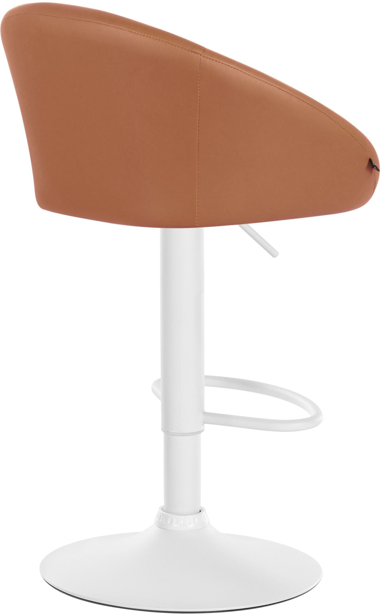 Tabouret de bar assise pivotante à 360° hauteur réglable en PVC marron piètement en métal blanc 10_0004772