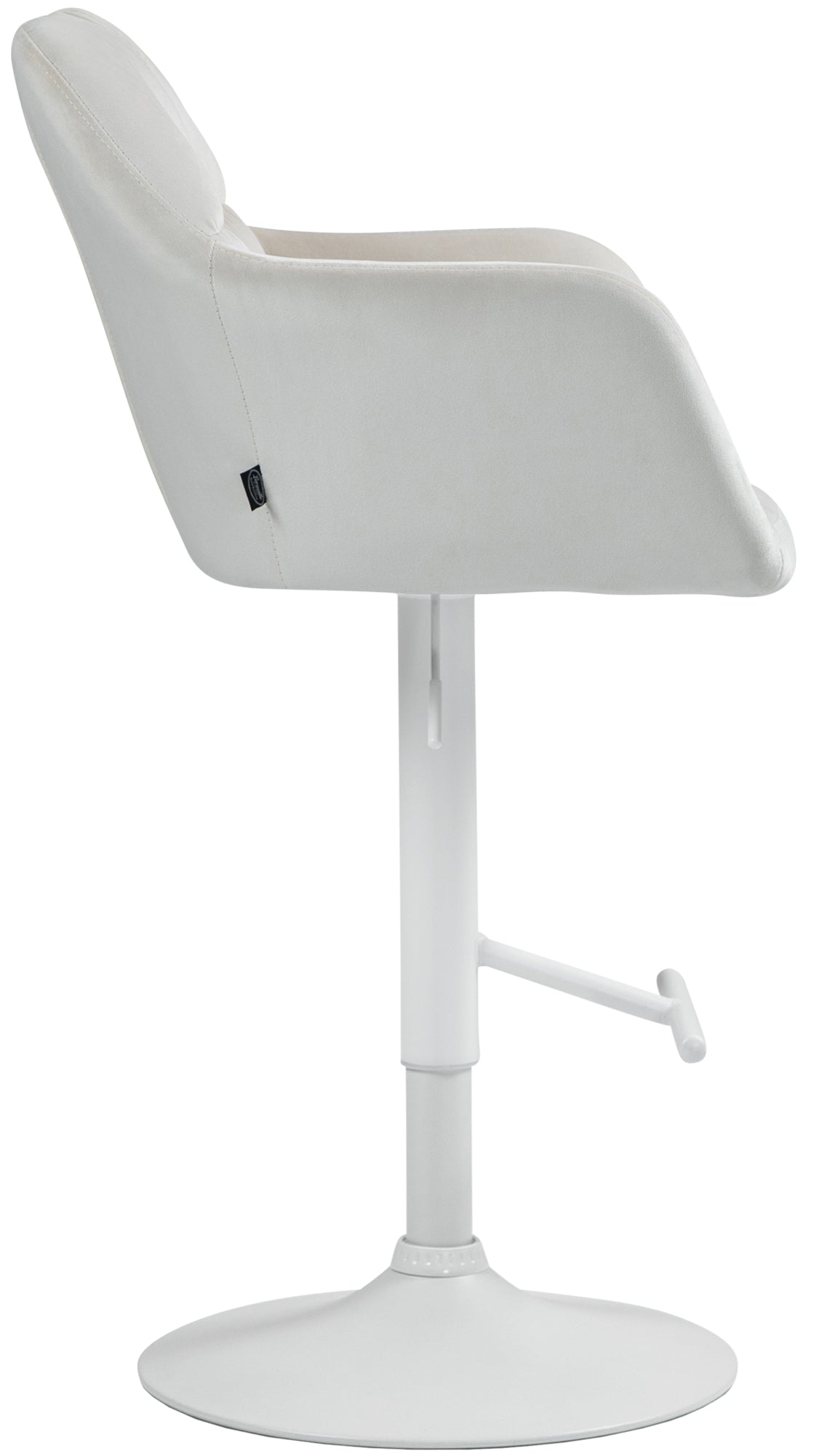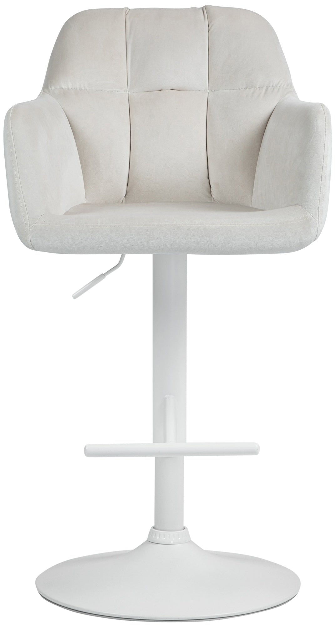 Tabouret de bar chaise haute x1 fonction rotation 360° en velours crème avec coutures décoratives piètement métal blanc 10_0006512