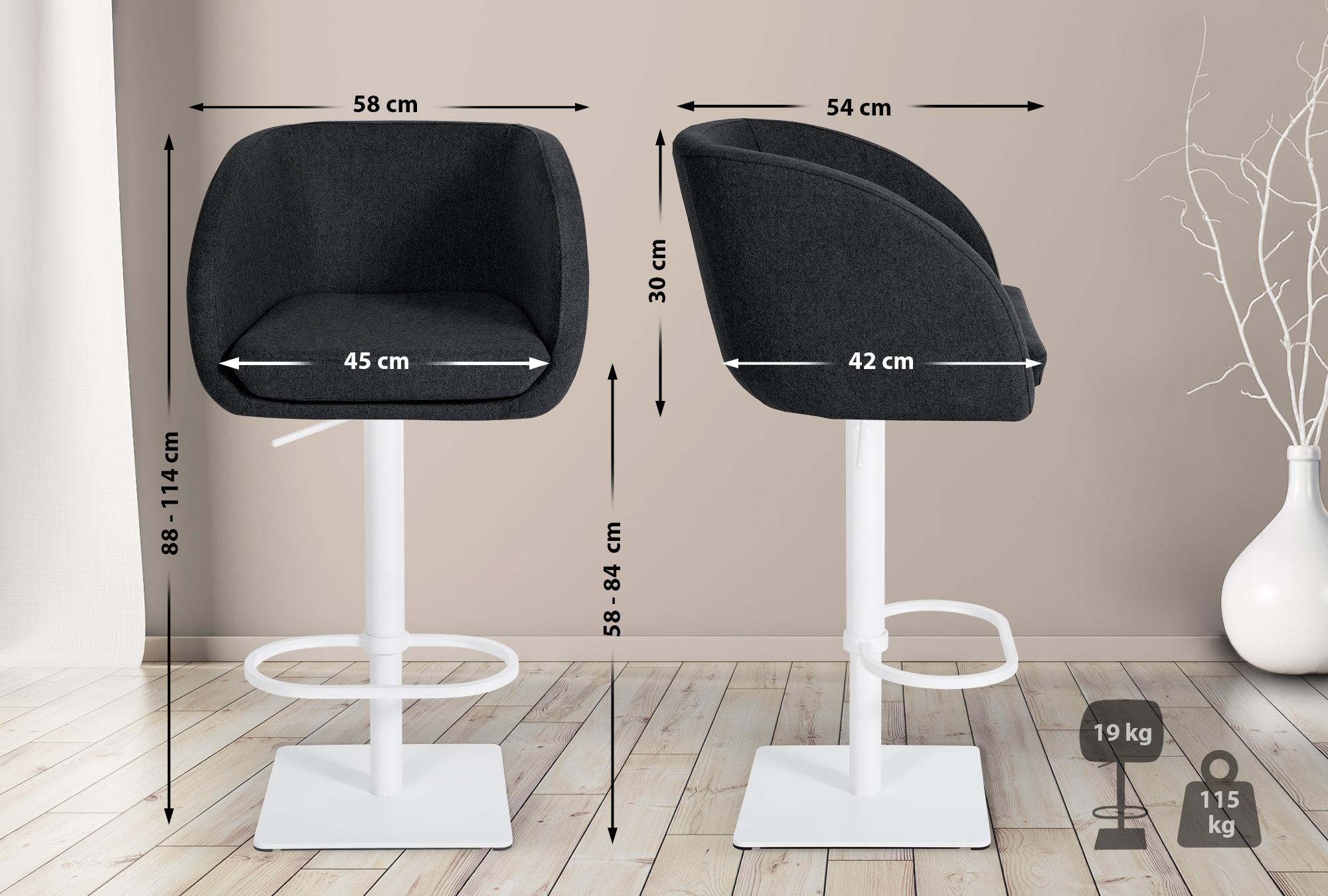Tabouret de bar chaise haute x1 avec revêtement en feutrine anthracite base métal carrée blanc 10_0004877