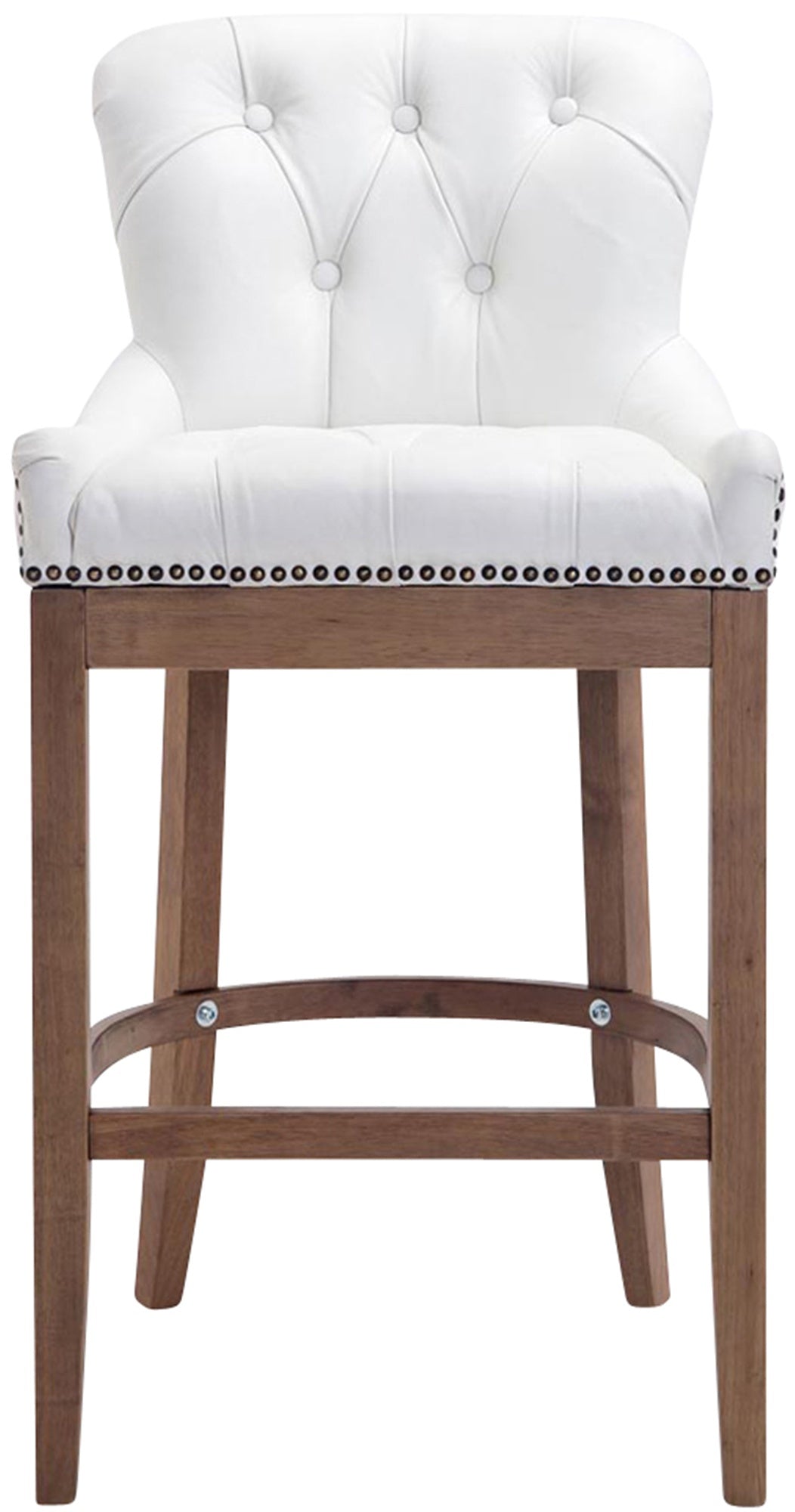 Tabouret de bar x1 confortable design rétro assise capitonné en véritable cuir blanc pieds en bois clair 10_0005059
