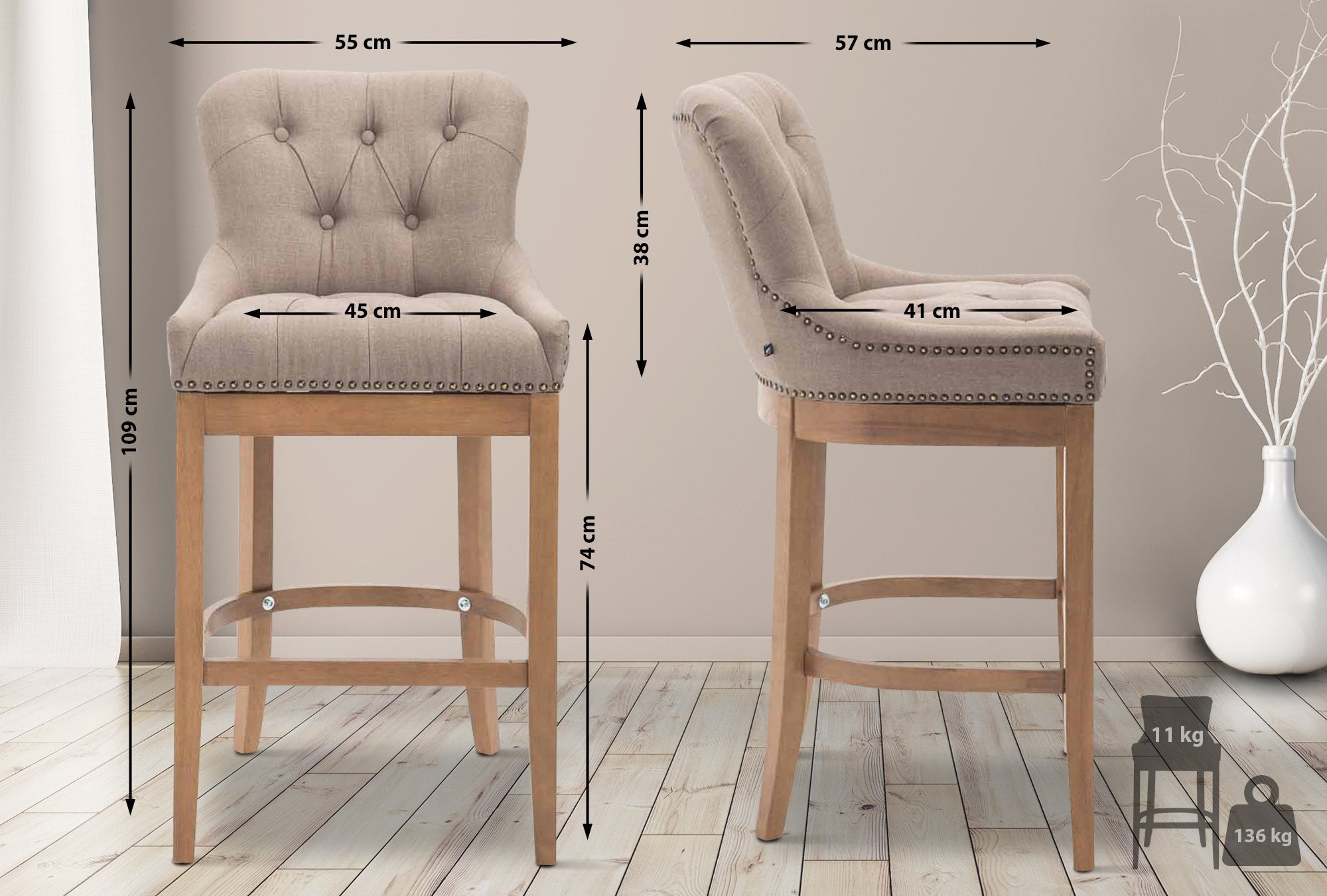 Tabouret de bar avec assise en tissu fabriqué en bois de caoutchouc