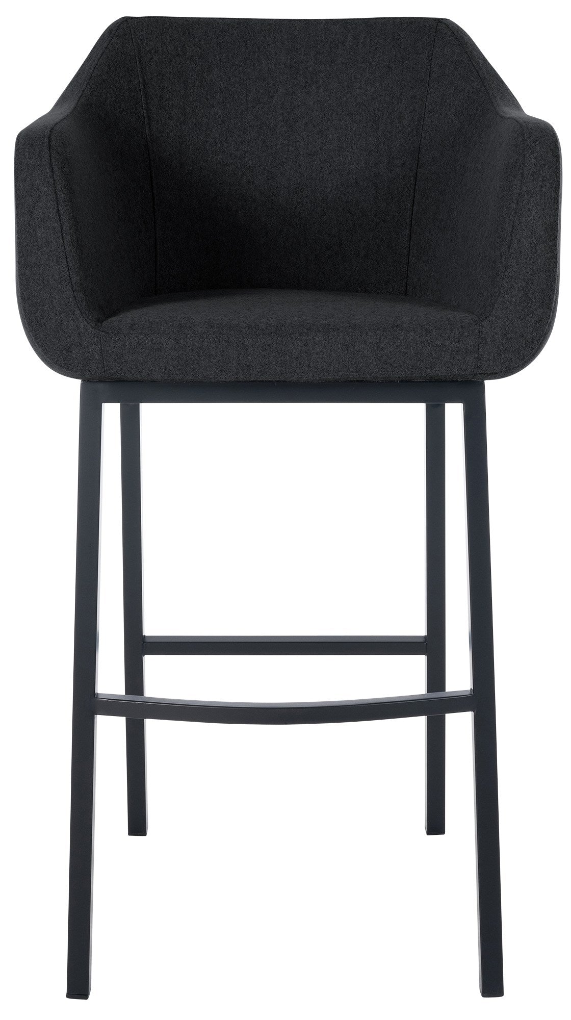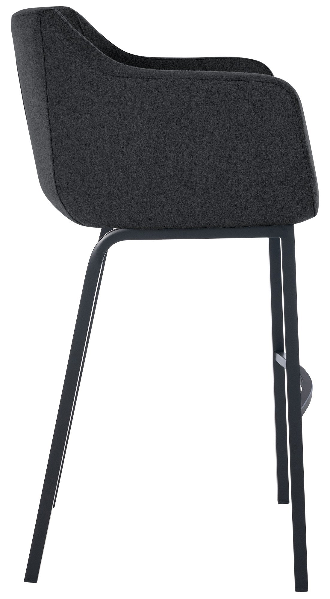 Tabouret de bar chaise haute x1 recouvert de feutrine anthracite avec piètement à quatre pieds en métal noir 10_0005234
