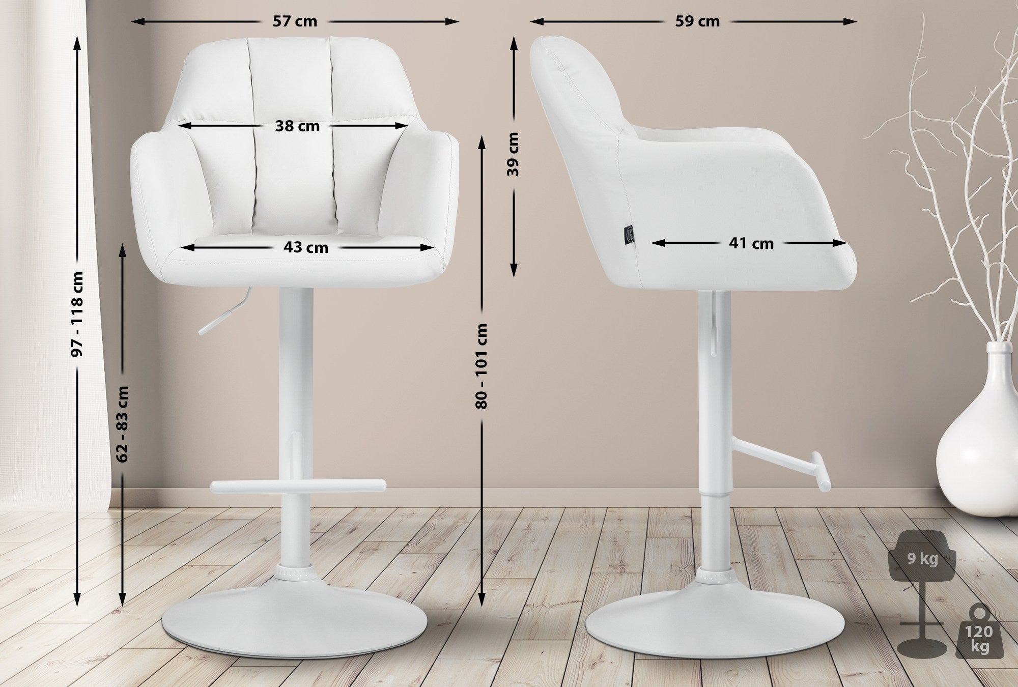 Tabouret de bar chaise haute x1 fonction rotation 360° en similicuir blanc avec coutures décoratives piètement métal blanc 10_0006658