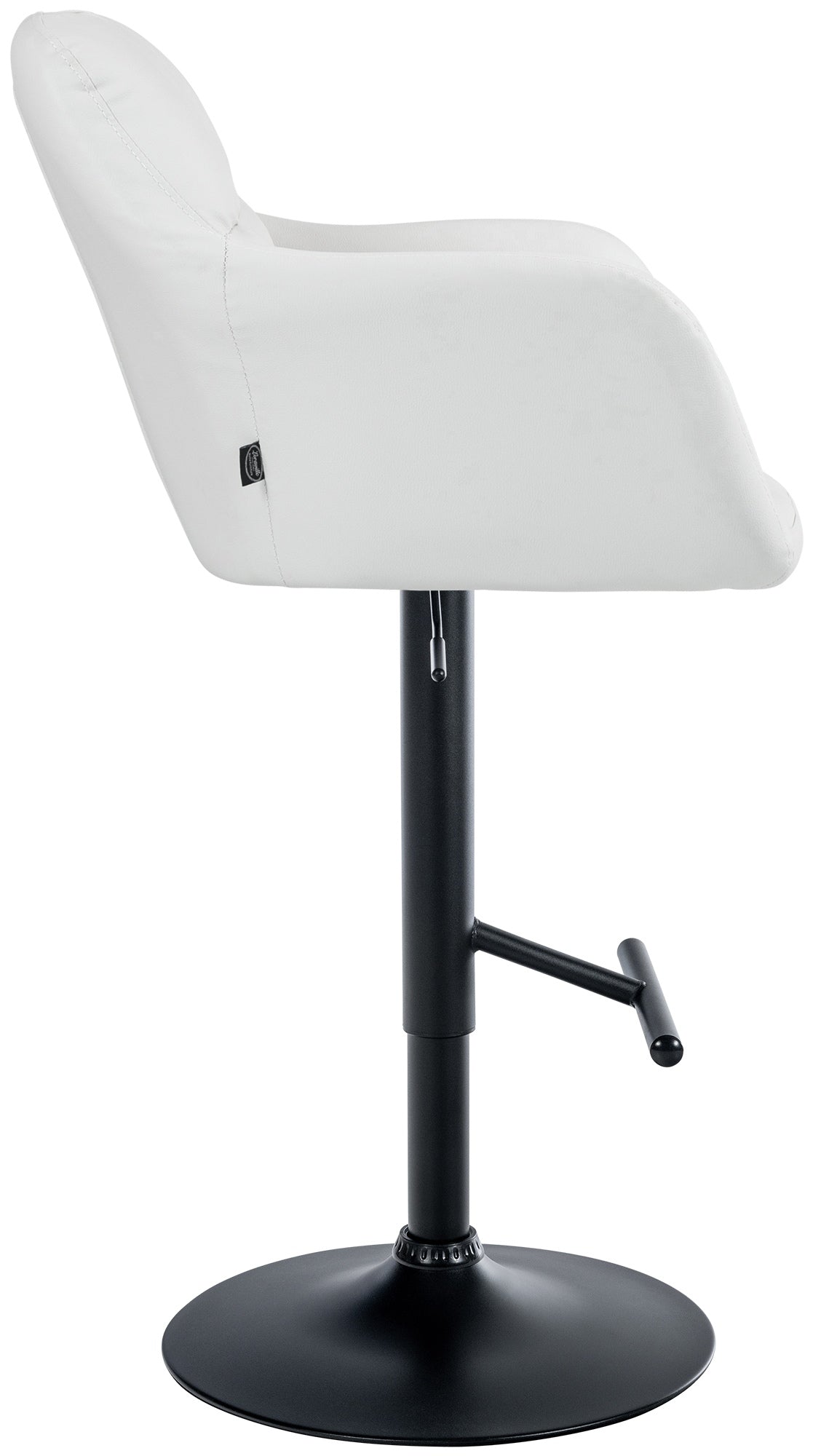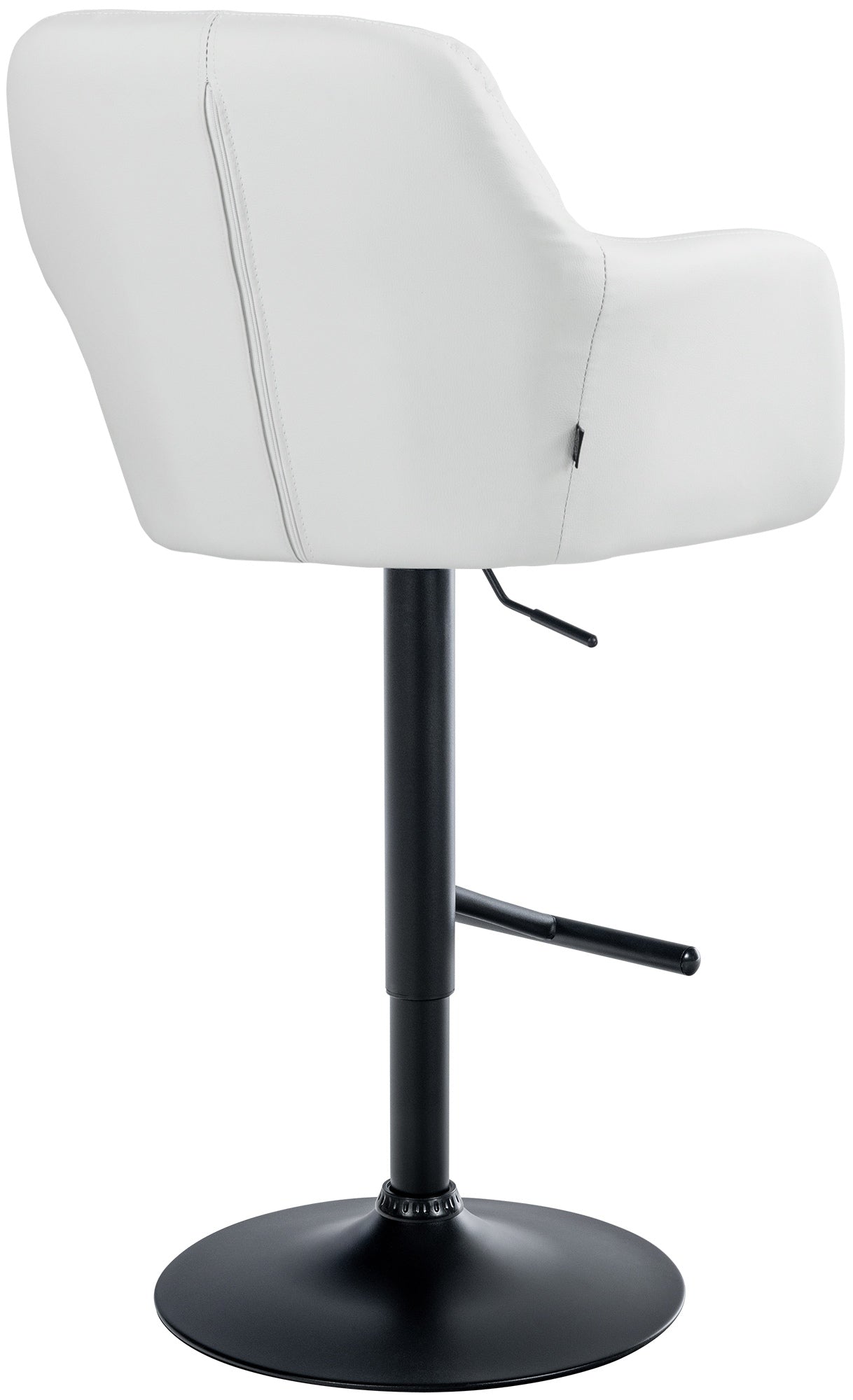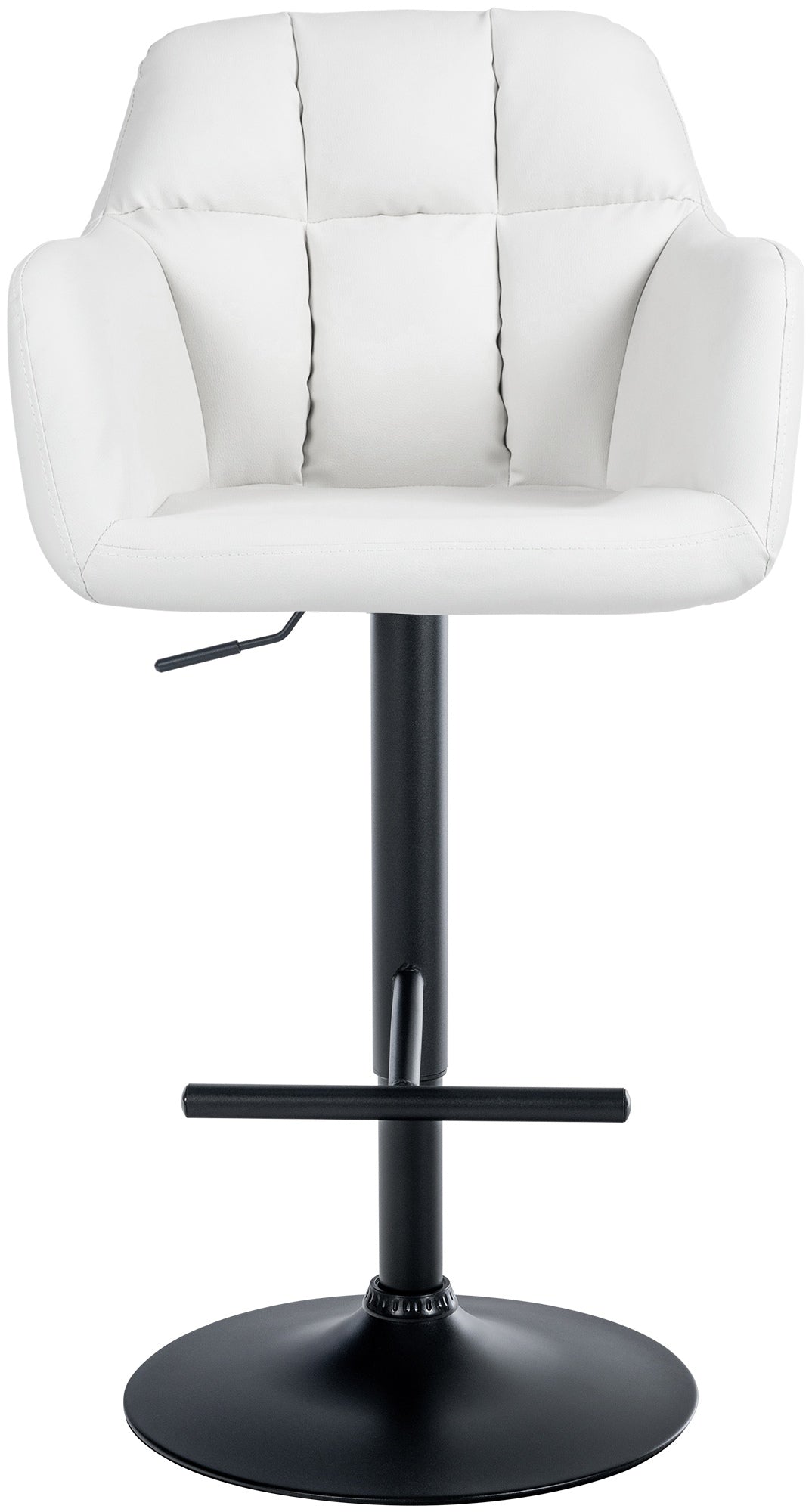 Tabouret de bar chaise haute x1 fonction rotation 360° en PVC blanc avec coutures décoratives piètement métal noir 10_0005261