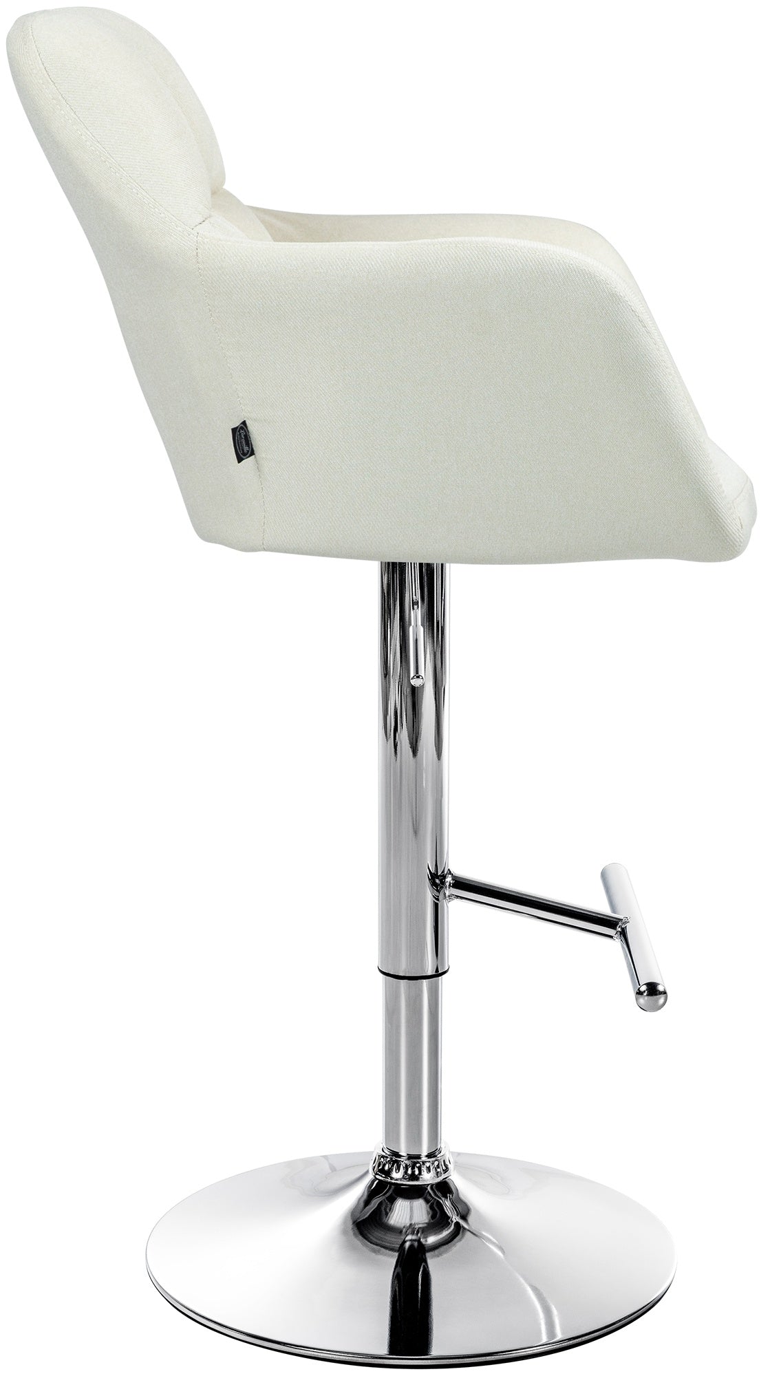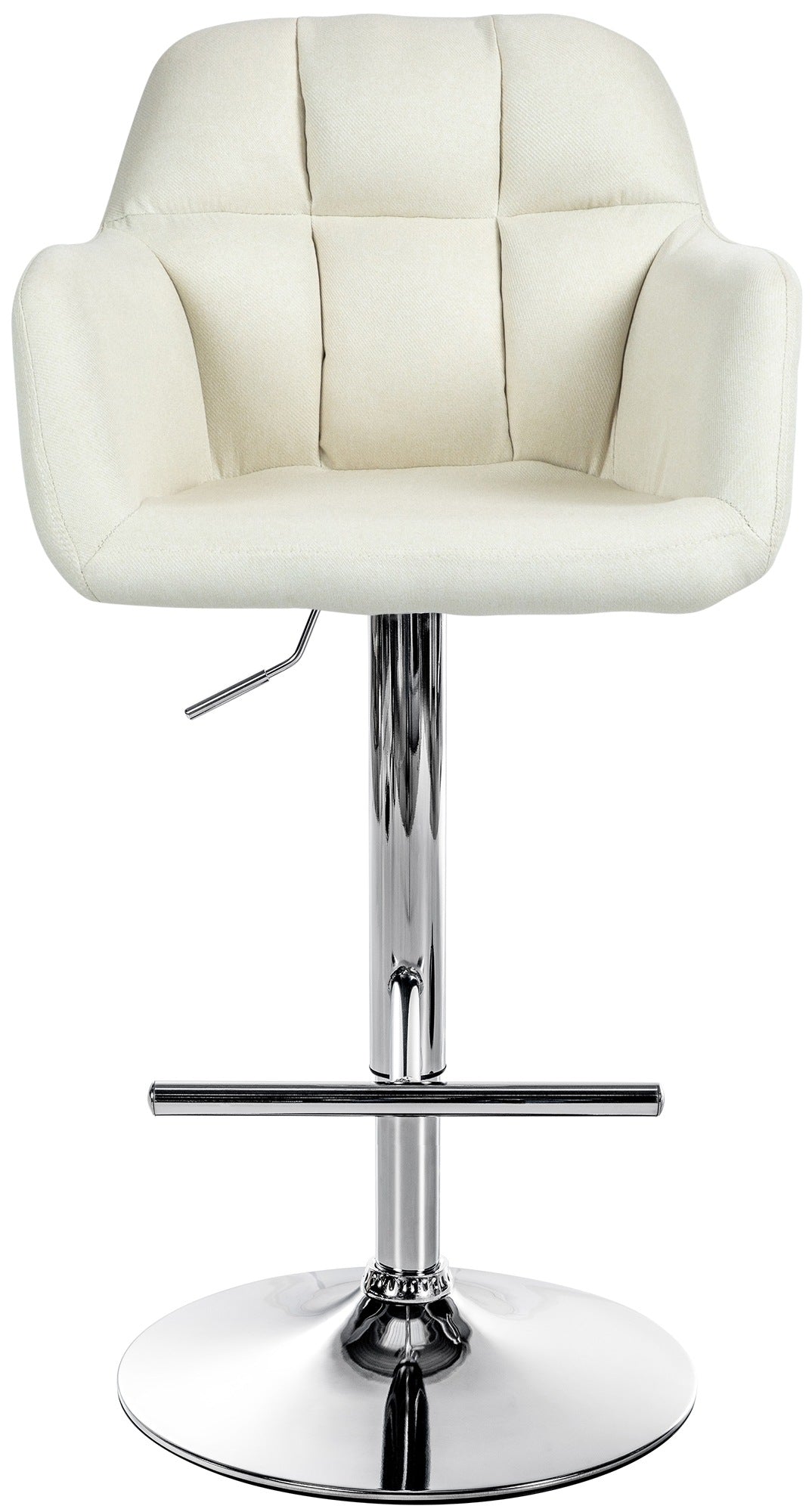 Tabouret de bar chaise haute x1 fonction rotation 360° en tissu crème avec coutures décoratives piètement métal chromé 10_0005272