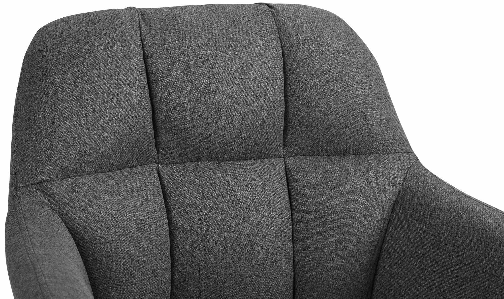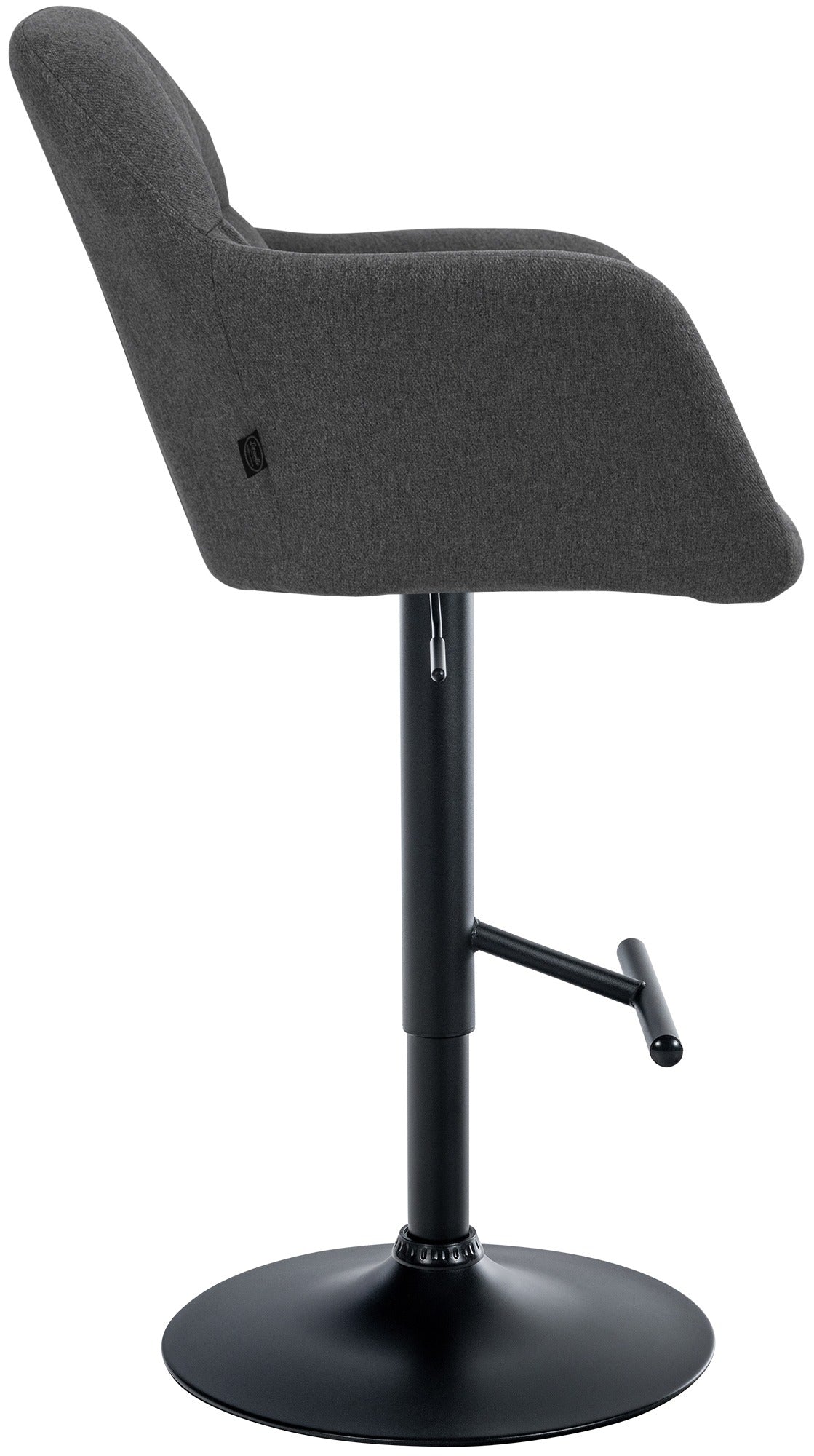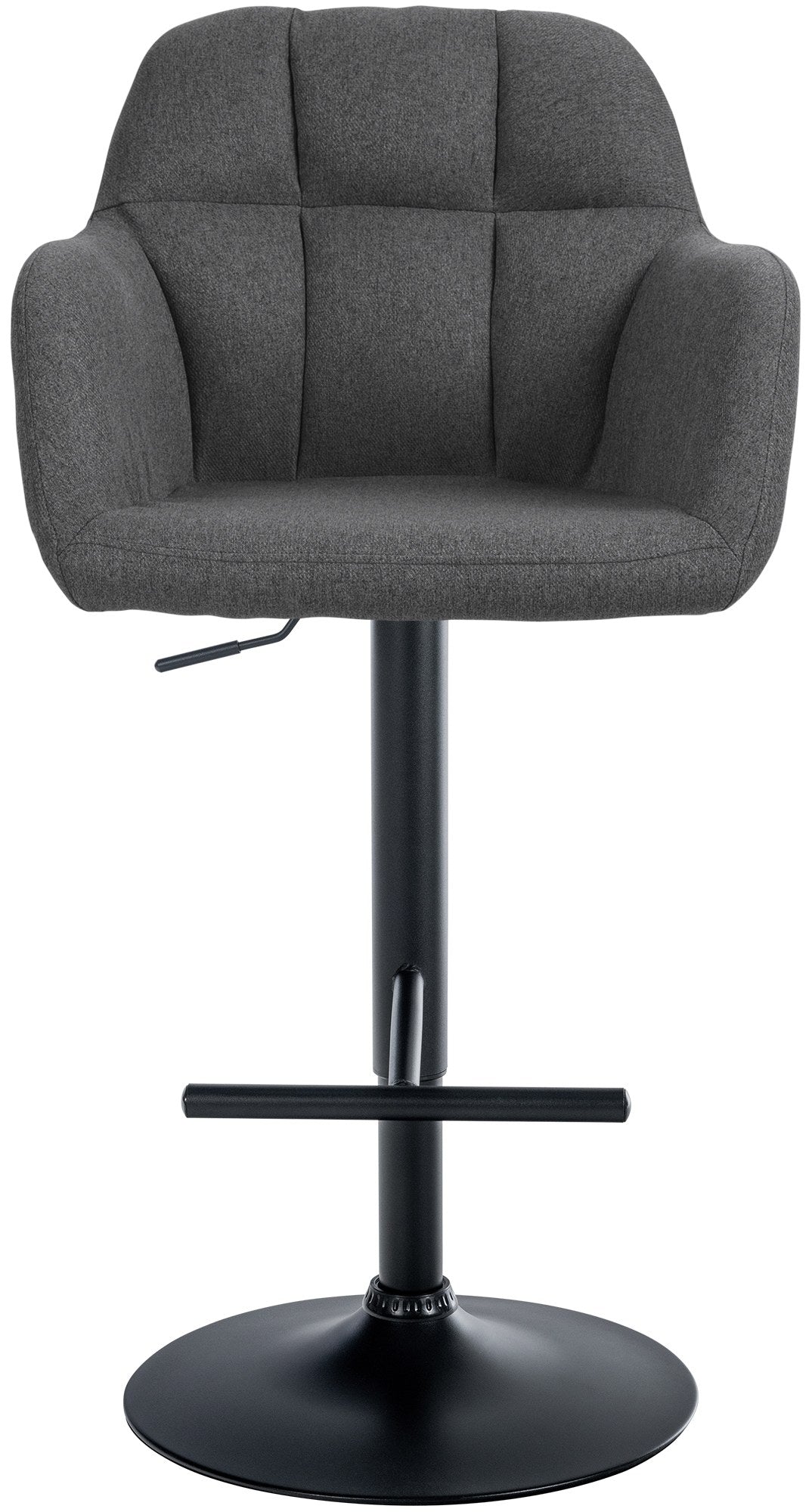 Tabouret de bar chaise haute x1 fonction rotation 360° en tissu gris foncé avec coutures décoratives piètement métal noir 10_0005279