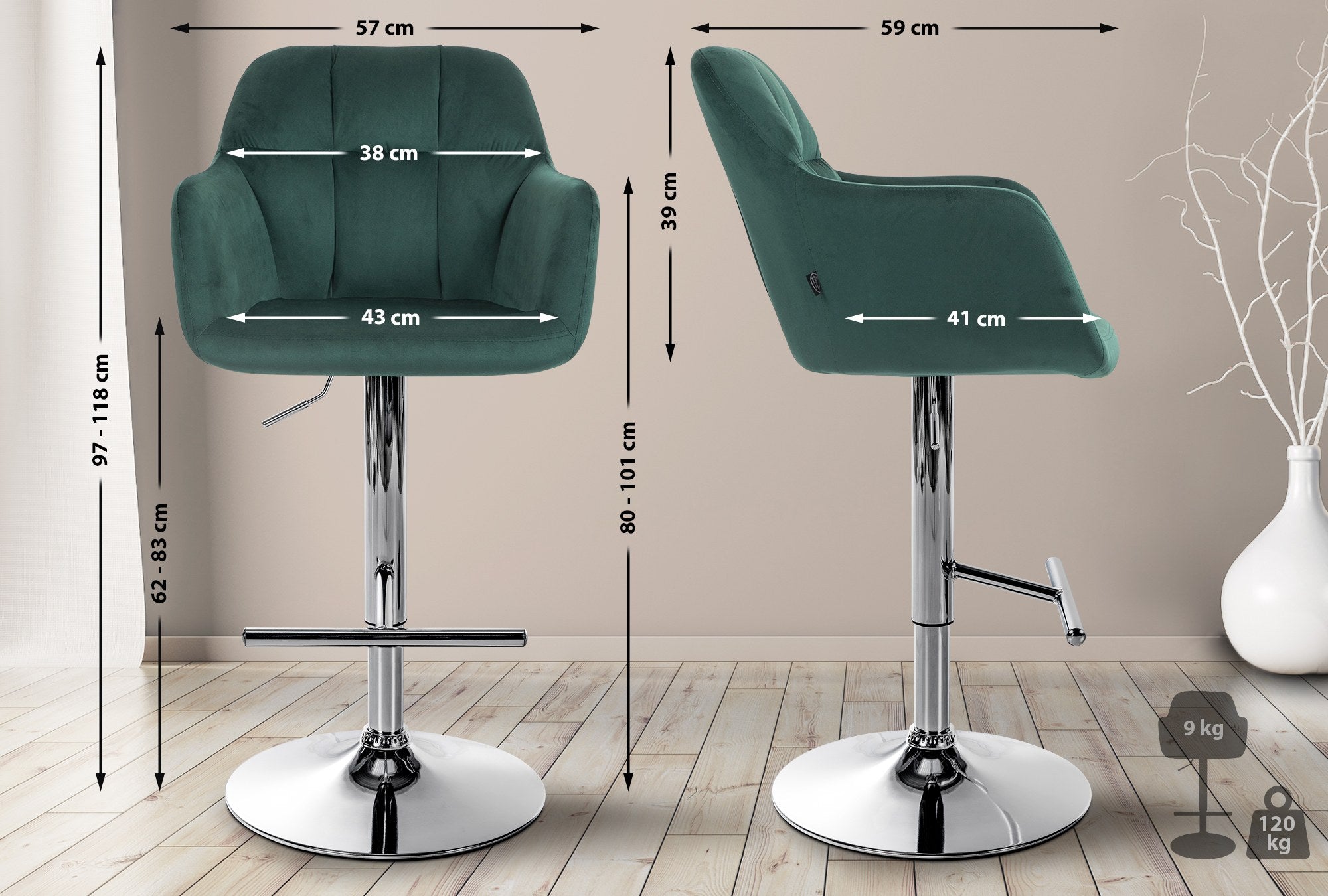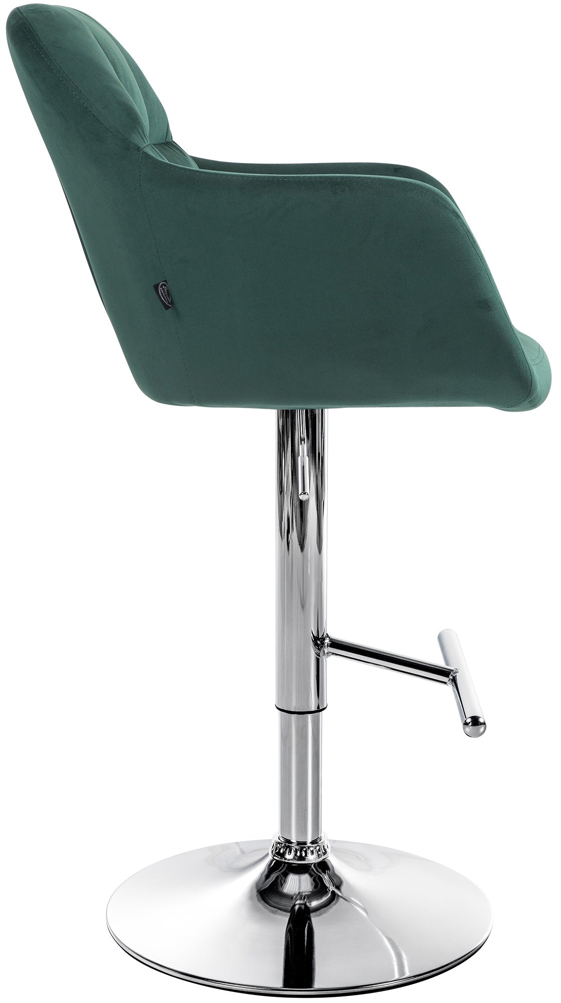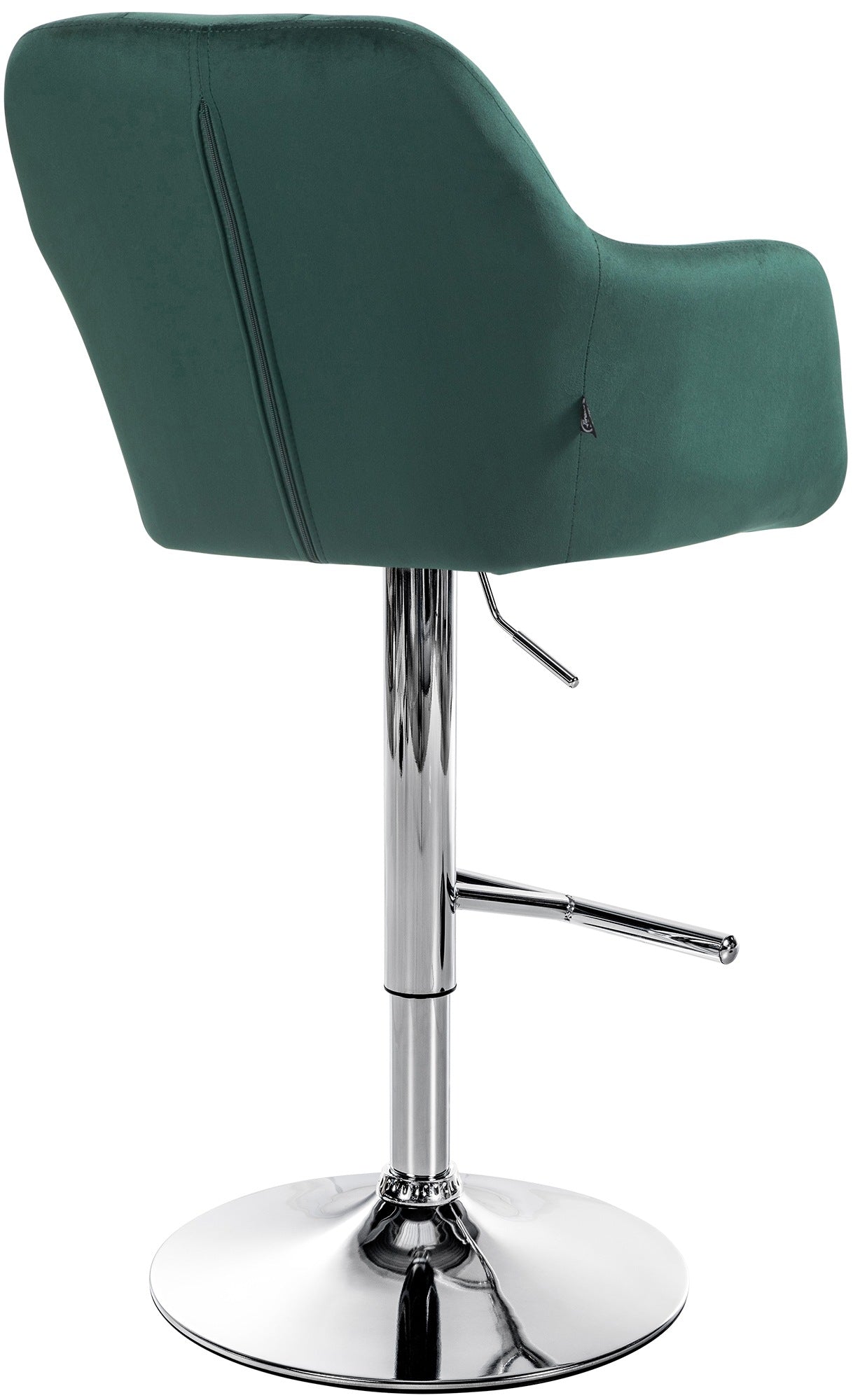 Tabouret de bar chaise haute x1 fonction rotation 360° en velours vert avec coutures décoratives piètement métal chromé 10_0005266