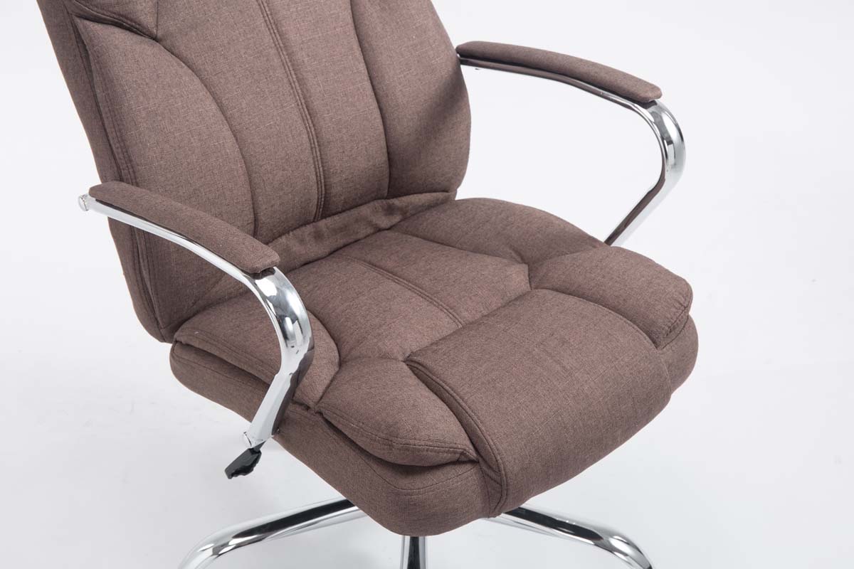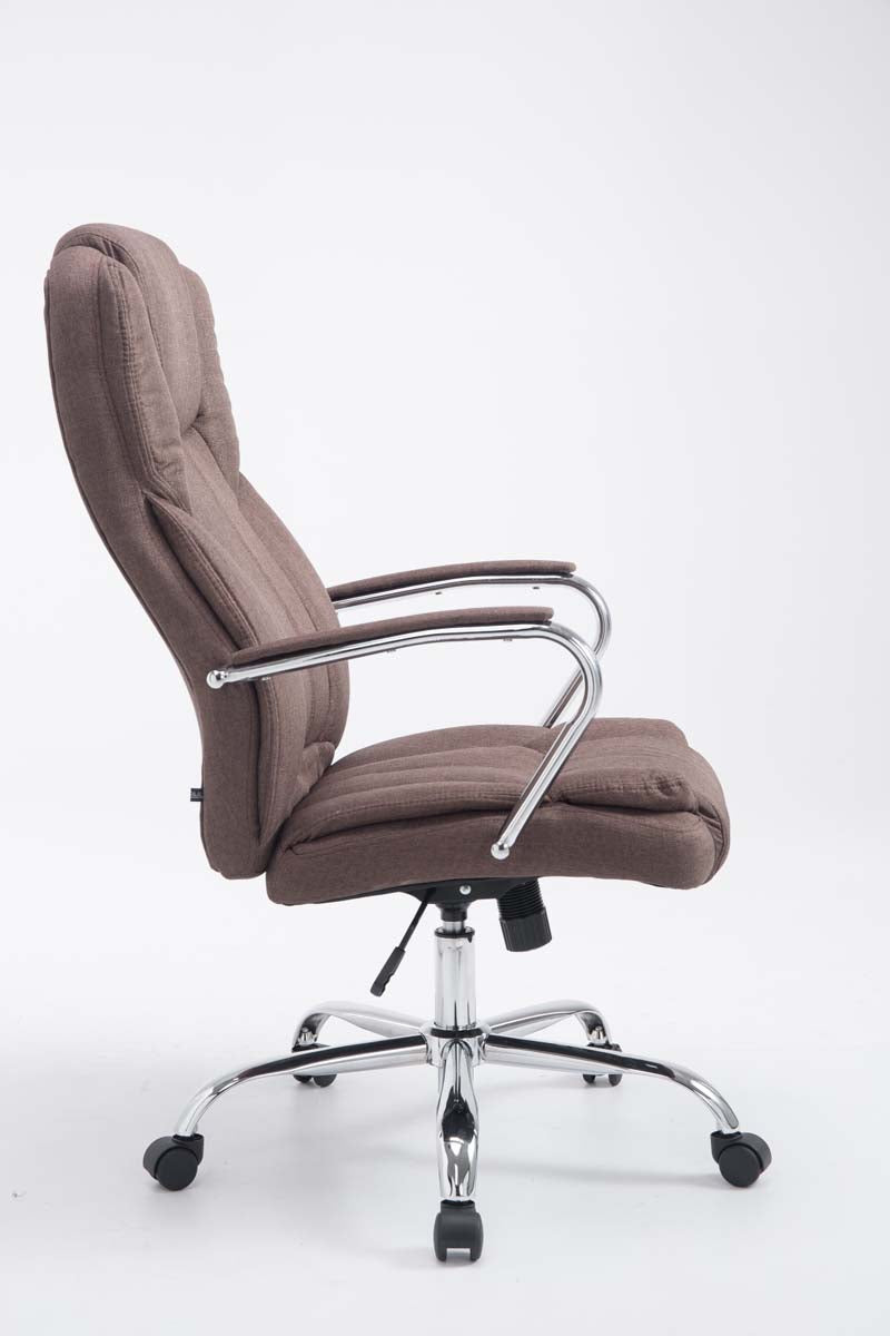 Fauteuil de bureau sur roulettes largeur d'assise XXL en tissu marron et métal chromé 10_0007060