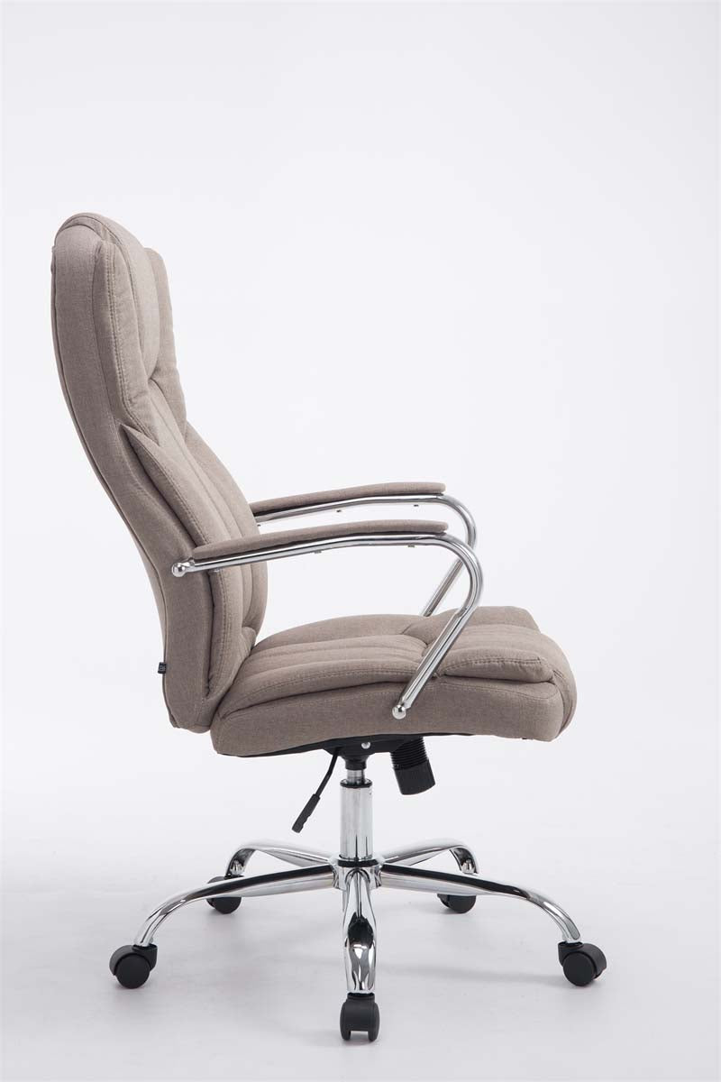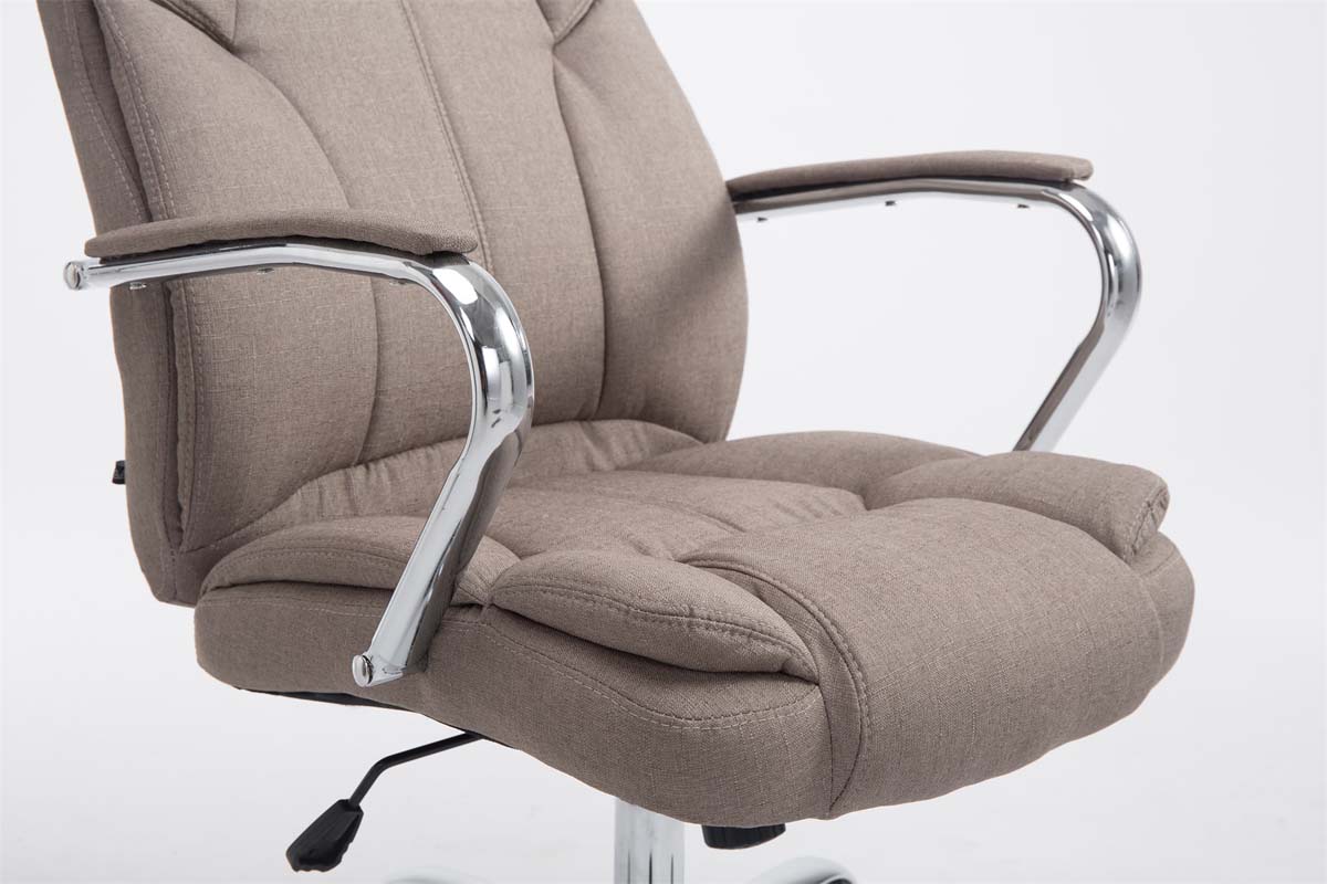 Fauteuil de bureau sur roulettes largeur d'assise XXL en tissu taupe et métal chromé 10_0007014