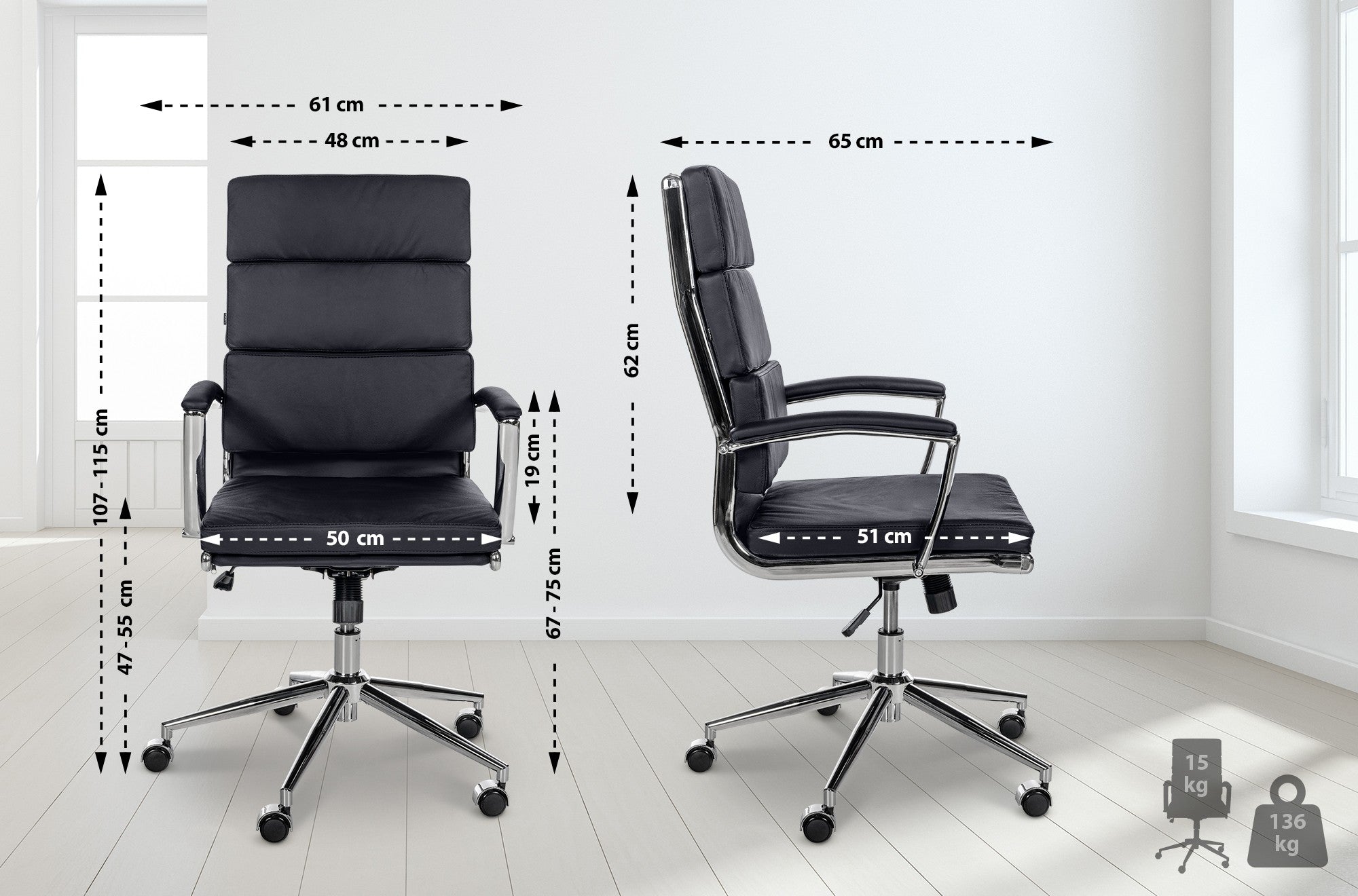 Hauteur accoudoir (du sol) : 67 - 75 cm