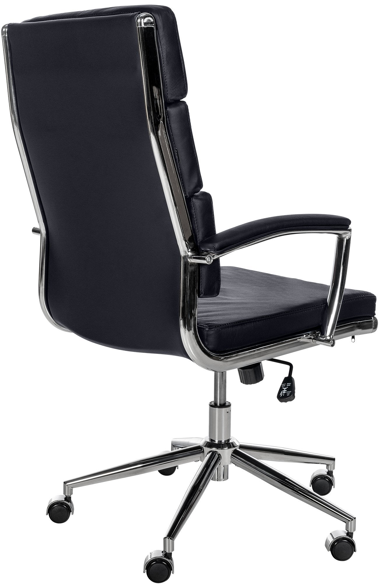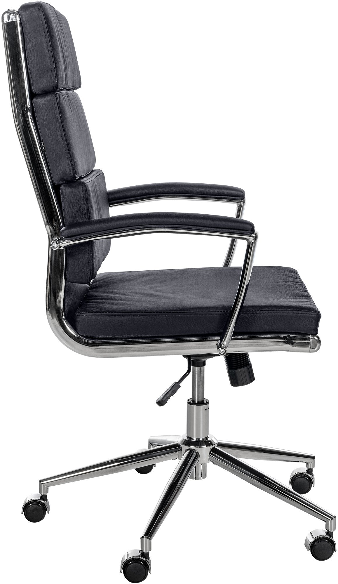 Fauteuil de bureau sur roulettes dossier à triple rembourrage et forme ergonomique en cuir noir et métal chromé 10_0002443