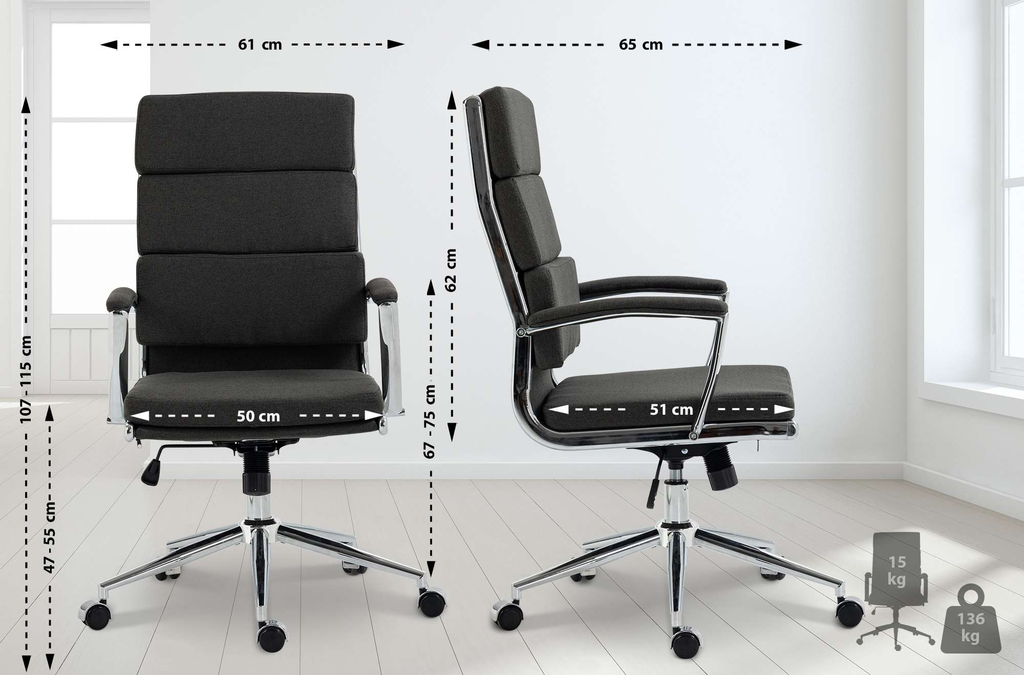 Fauteuil de bureau sur roulettes dossier à triple rembourrage et forme ergonomique en tissu gris foncé et métal chromé 10_0007070