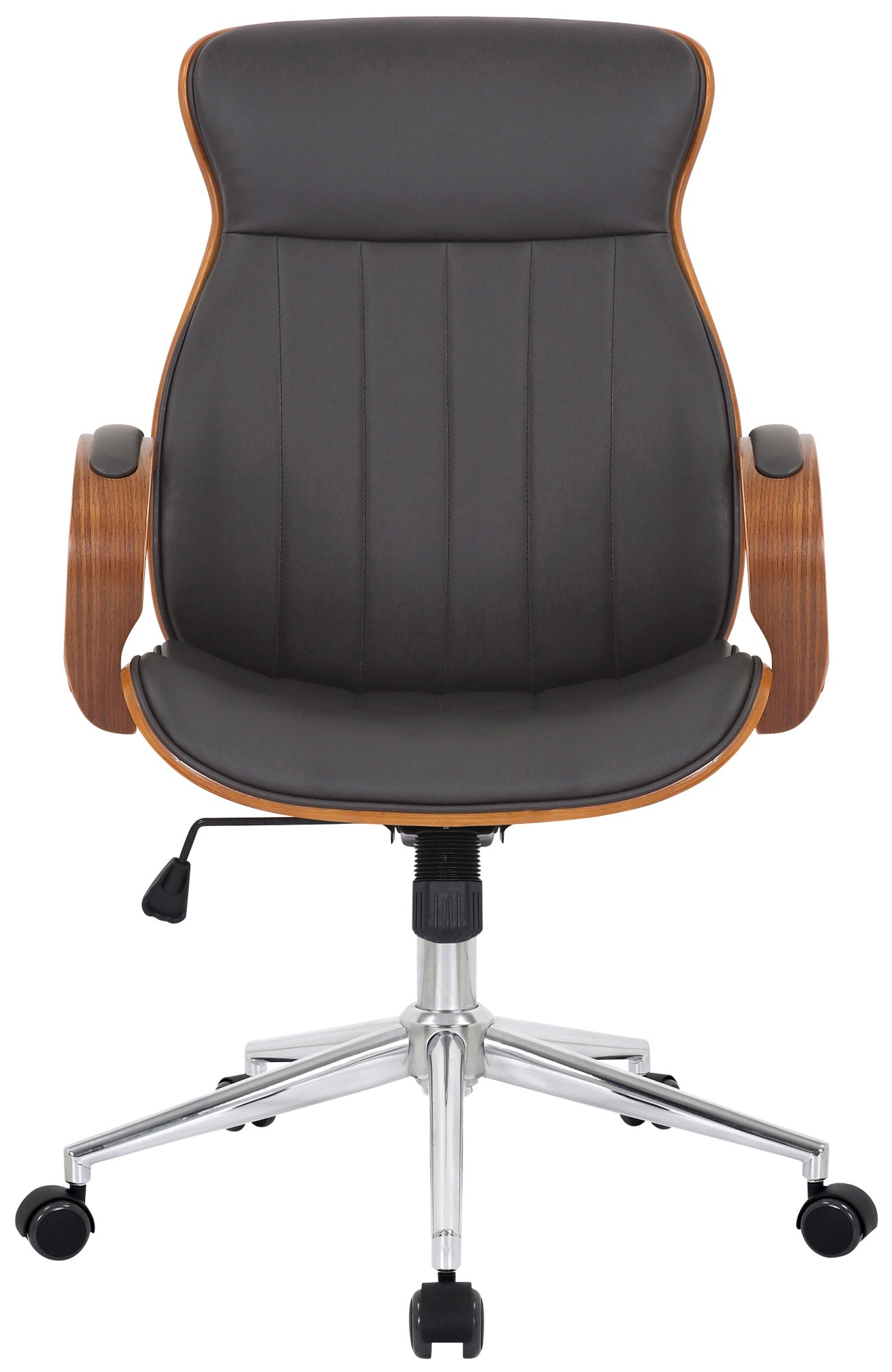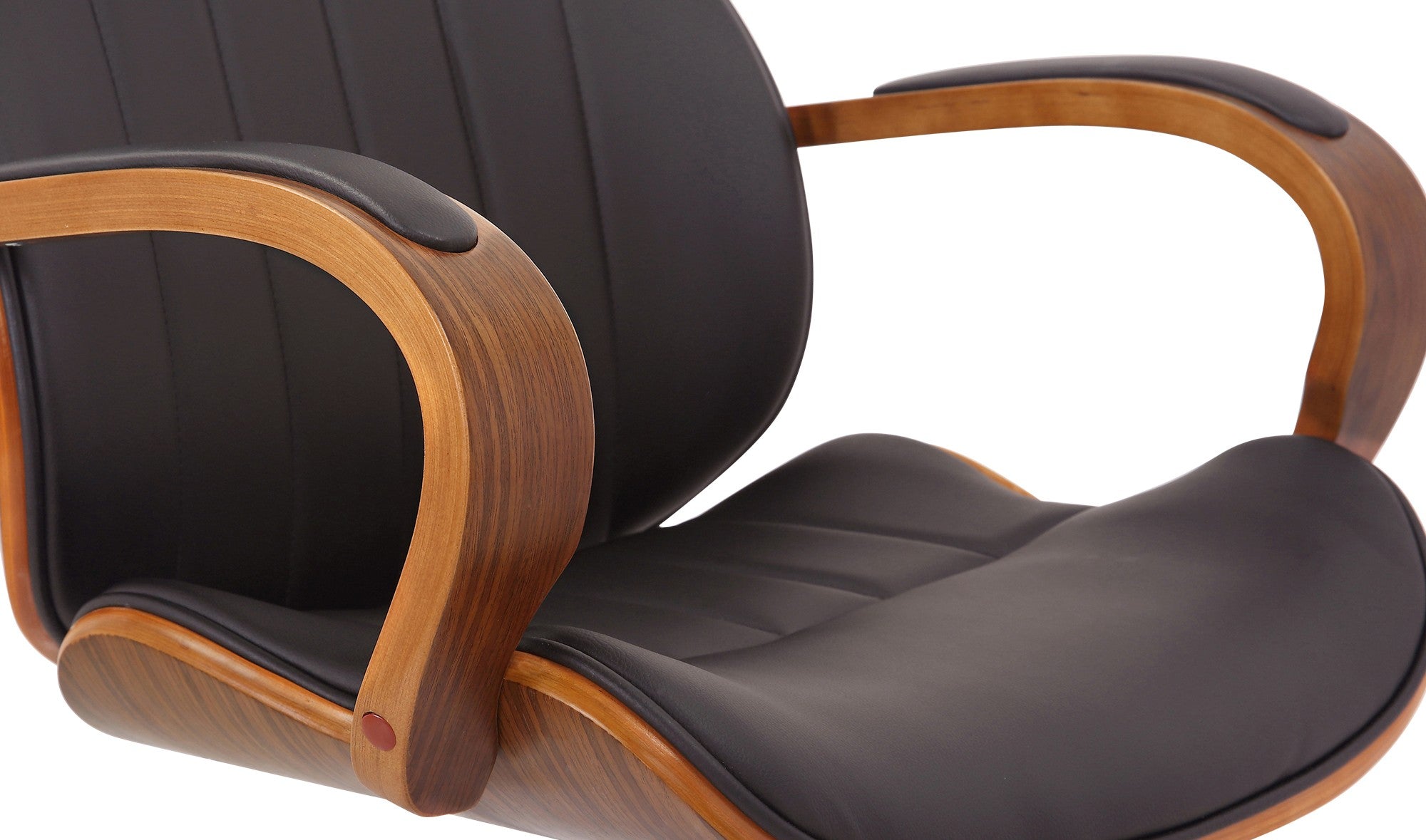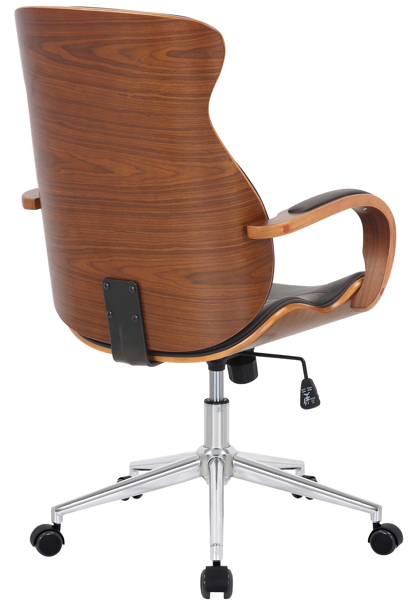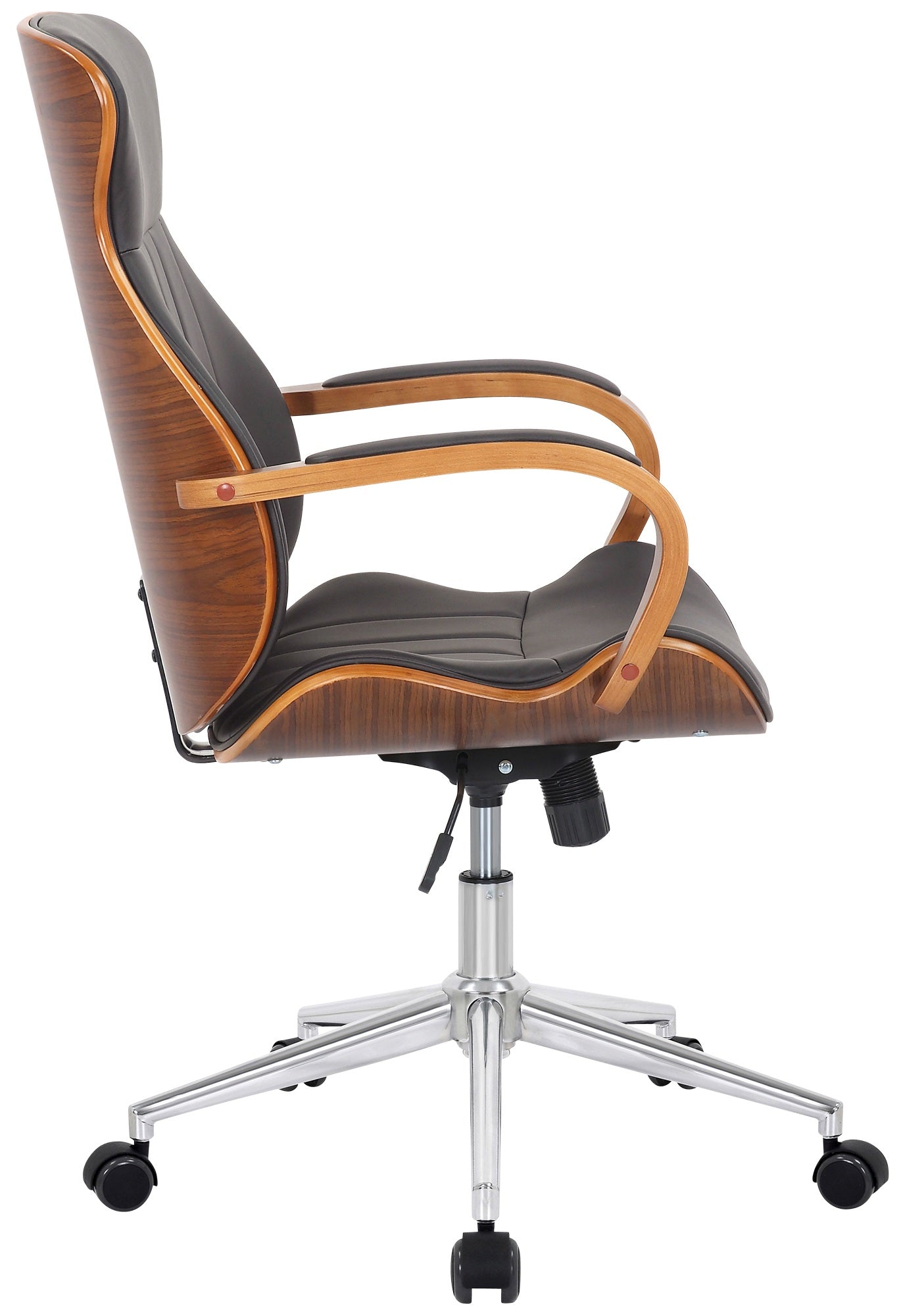 Fauteuil de bureau avec accoudoirs cadre robuste en bois courbé couleur noyer PVC marron et métal chromé 10_0002546