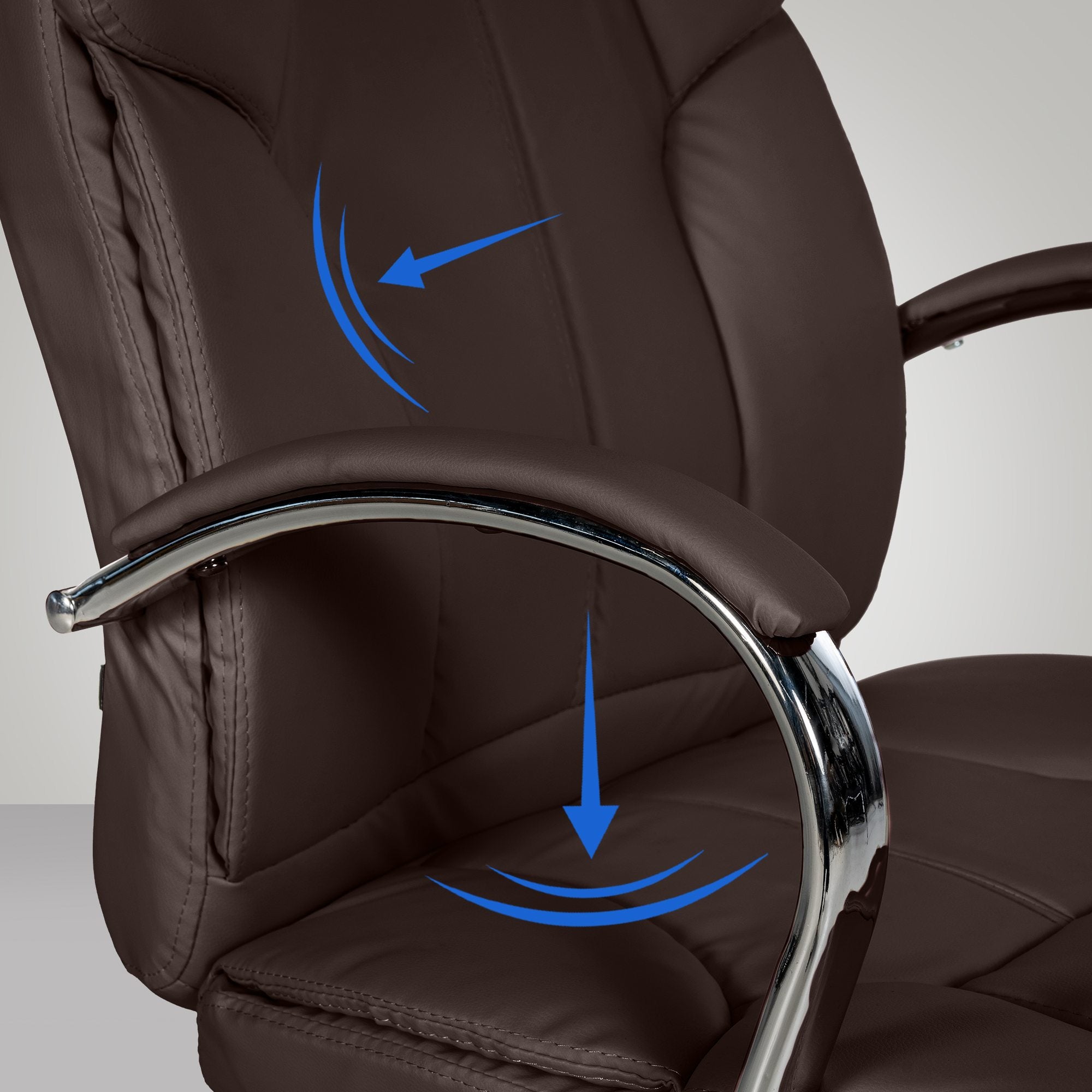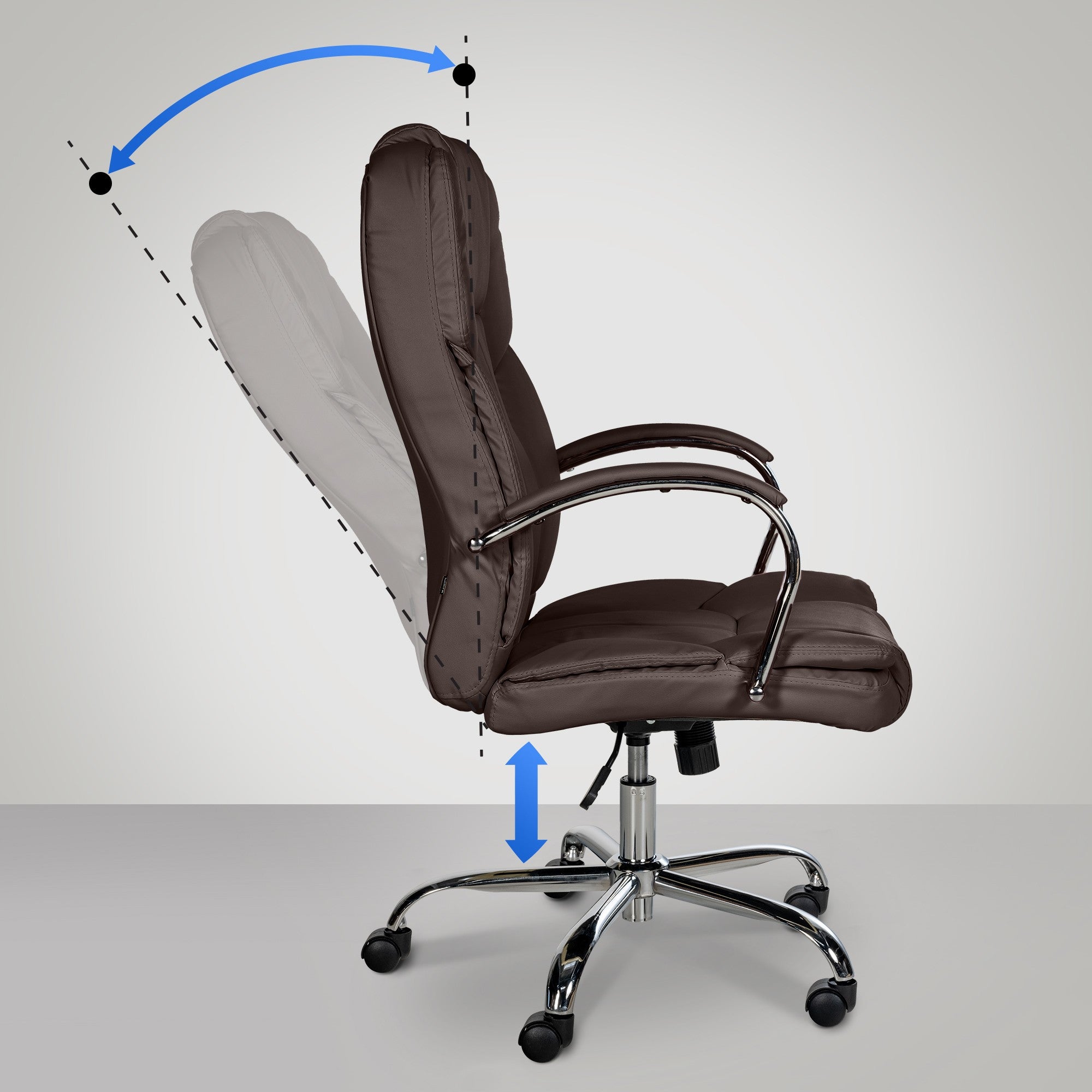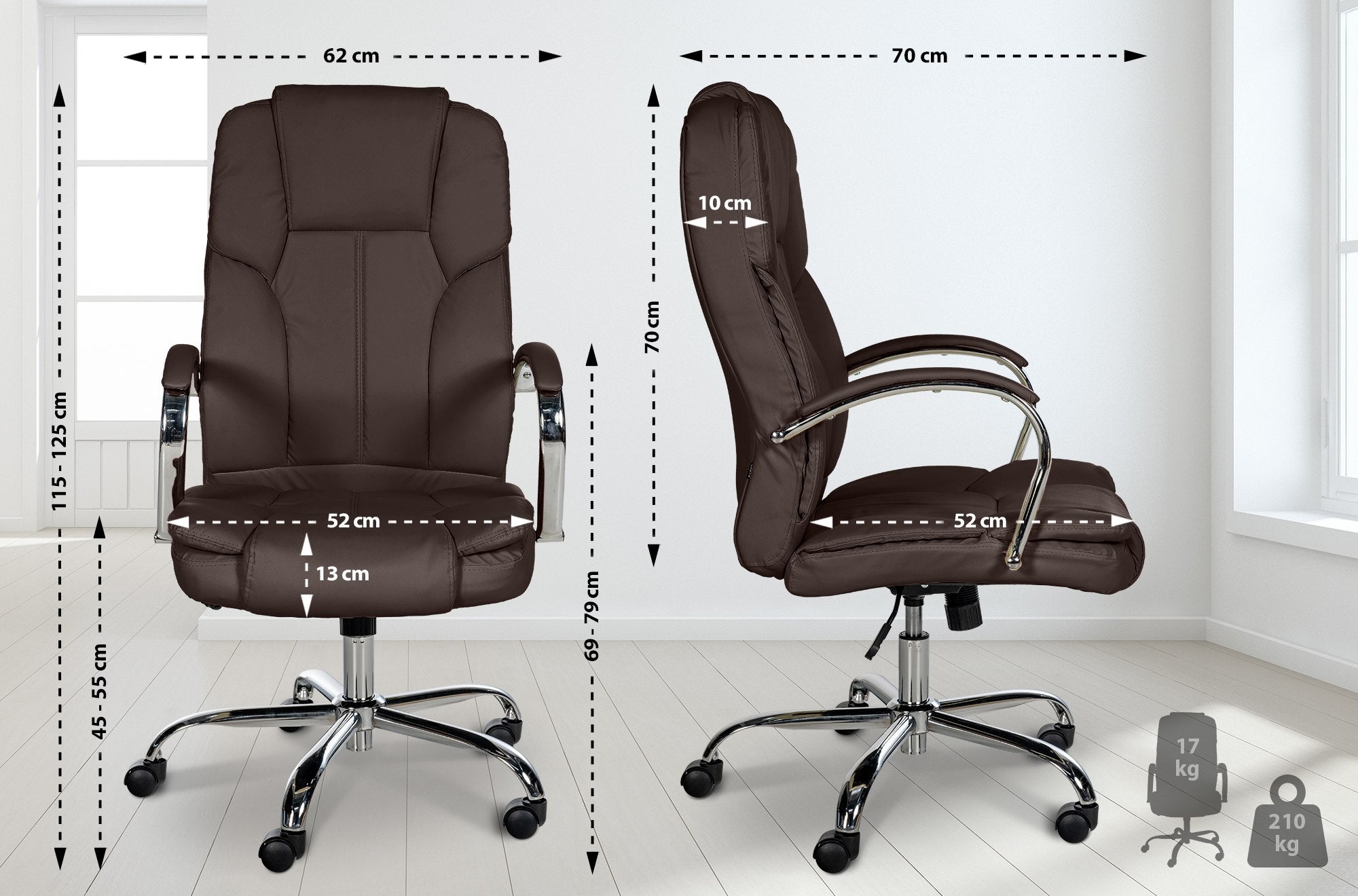 Fauteuil de bureau sur roulettes largeur d'assise XXL en PVC marron et métal chromé 10_0002417