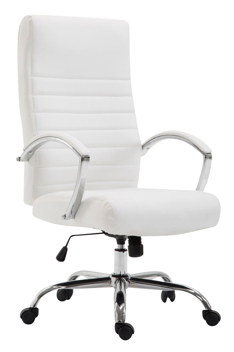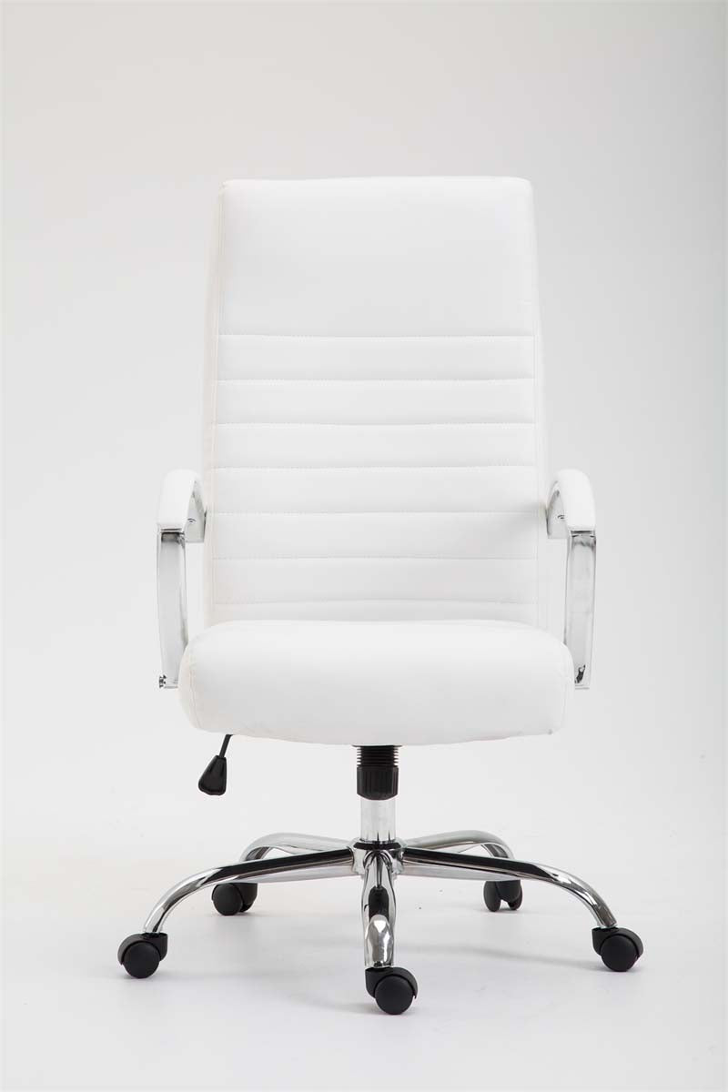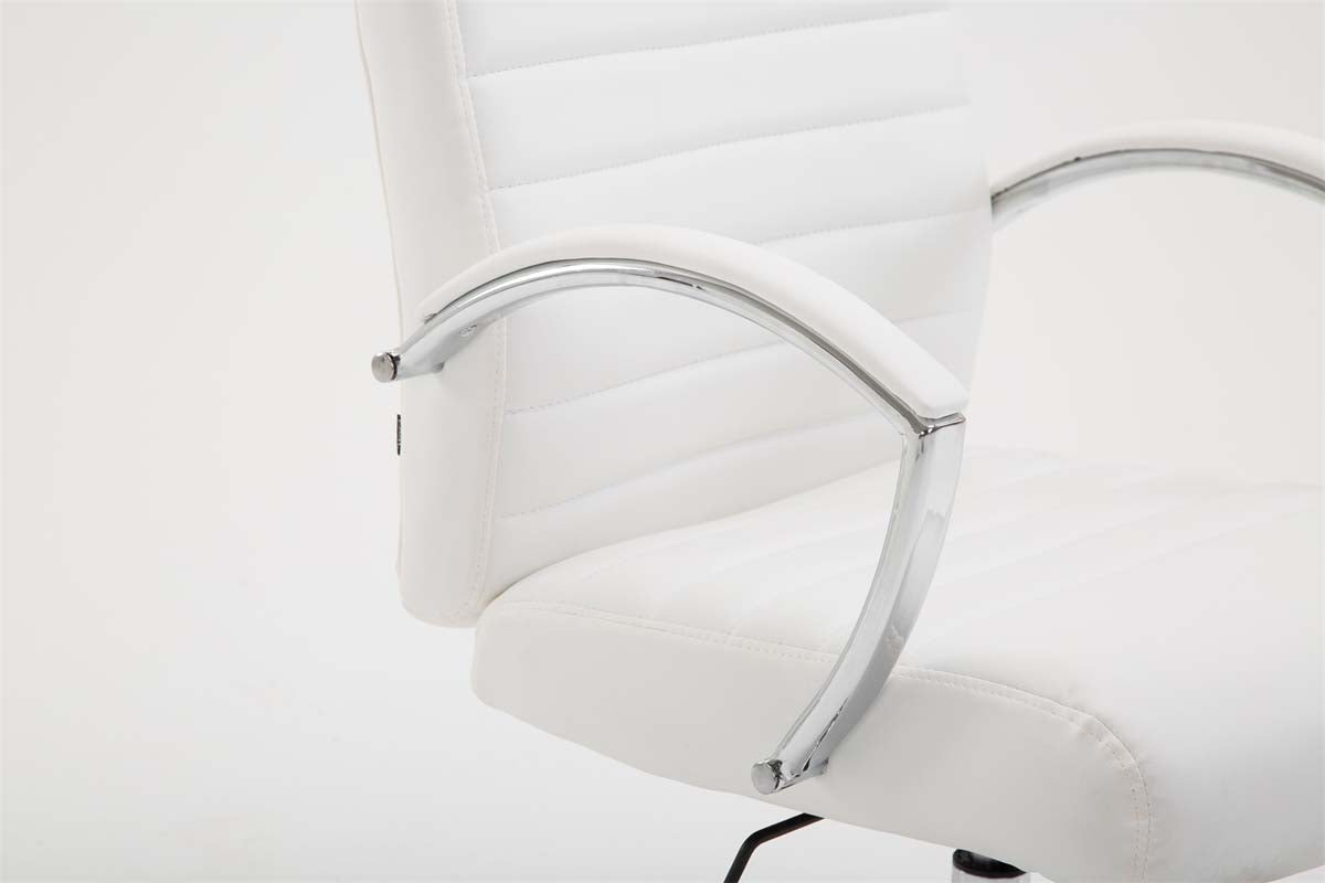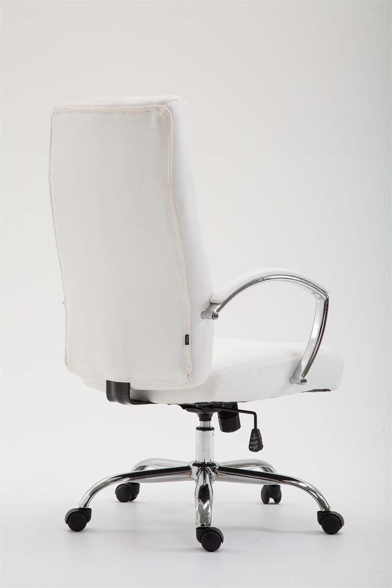 Fauteuil de bureau mécanisme d'inclinaison accoudoirs coutures décoratives en PVC blanc et métal chromé 10_0002704