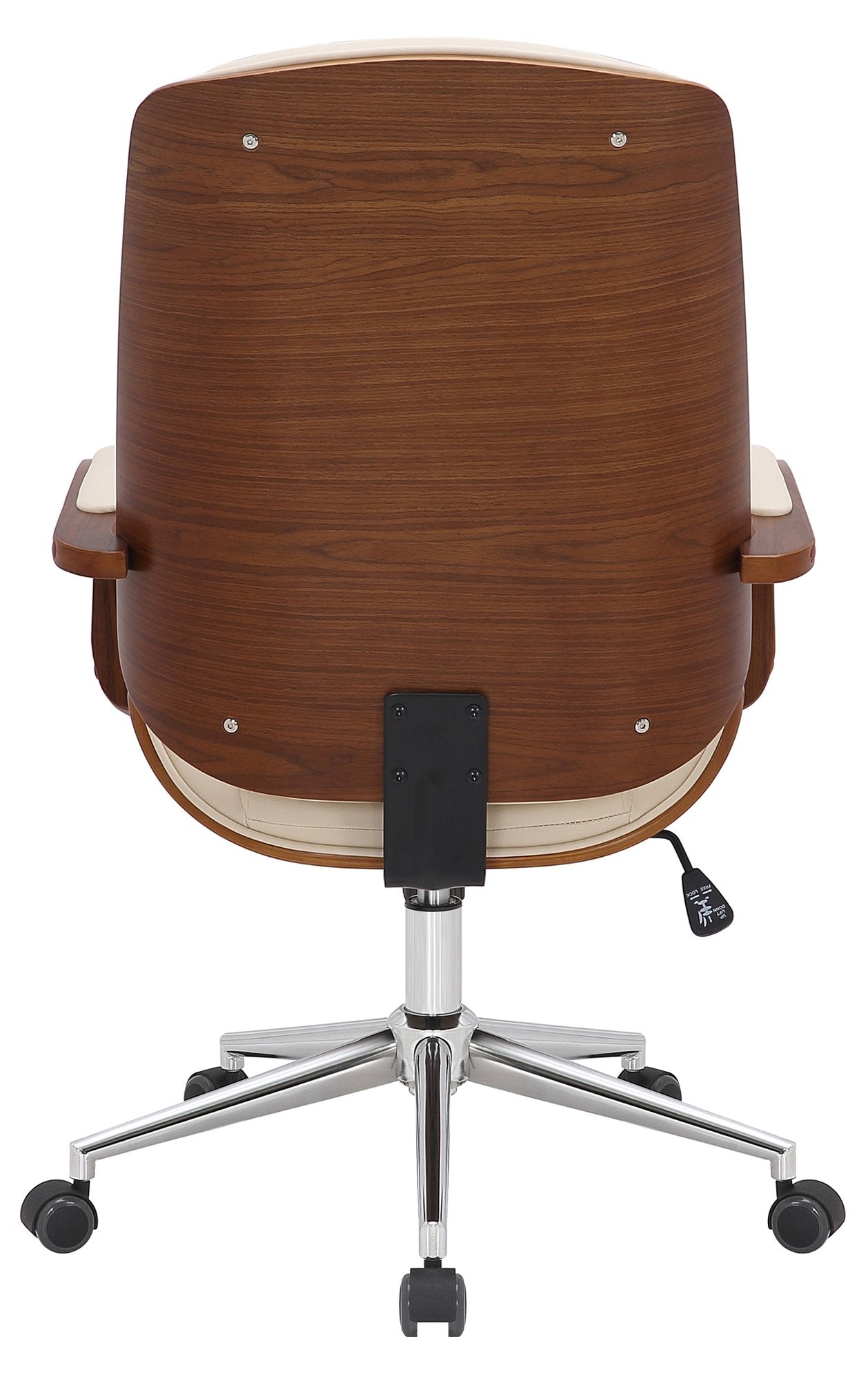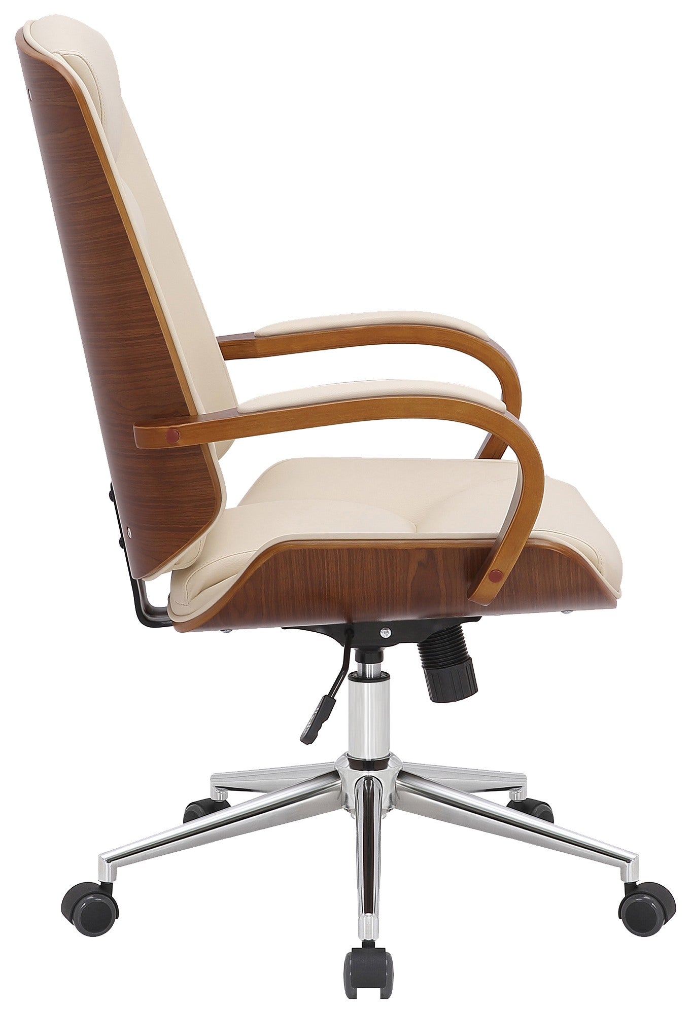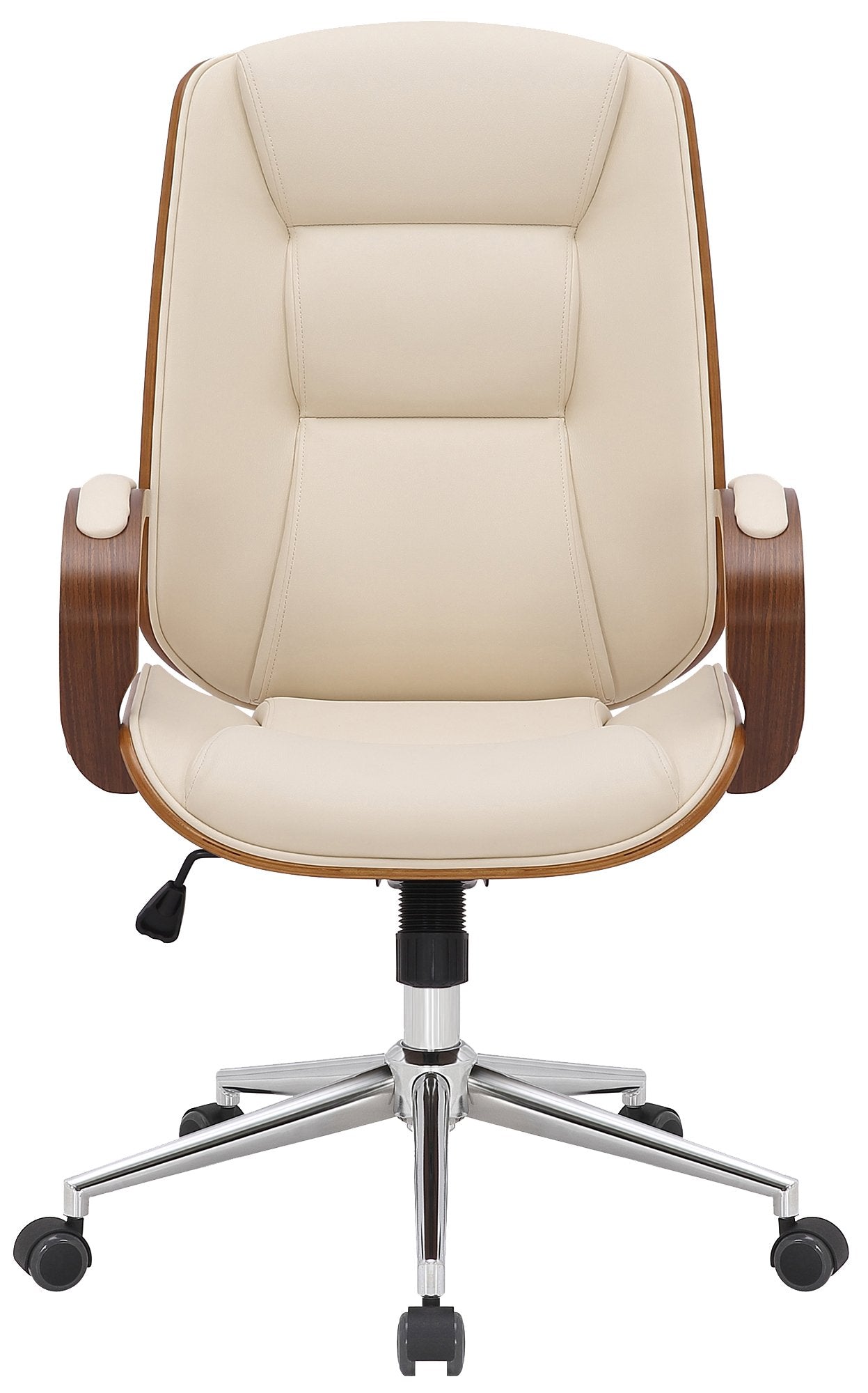 Fauteuil de bureau avec accoudoirs hauteur réglable en similicuir crème structure en bois courbé et métal 10_0007034