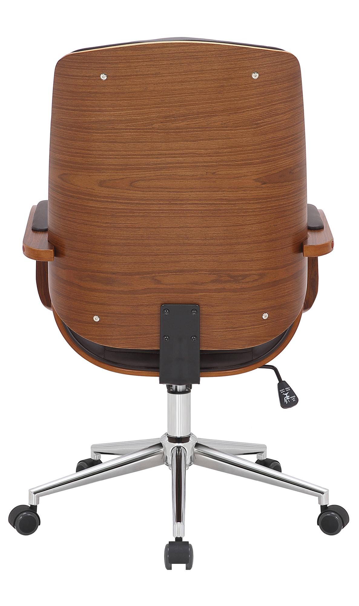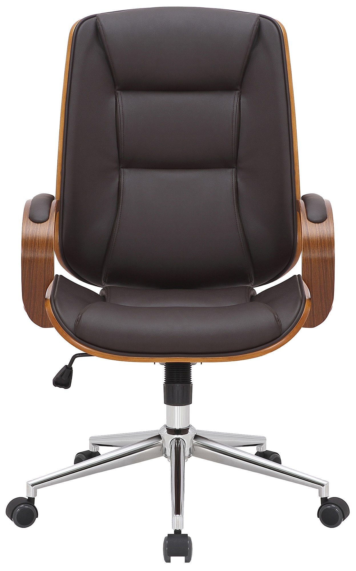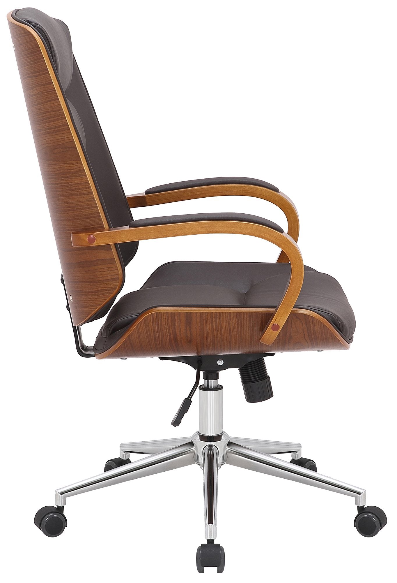 Fauteuil de bureau sur roulettes avec accoudoirs similicuir marron structure en bois courbé et métal 10_0006979