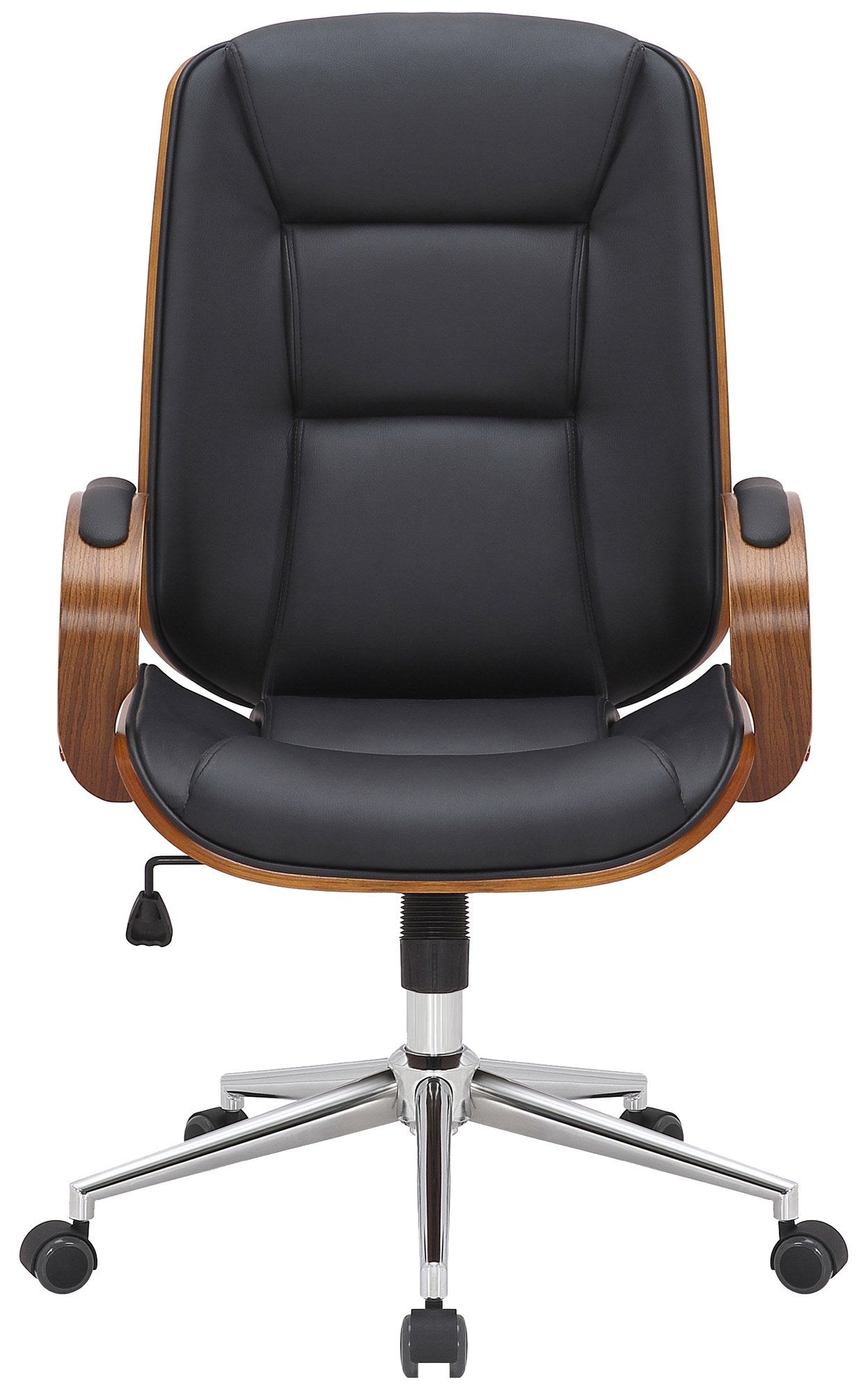 Fauteuil de bureau sur roulettes avec accoudoirs similicuir noir structure en bois courbé et métal 10_0006939