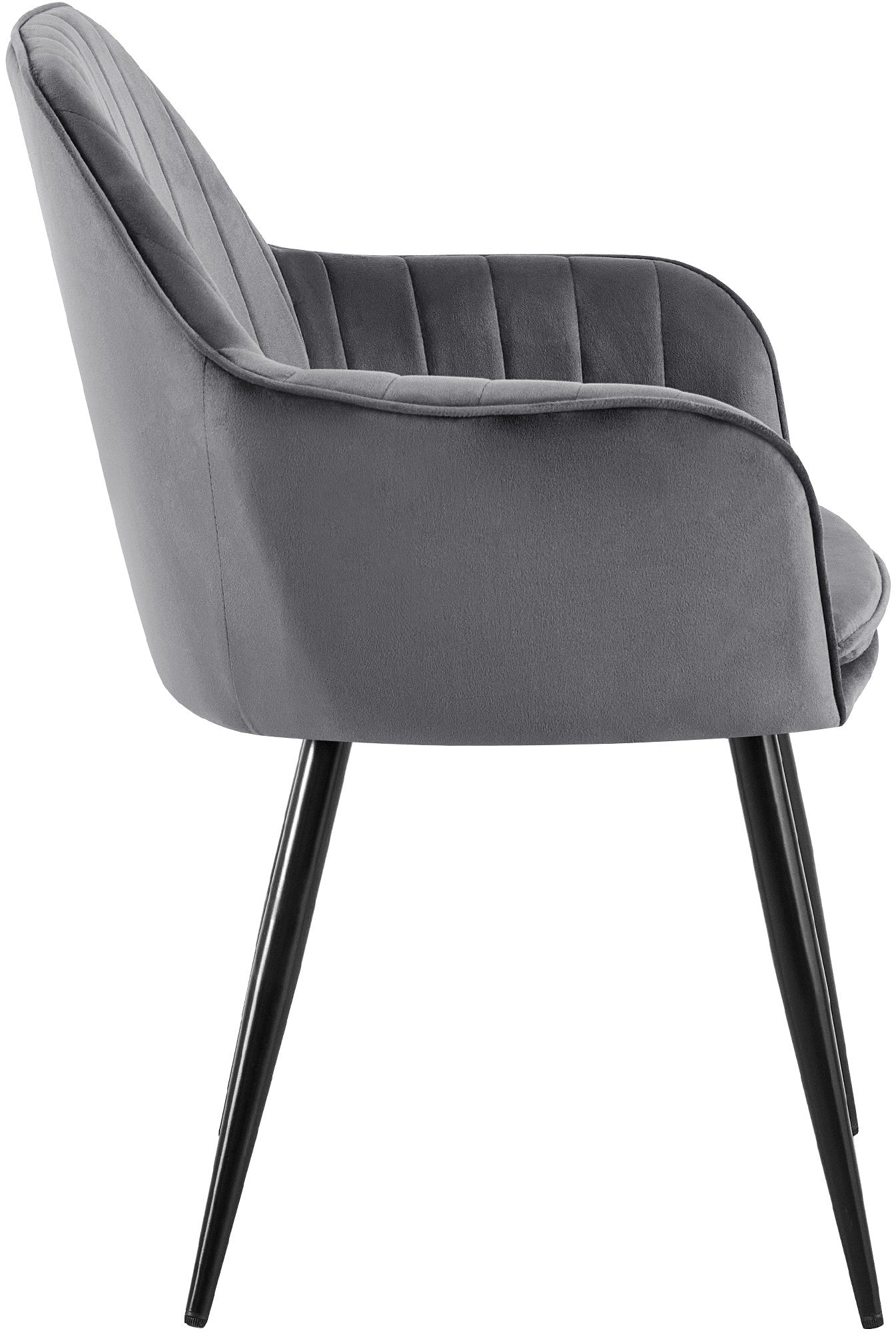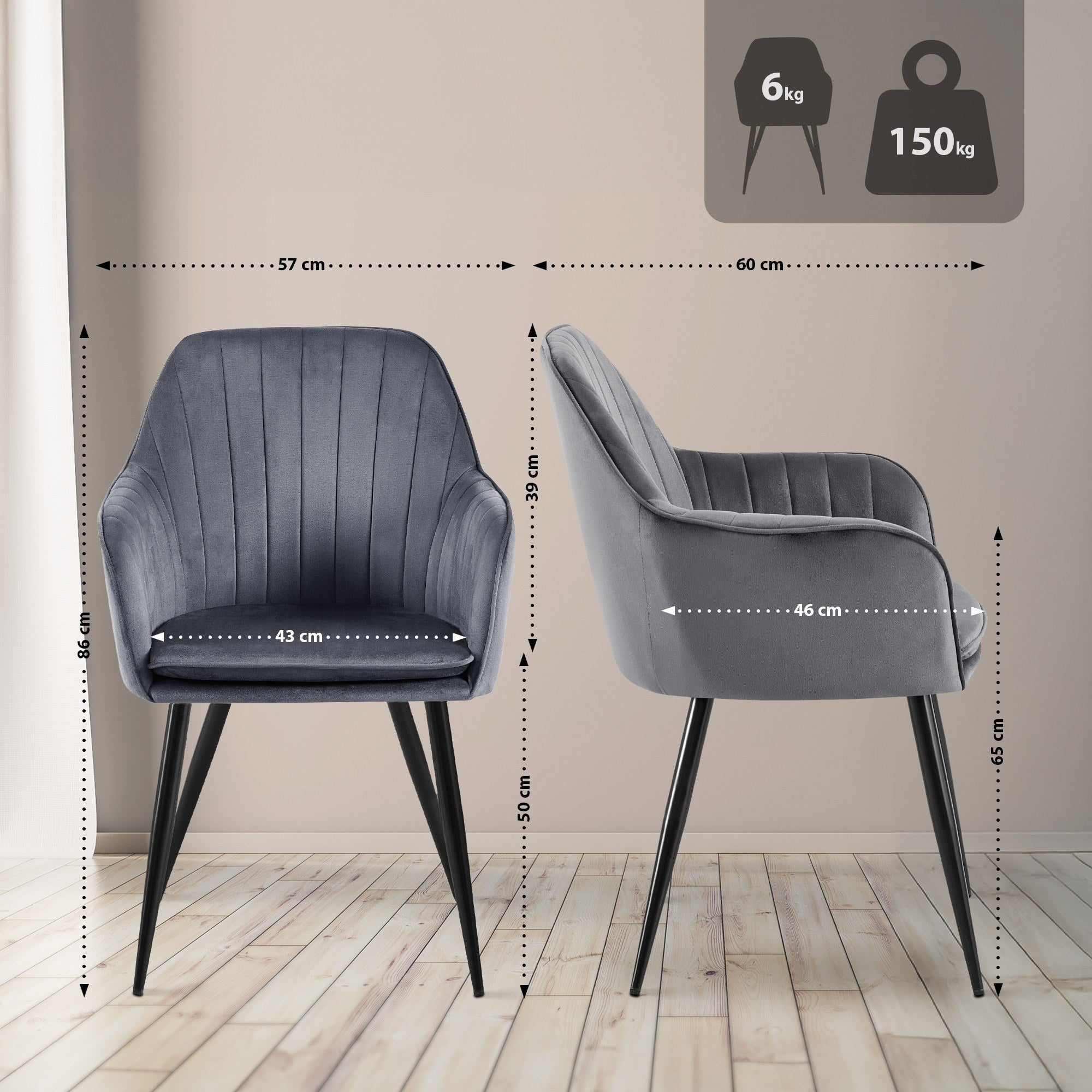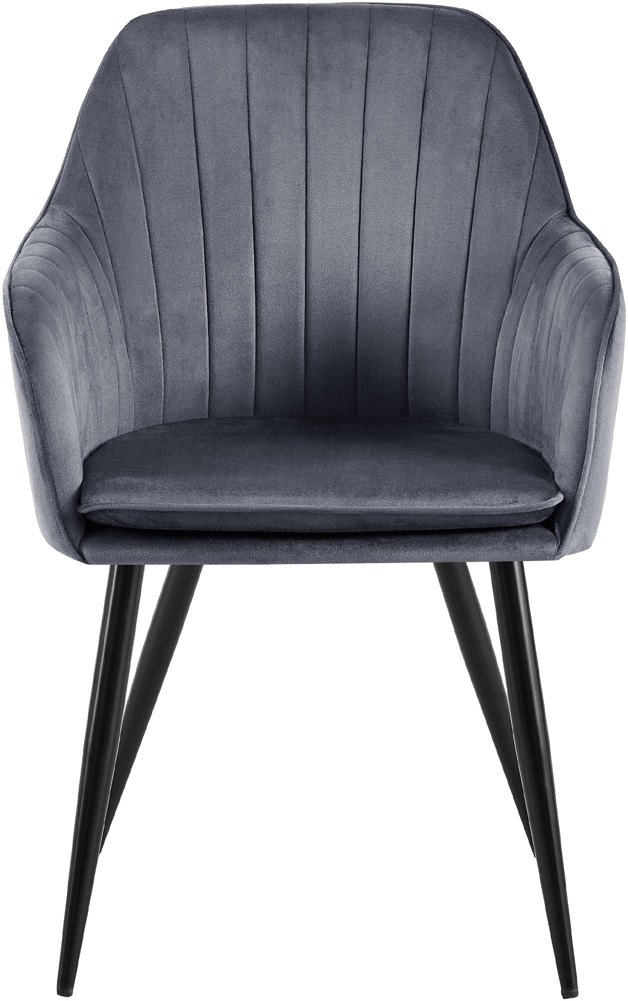 Chaise de salle à manger x1 en velours gris foncé couture verticale structure métallique 10_0007142