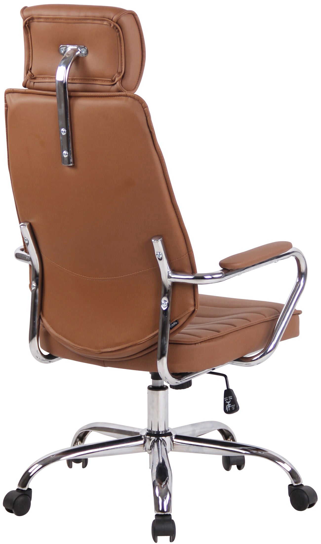 Fauteuil de bureau hauteur réglable pivotant mécanisme de bascule PVC marron clair et métal chromé 10_0002614