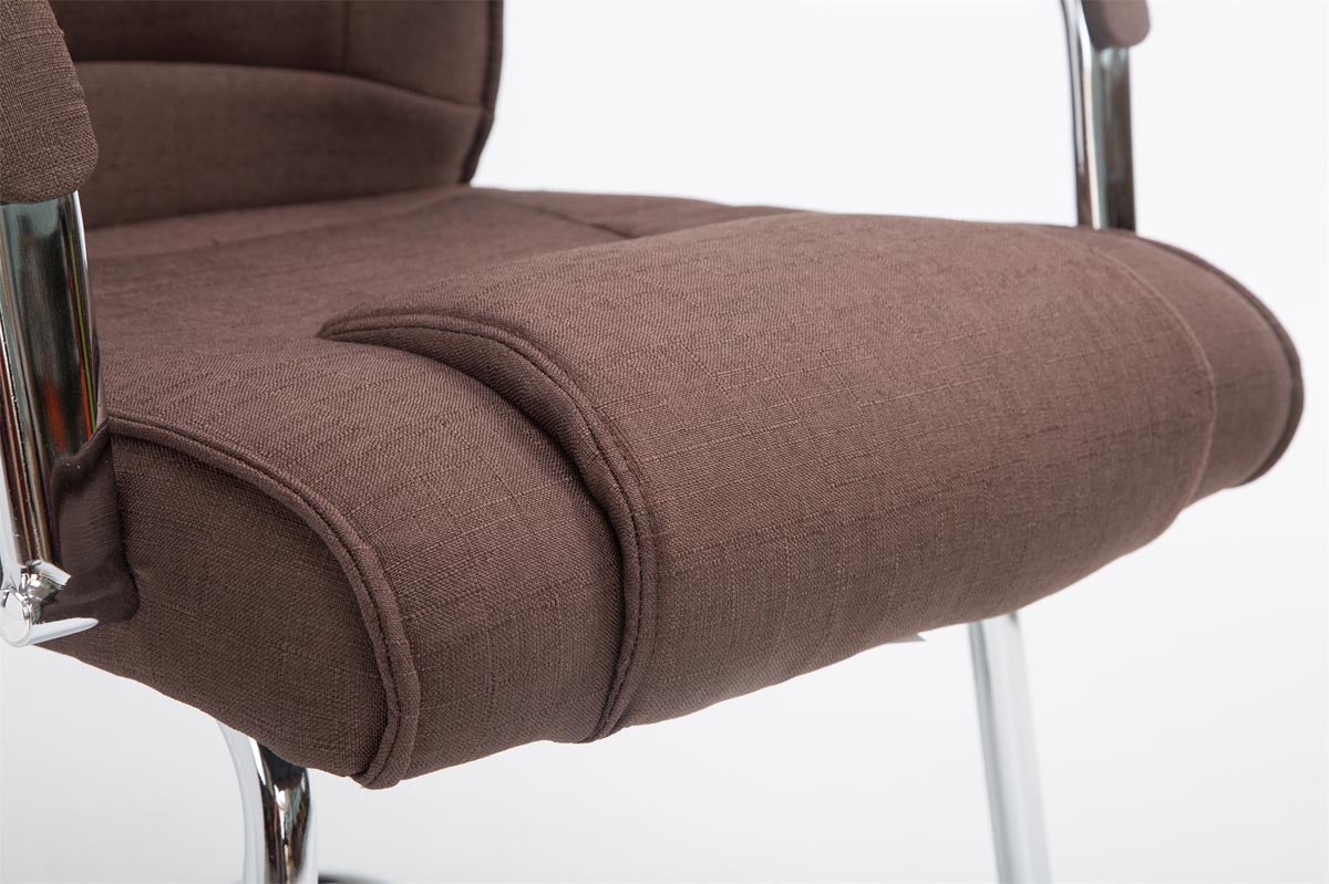 Fauteuil de bureau sans roulettes accoudoirs chaise visiteur charge maximale 180 kg en tissu marron cadre en métal BUR10721